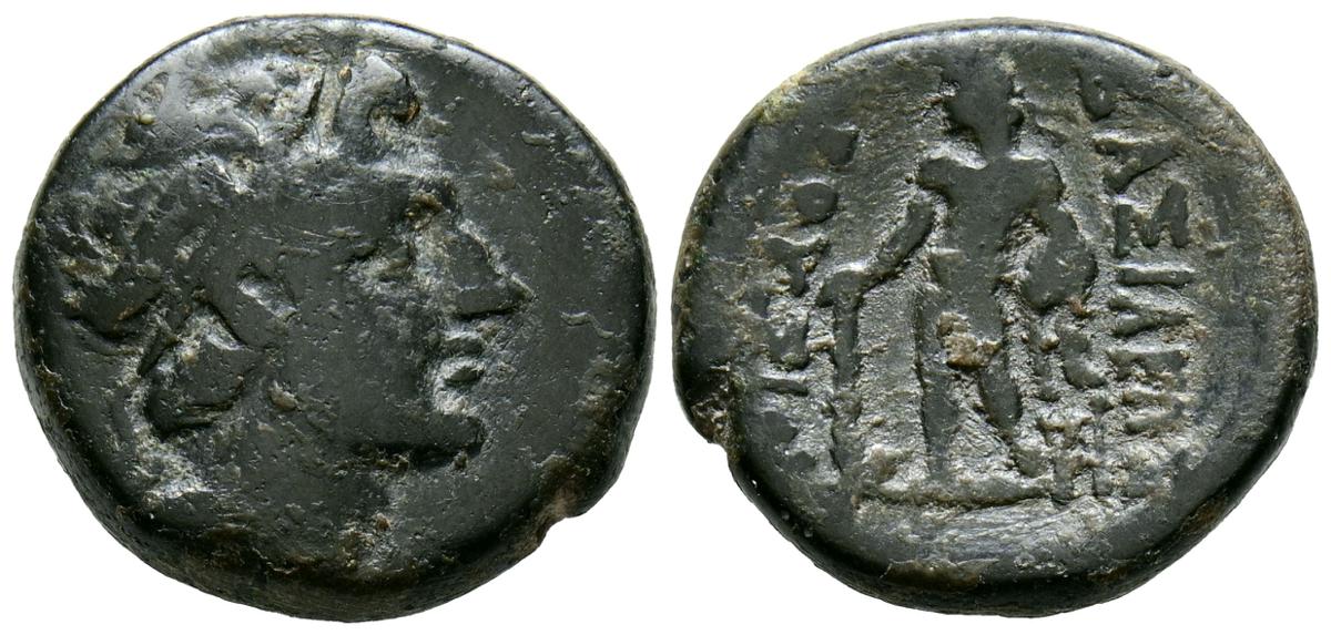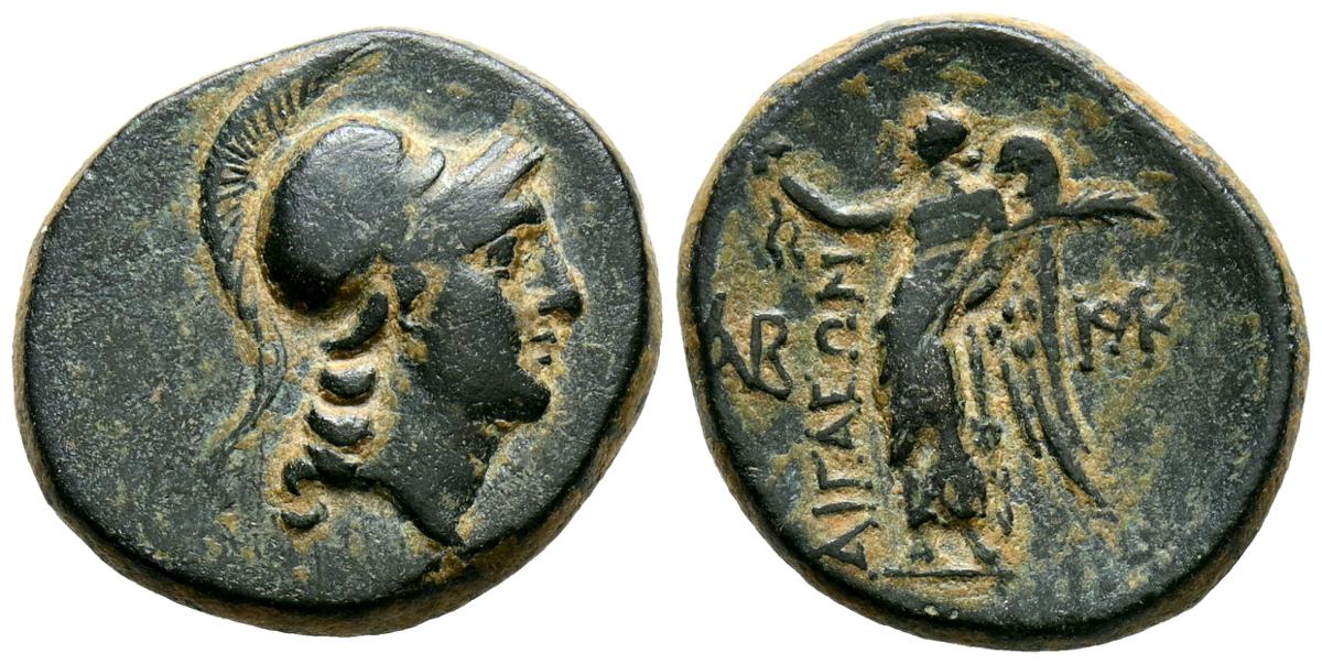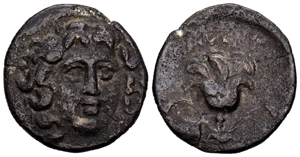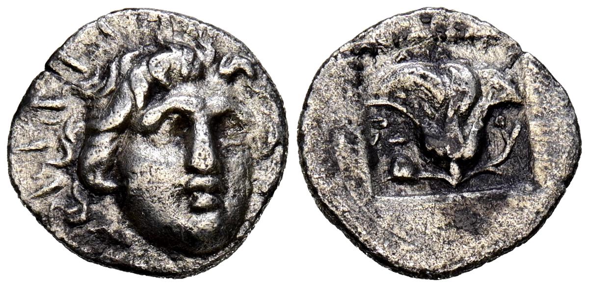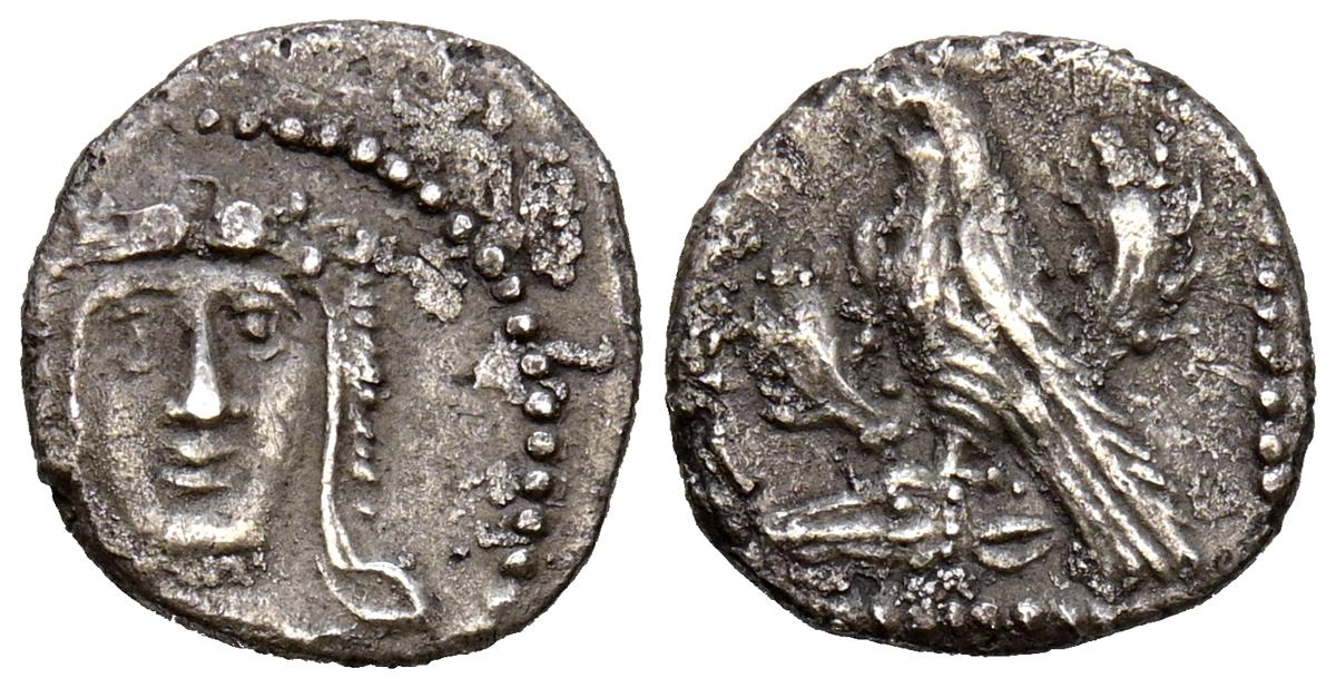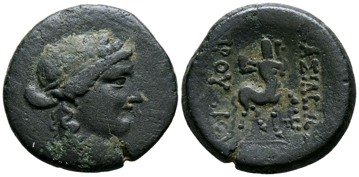 REYES DE CAPADOCIA, Ariobarzanes III Eusebes Philoromaios. Dracma. (Ar. 4,08g/16mm). 52-42 a.C. (HGC 7, 853). Anv: Cabeza laureada a derecha. Rev: Atenas portando Nike con corona de laurel y lanza, detrás escudo, delante estrella y creciente, detrás monograma griego, alrededor leyenda griega: ΒΑΣΙΛΕΩΣ ΑΡΙΟΒΑΡΖΑΝΟΥ ΕΥΣΕΒΟΥΣ ΚΑΙ ΦΙΛΟΡΩΜΑΙΟΥ. MBC-.