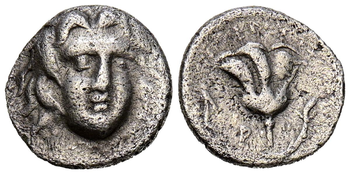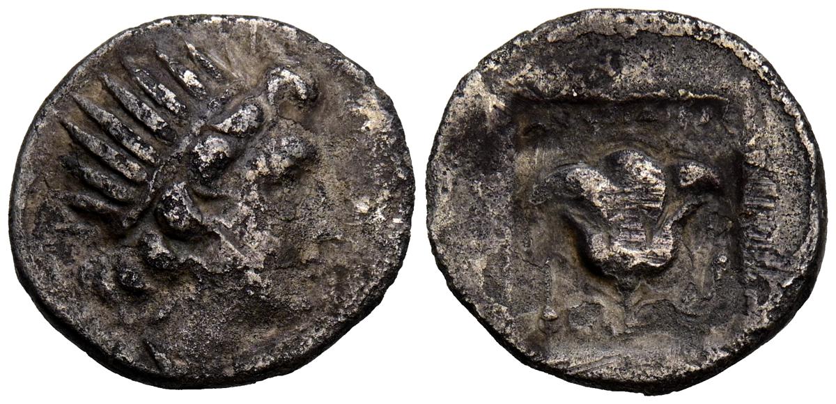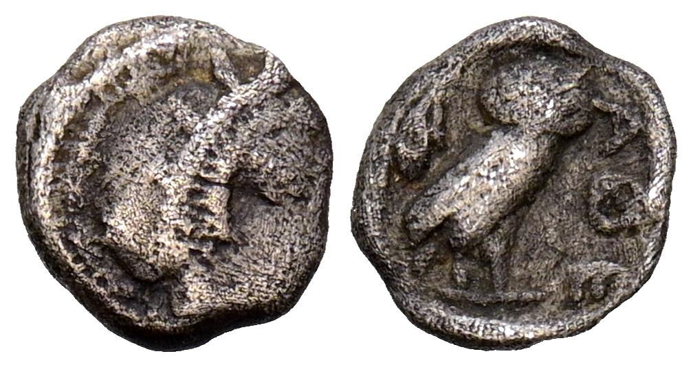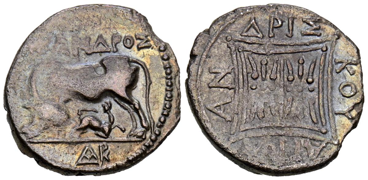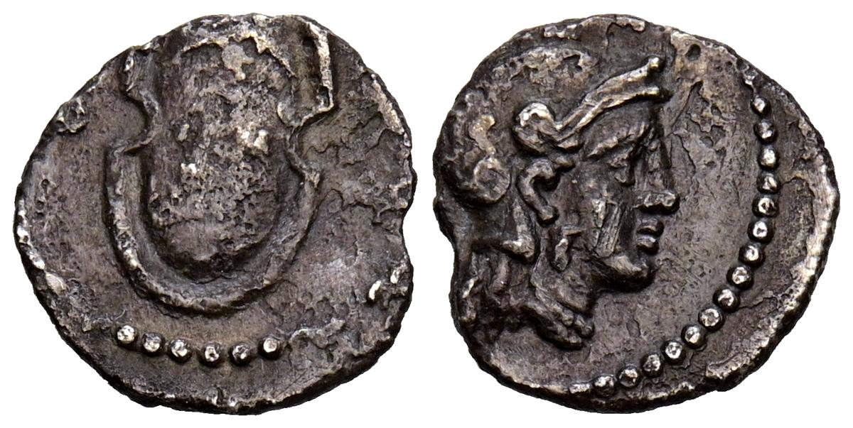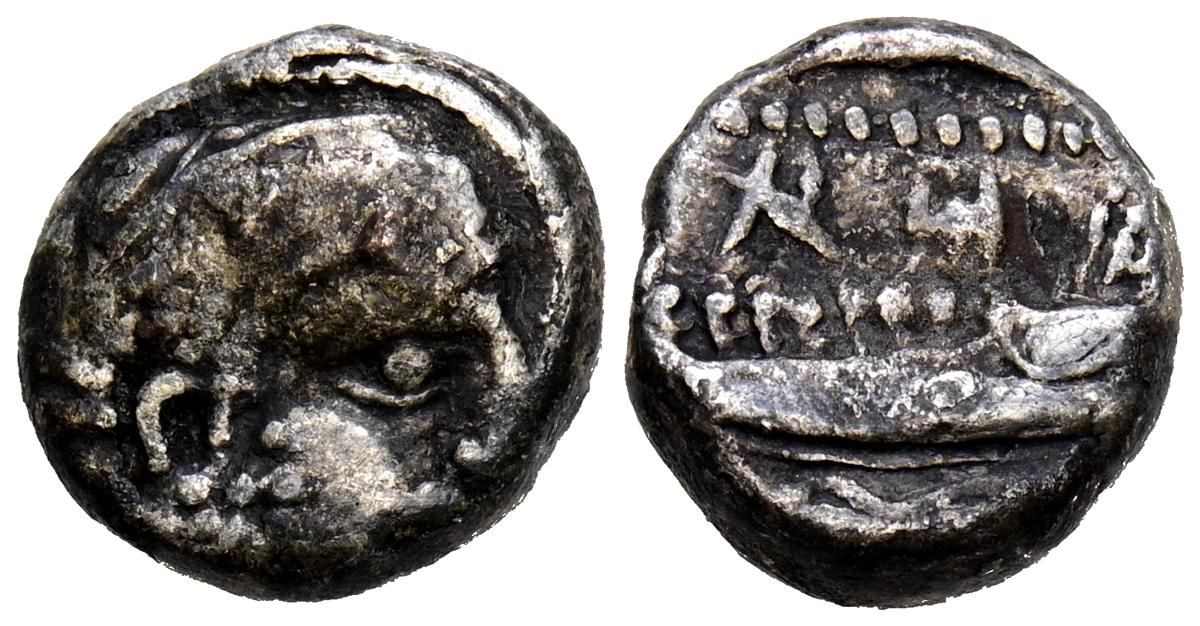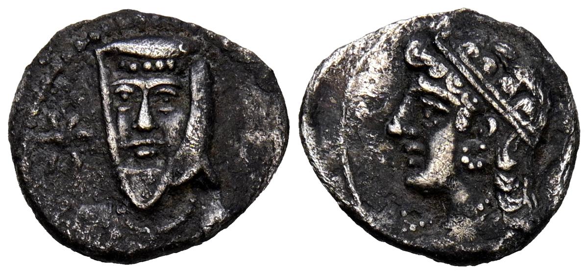REYES DE CAPADOCIA, Ariobarzanes III Eusebes Philoromaios. Dracma. (Ar. 4,08g/16mm). 52-42 a.C. (HGC 7, 853). Anv: Cabeza laureada a derecha. Rev: Atenas portando Nike con corona de laurel y lanza, detrás escudo, delante estrella y creciente, detrás monograma griego, alrededor leyenda griega: ΒΑΣΙΛΕΩΣ ΑΡΙΟΒΑΡΖΑΝΟΥ ΕΥΣΕΒΟΥΣ ΚΑΙ ΦΙΛΟΡΩΜΑΙΟΥ. MBC-.