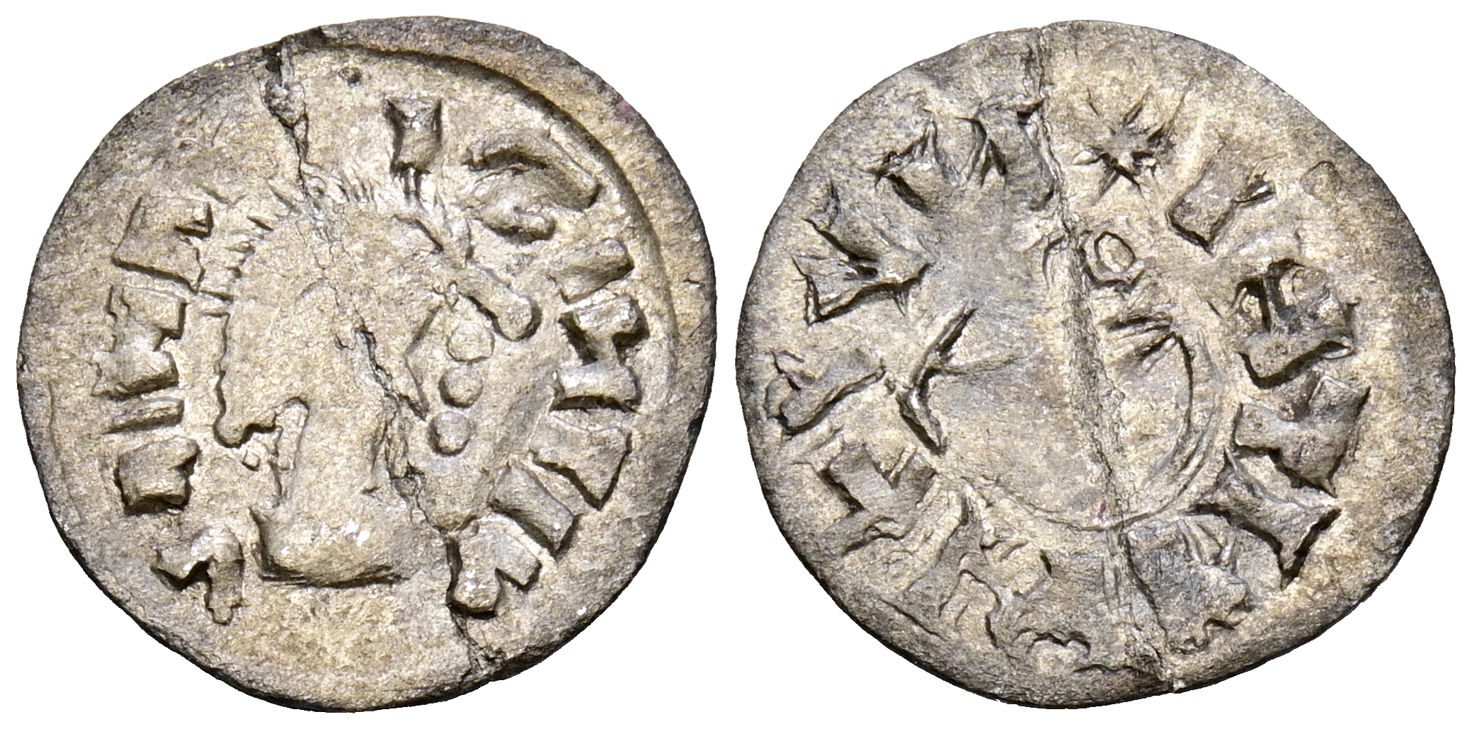 GEPIDOS, Pseudo imperial imitativo a nombre de Anastasio. Silicua. (Ar. 0,41g/15mm). 520-540 d.C. Sirmium. (MIB 46). Anv: Busto a derecha, alrededor leyenda. Rev: Monograma, alrededor leyenda. MBC. Reparada.