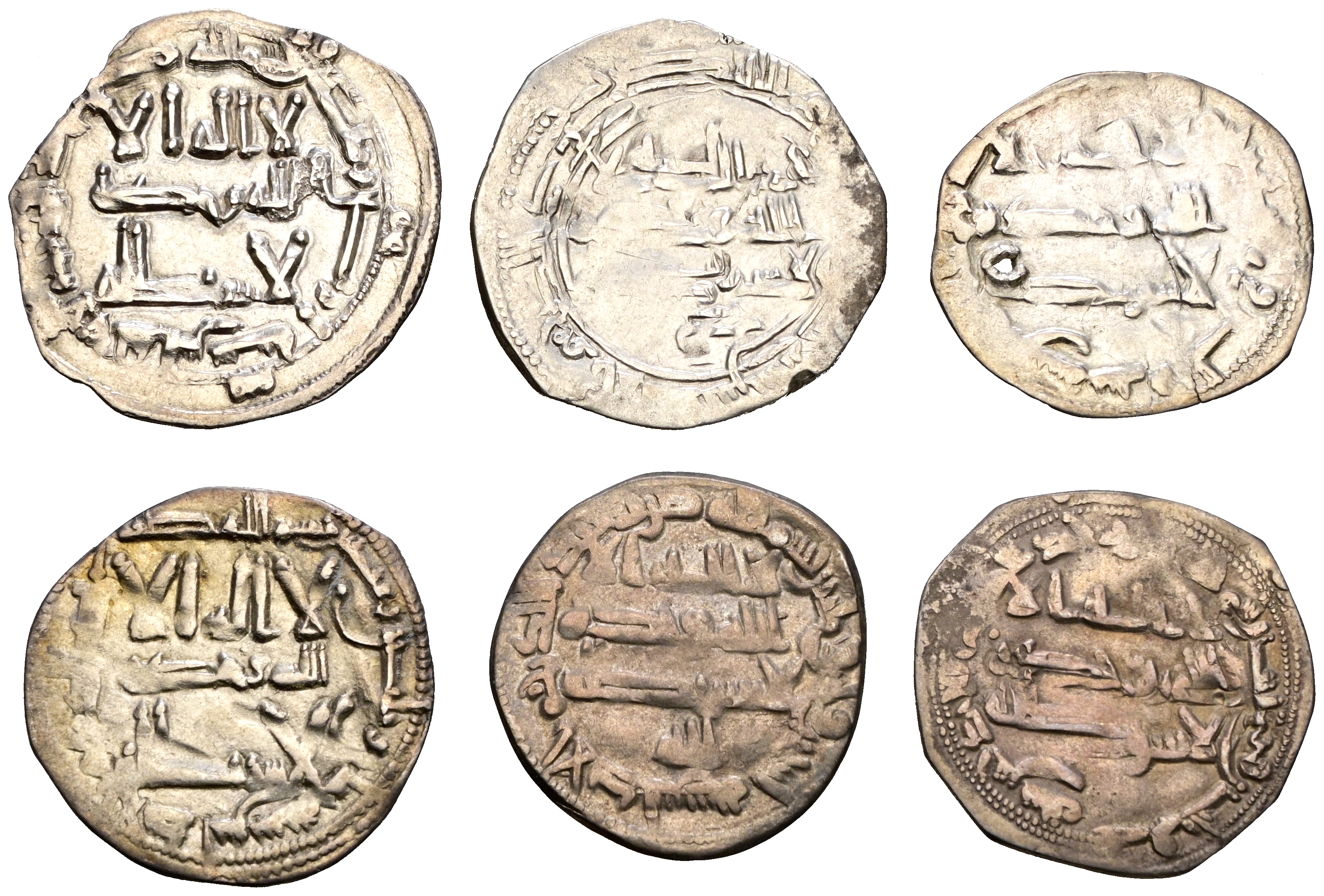 EMIRATO INDEPENDIENTE DE CÓRDOBA. Interesante conjunto formado por 6 dirham acuñados durantes los reinados de Al-Hakam I, Abd al-Rahman II y Muhammad I. Diferentes fechas, medidas y estados de conservación. A EXAMINAR.