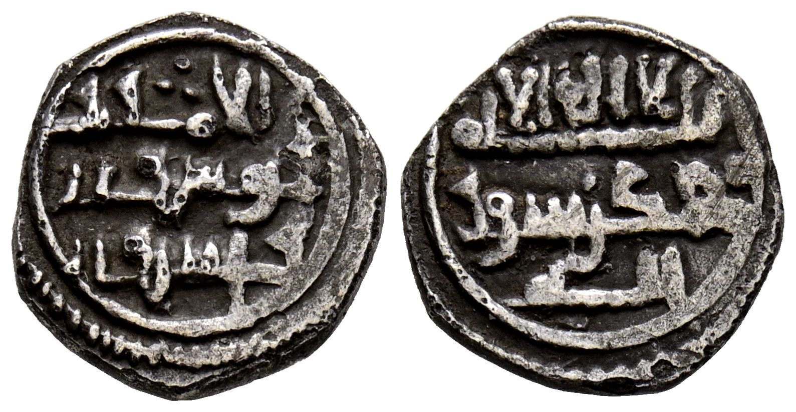 ALMORÁVIDES, Yusuf ben Tashfin (480-500 H.) Quirate. (Ar. 0,92g/11mm). S/D. (Vives 1535 var; Benito Ba12). Anv: 'Shahadah' en cuatro líneas. Rev: Presenta a Yusuf sin mención a heredero (480-497H). MBC.