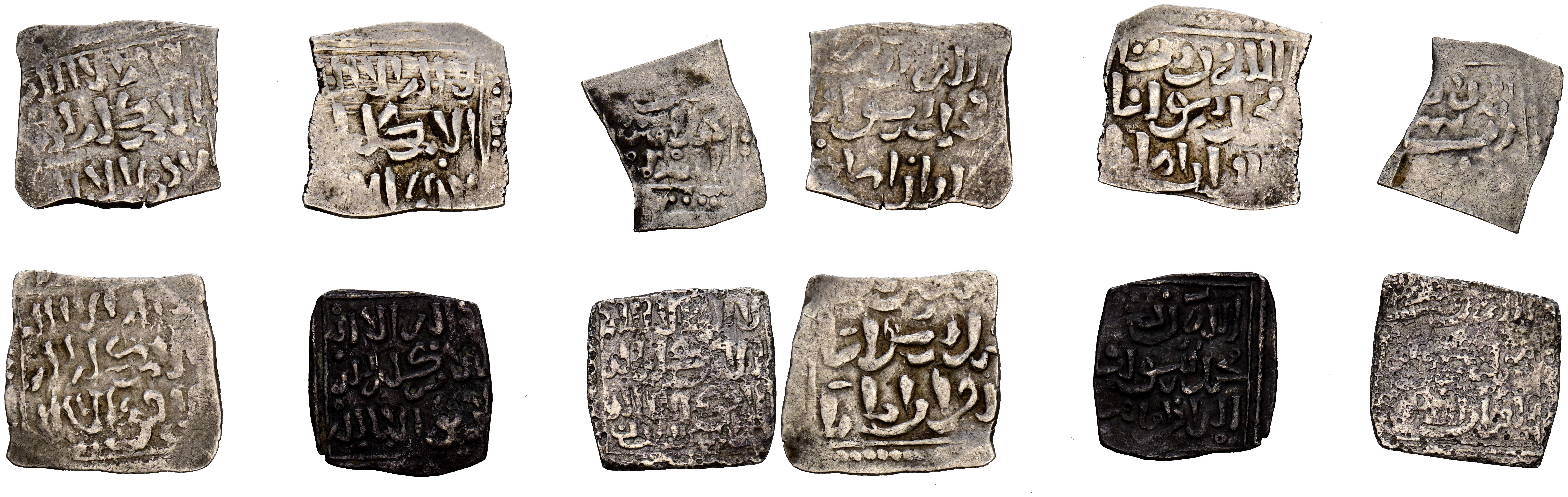Intereante conjunto formado por 6 dirham anti-almohades, alguno con ceca. Diferentes variantes, medidas y estados de concervación. A EXAMINAR