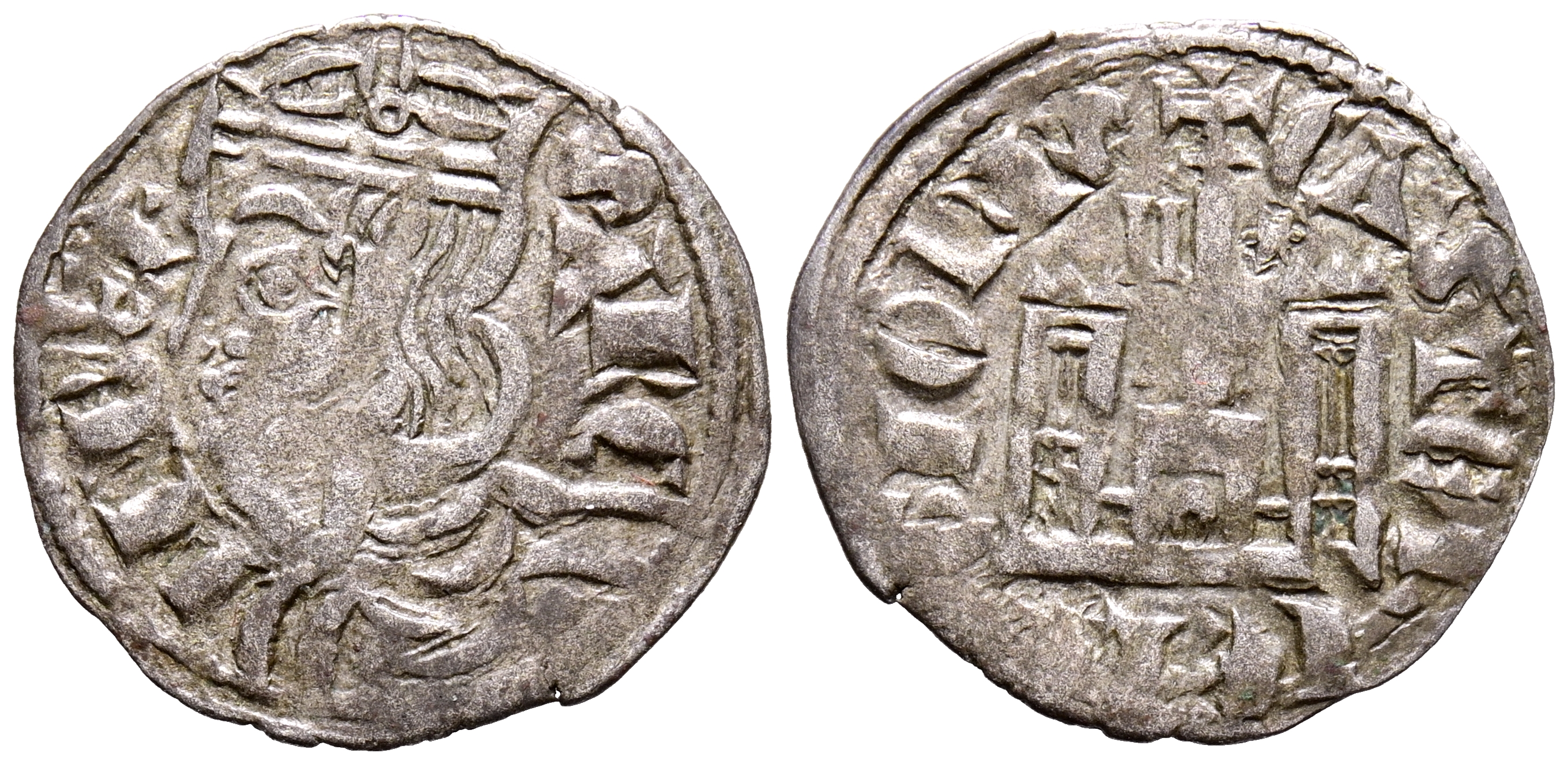 SANCHO IV (1284-1295). Cornado. (Ve. 0,78g/19mm). Murcia. (Imperatrix S4:3.26; FAB-300). Anv: Busto coronado a izquierda, alrededor leyenda: SANCII REX. Rev: Castillo con cruz sobre vástago central entre M y estrella, alrededor leyenda: CASTELLE E LEGIONIS. MBC+.