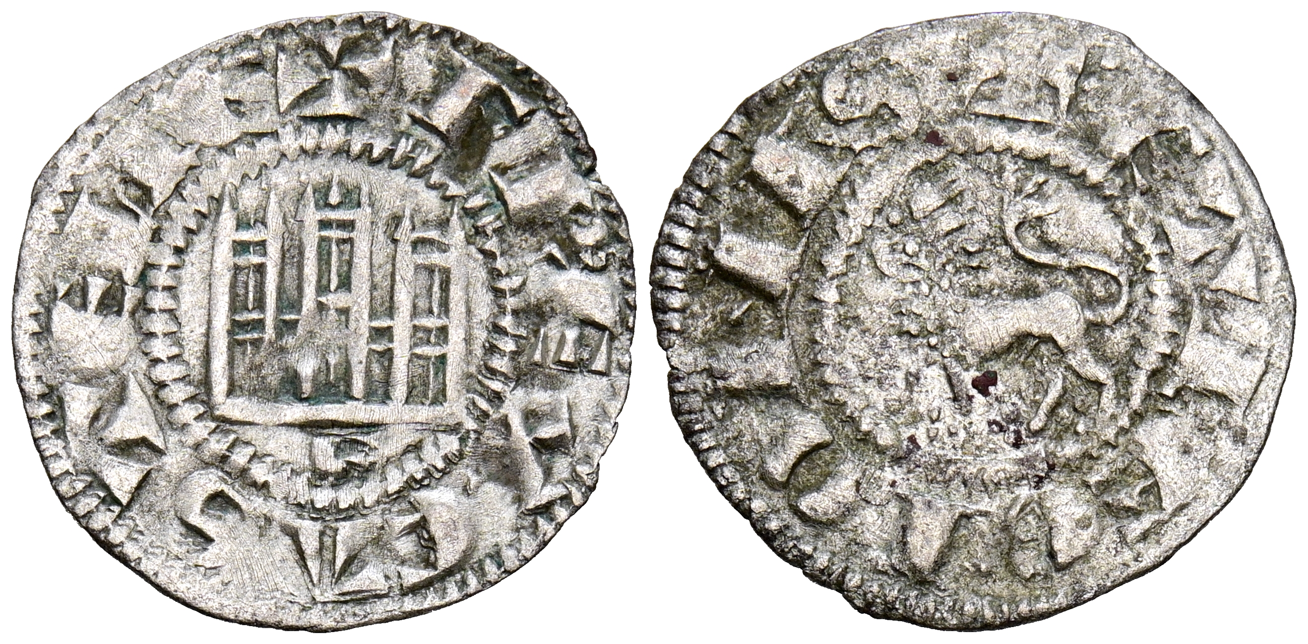 FERNANDO IV (1295-1312). Dinero. (Ve. 0,76g/18mm). Córdoba. (Imperatrix F4:2.17; FAB-320 como Pepión). Anv: Castillo dentro de gráfila, debajo C, alrededor leyenda: F REX CASTELLE. Rev: León pasando a izquierda dentro de gráfila, alrededor leyenda: ET LEGIONIS. MBC+.