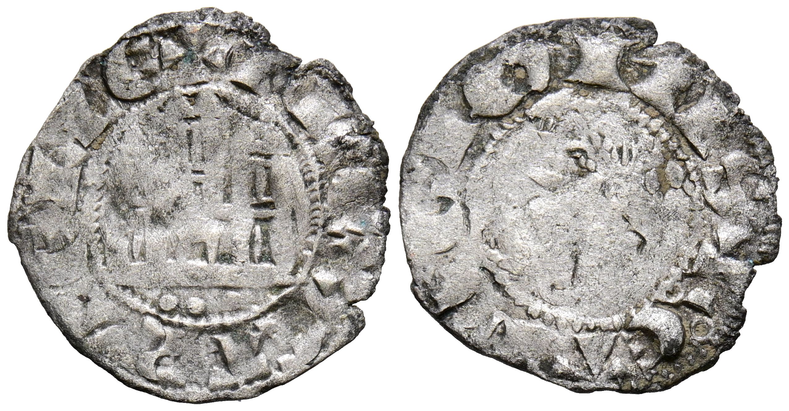 FERNANDO IV (1295-1312). Dinero. (Ve. 0,79g/18mm). Indeterminada, marca de ceca tres puntos. (Imperatrix F4:2.43; FAB-328 como pepión). Anv: Castillo, debajo tres puntos, todo dentro de gráfila circular, alrededor leyenda: F REX CASTELLE. Rev: León a izquierda dentro de gráfila circular: ET LEGIONIS. MBC.