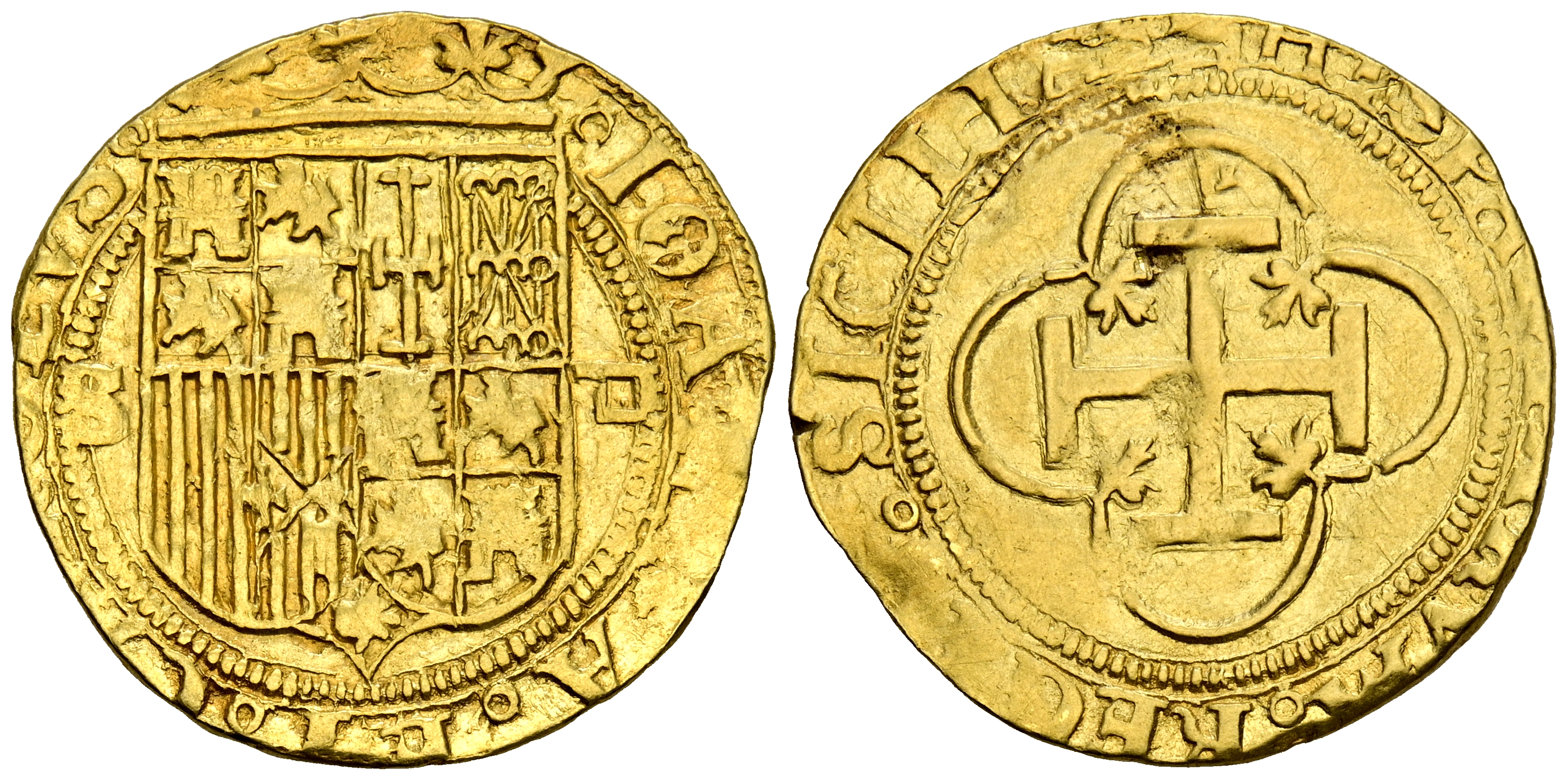JUANA Y CARLOS (1504-1555). 1 Escudo. (Au. 3,33g/22mm). S/D (antes de 1550). Sevilla D. (Cal-2019-198). MBC. Escasa.