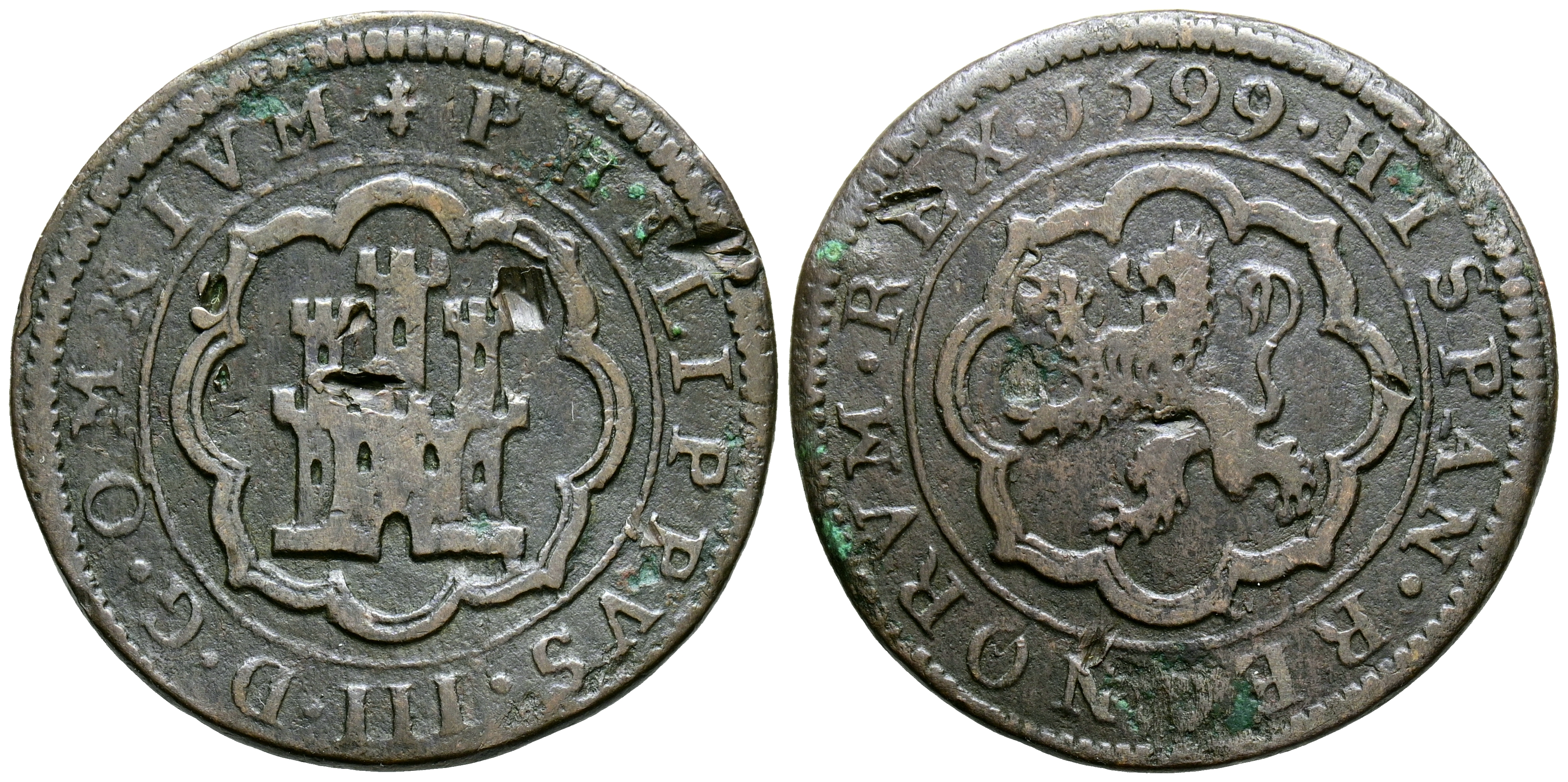 FELIPE III (1598-1621). 4 Maravedís. (Ve. 5,56g/27mm). 1599. Segovia C. (Cal-2019-250). MBC-.