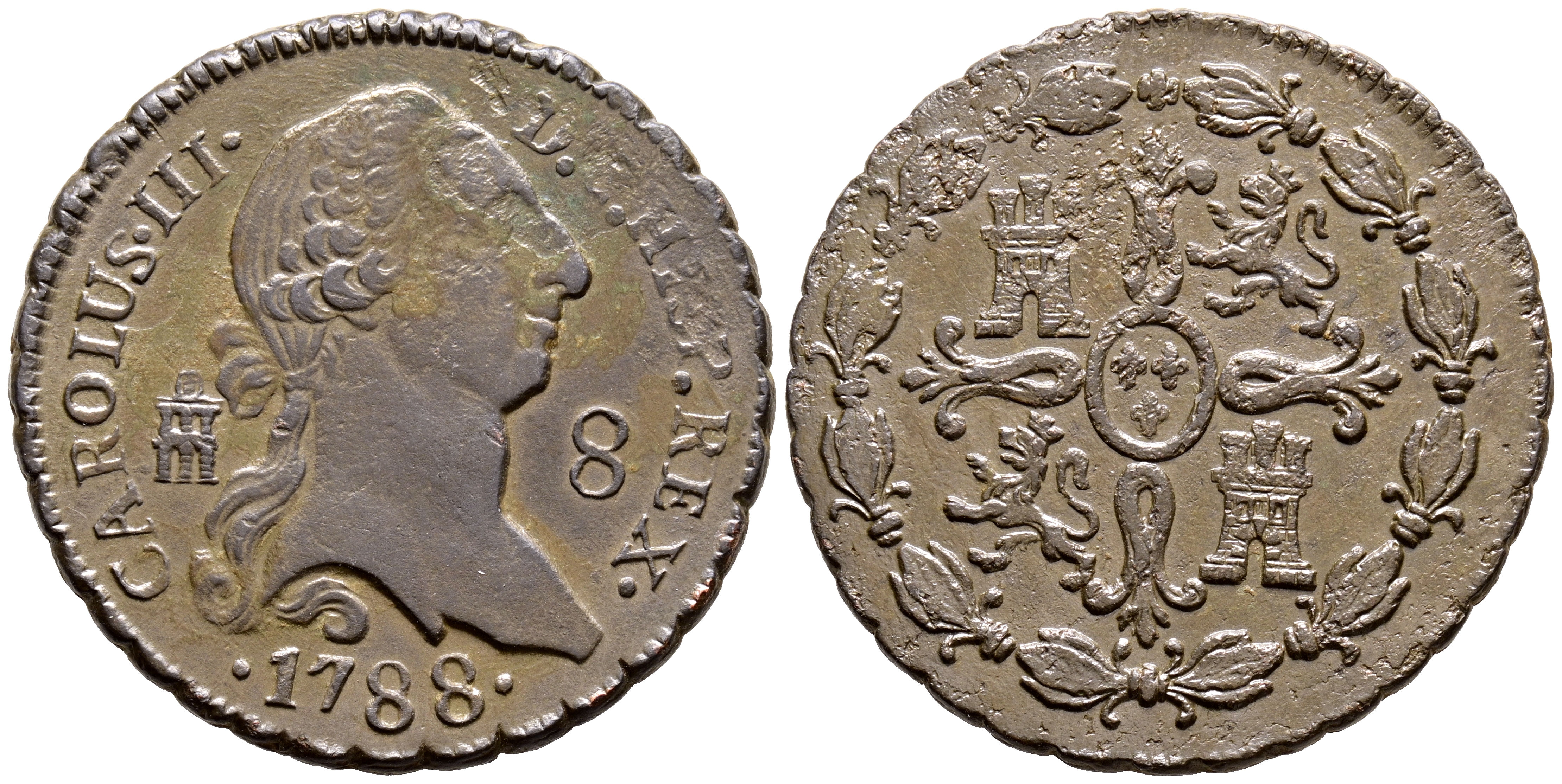 CARLOS III (1759-1788). 8 Maravedís. (Ae. 11,05g/30mm). 1788. Segovia. (Cal-2019-81). MBC.