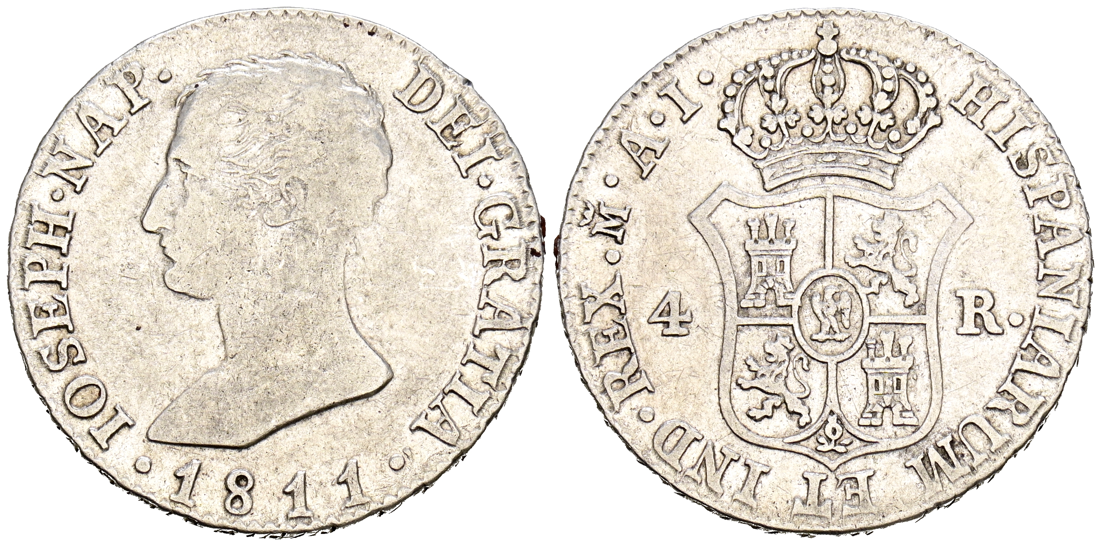 JOSÉ NAPOLEÓN (1808-1813). 4 Reales. (Ar. 5,94g/26mm). 1811. Madrid AI. (Cal-2019-15). MBC+. Ligeros restos de brillo original.