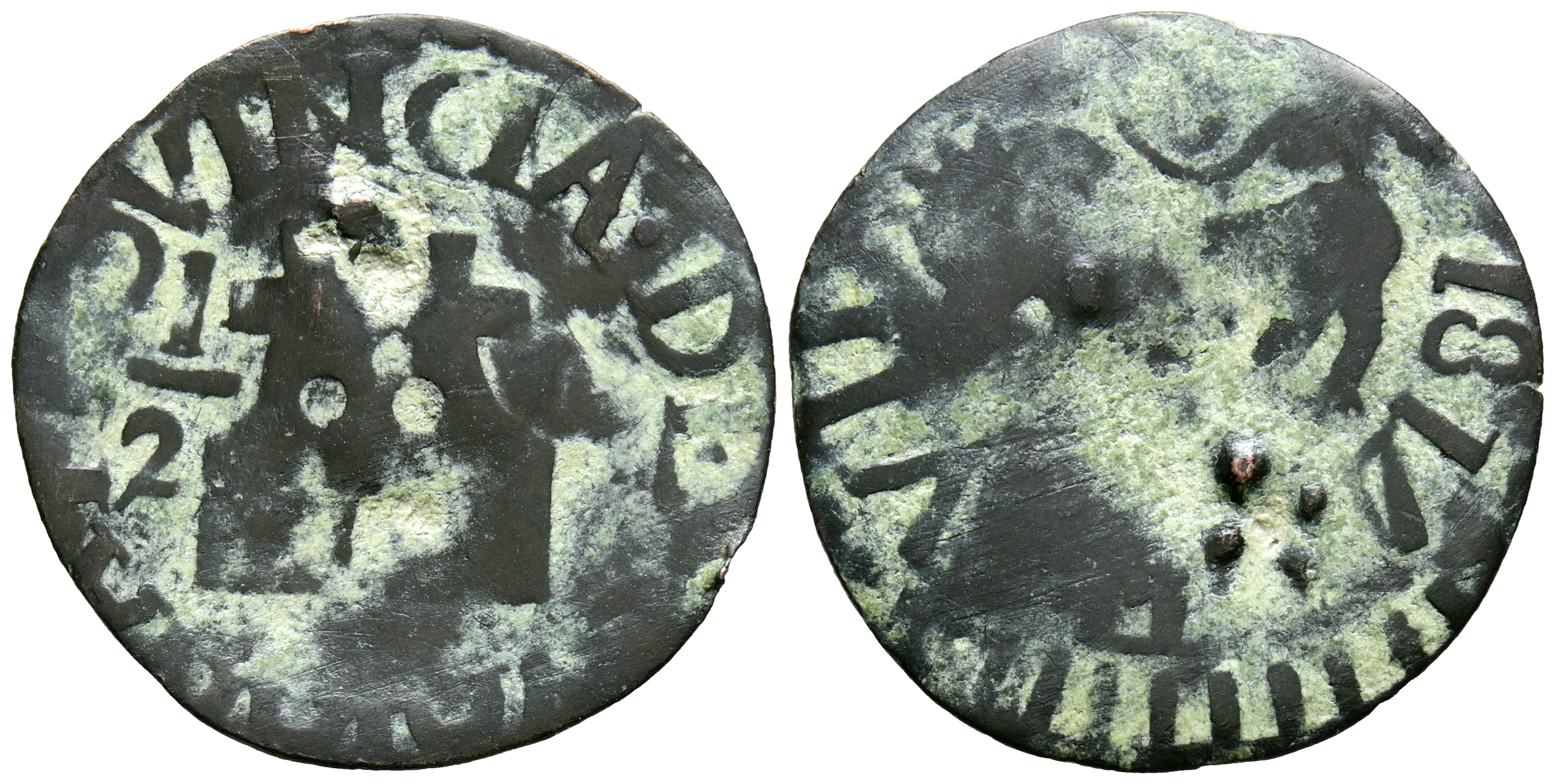 FERNANDO VII (1808-1833). 1/2 Real. (Ae. 1,89g/22mm). 1814. Guayana. (Cal-2019-344). BC. Excesos de metal.