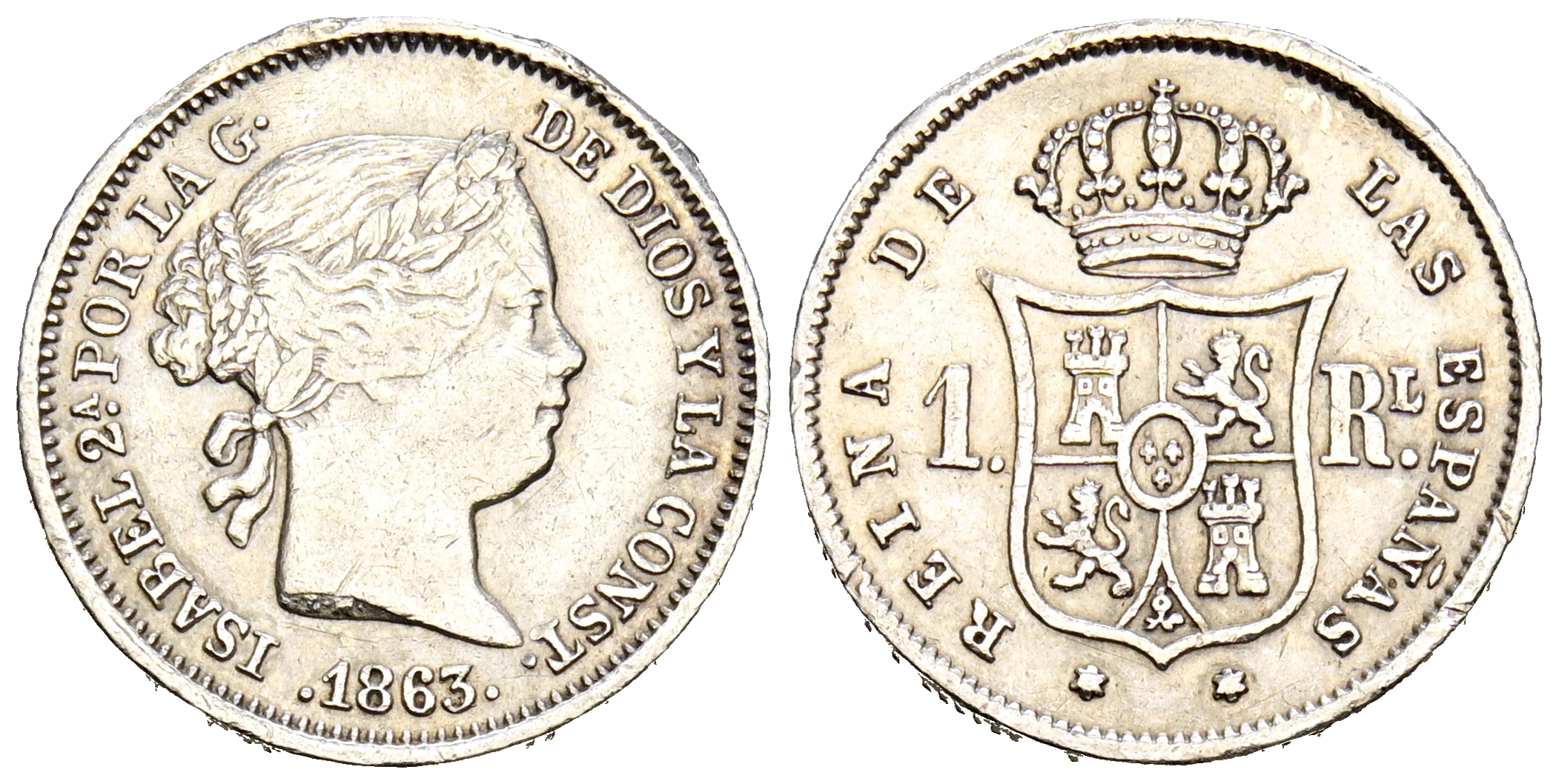ISABEL II (1833-1868). 1 Real. (Ar. 1,30g/15mm). 1863. Madrid. (Cal-2019-312). MBC.