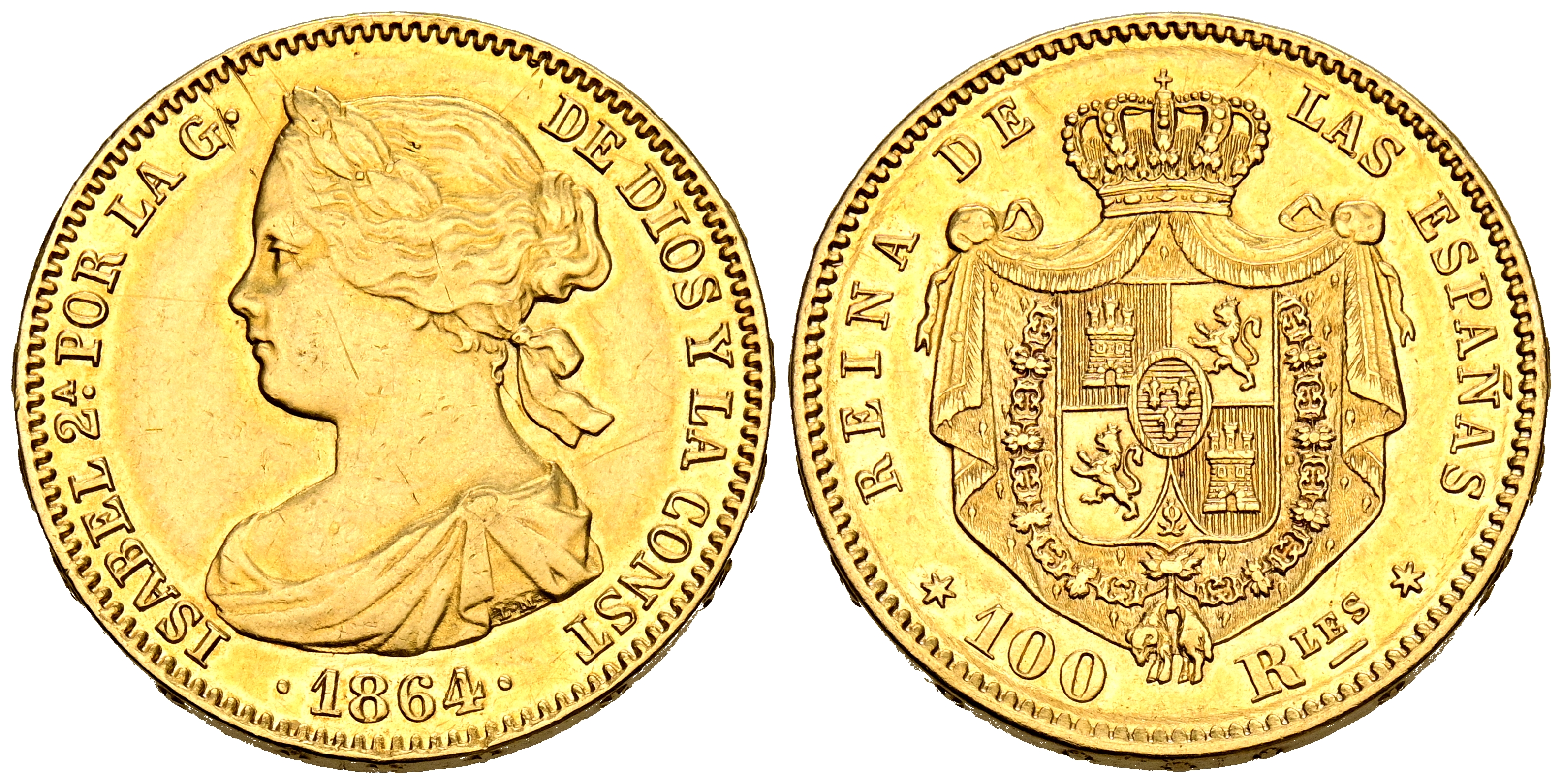 ISABEL II (1833-1868). 100 Reales. (Au. 8,31g/22mm). 1864. Madrid. (Cal-2019-792). MBC+.