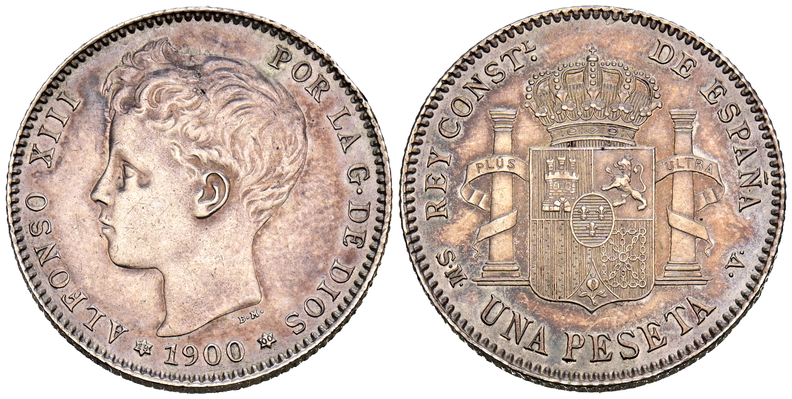 ALFONSO XIII (1885-1931). 1 Peseta. (Ar. 4,94g/23mm). 1900 *19-00. Madrid SMV. (Cal-2019-59). EBC-. Limpiada.