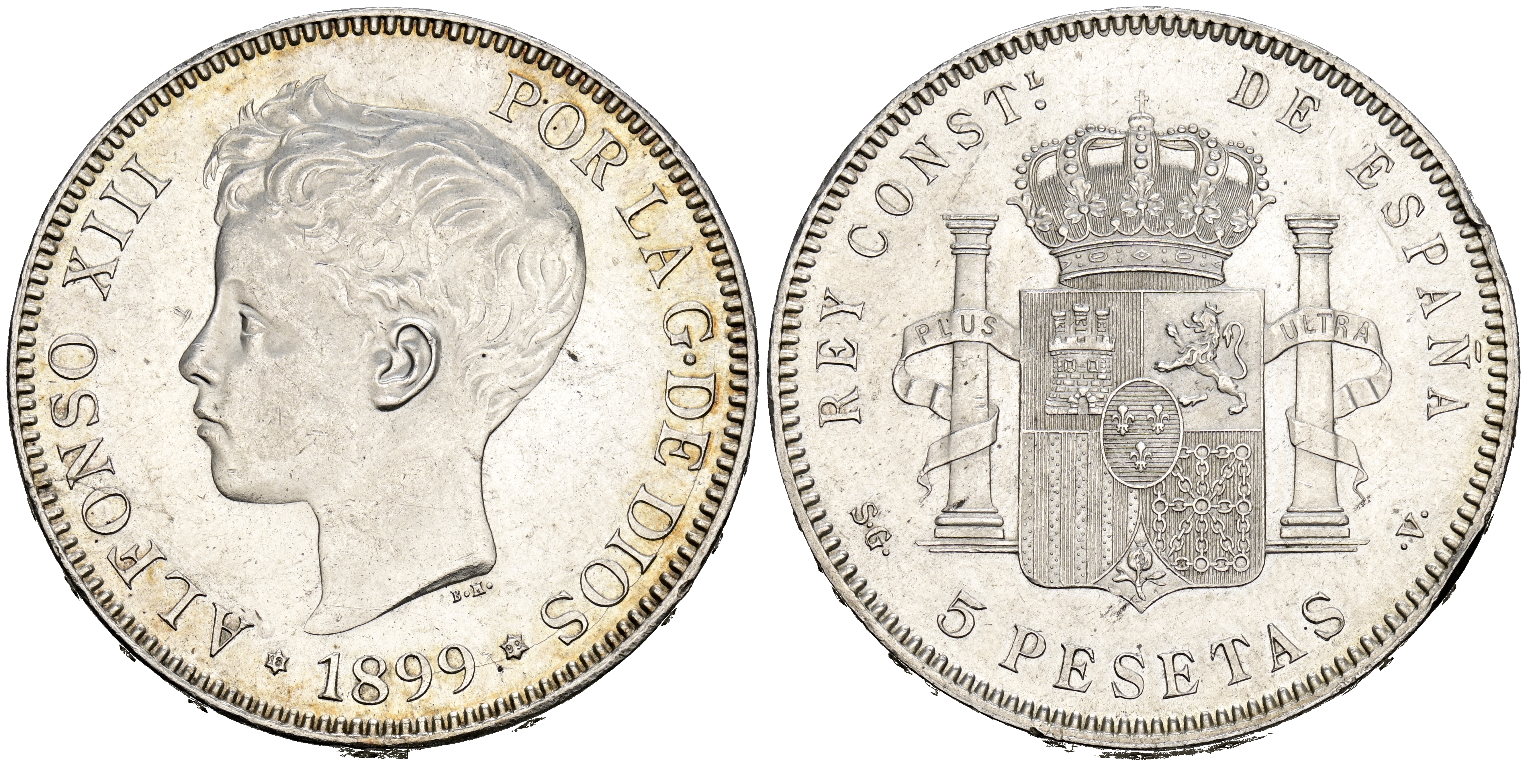 ALFONSO XIII (1885-1931). 5 Pesetas. (Ar. 25,21g/37mm). 1899 *18-99. Madrid SGV. (Cal-2019-110). EBC. Ligero golpecito y alguna rayita. Brillo original.