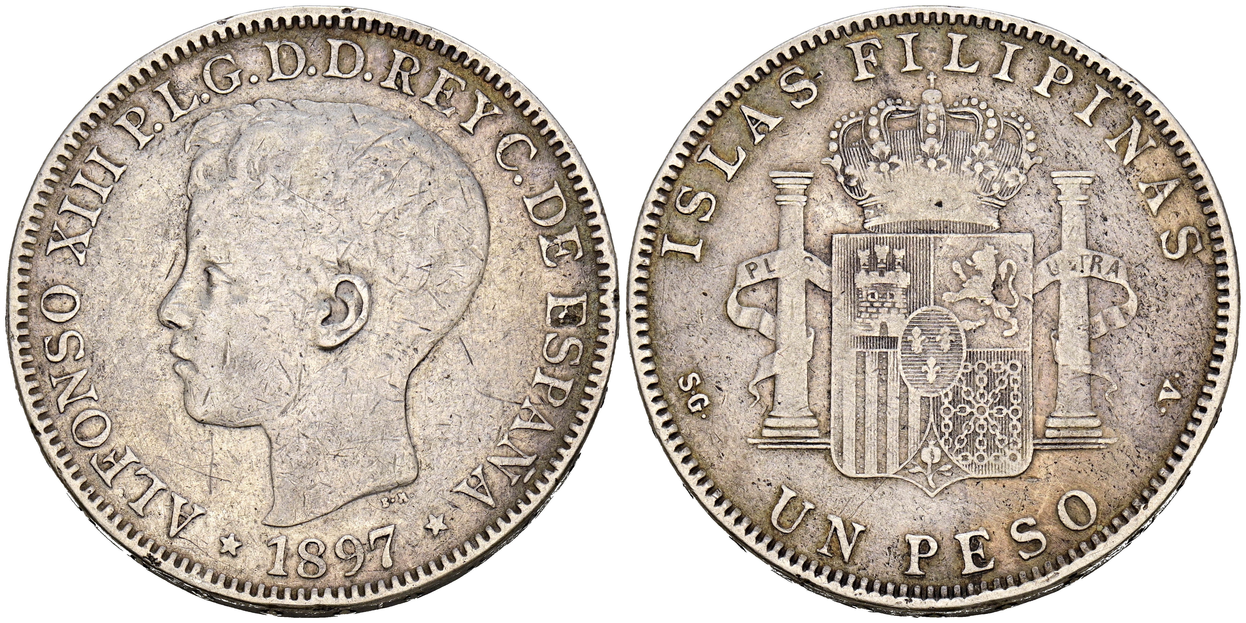 ALFONSO XIII (1885-1931). 1 Peso. (Ar. 25,09g/37mm). 1897. Manila SGV. (Cal-2019-122). MBC.