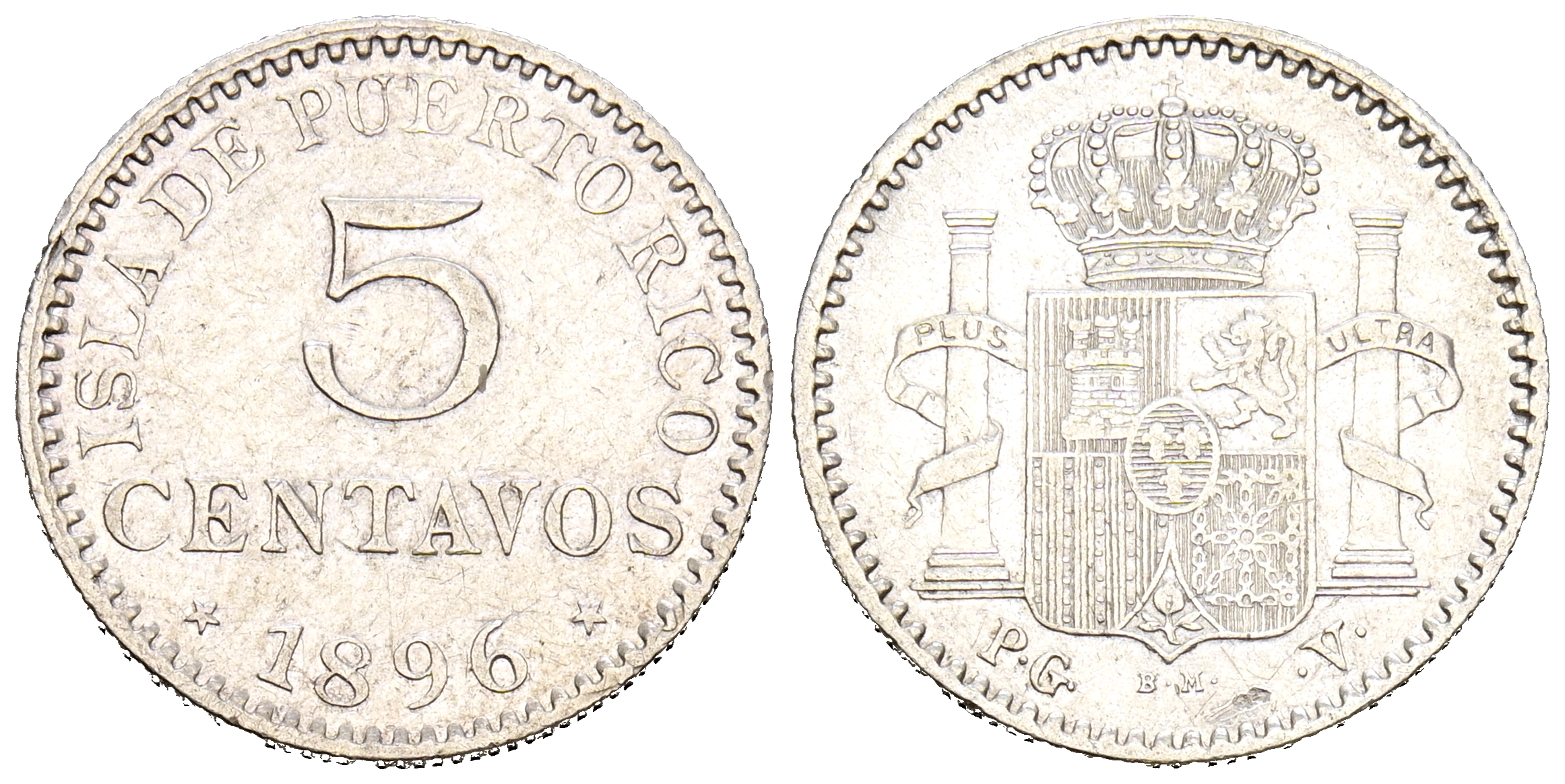 ALFONSO XIII (1885-1931). 5 Centavos. (Ar. 1,28g/16mm). 1896. Puerto Rico PGV. (Cal-2019-124). MBC+.
