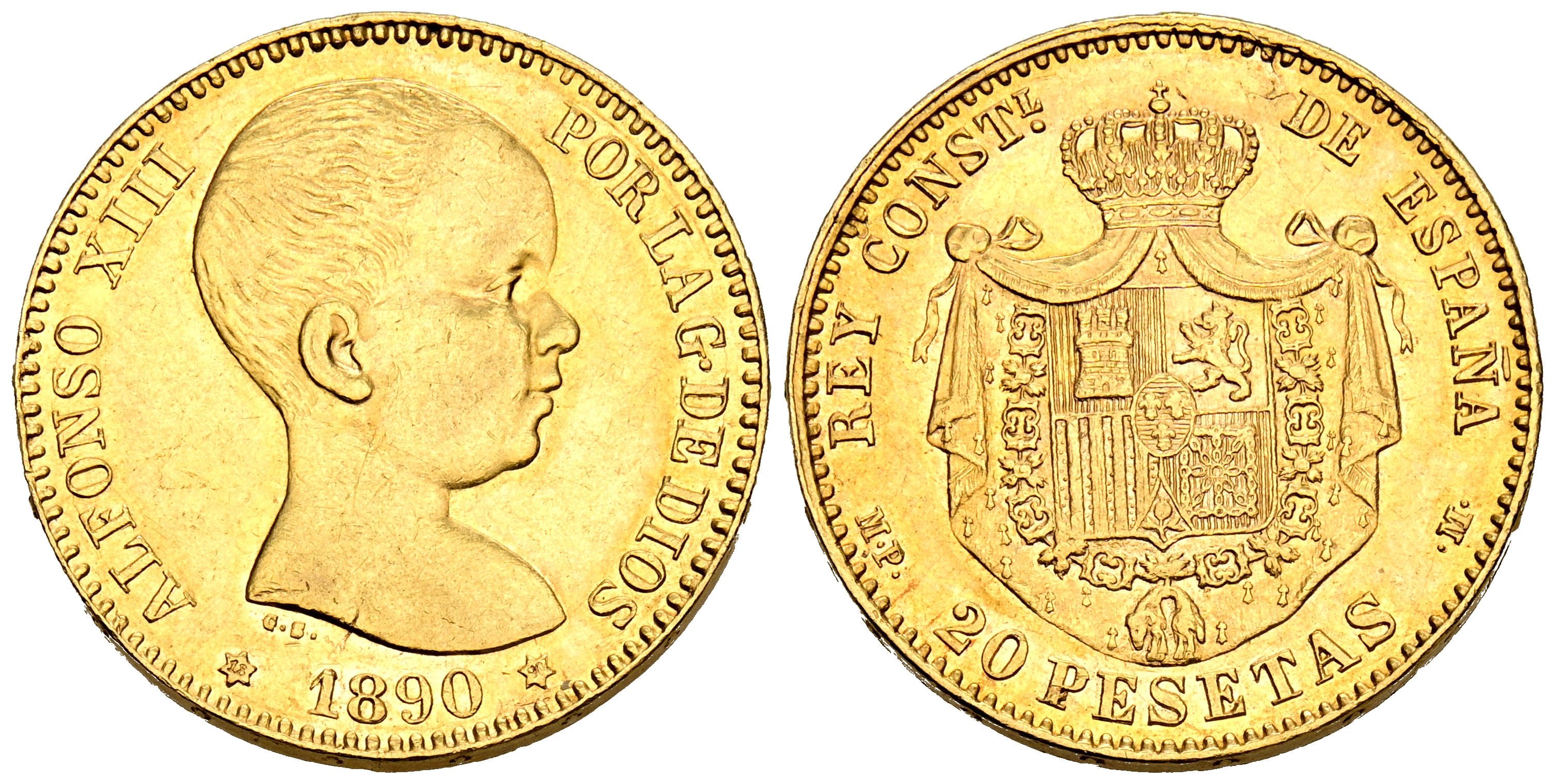 ALFONSO XIII (1885-1931). 20 Pesetas. (Au. 6.47g/21mm). 1890 *18-90. Madrid MPM. (Cal-2019-114). EBC-