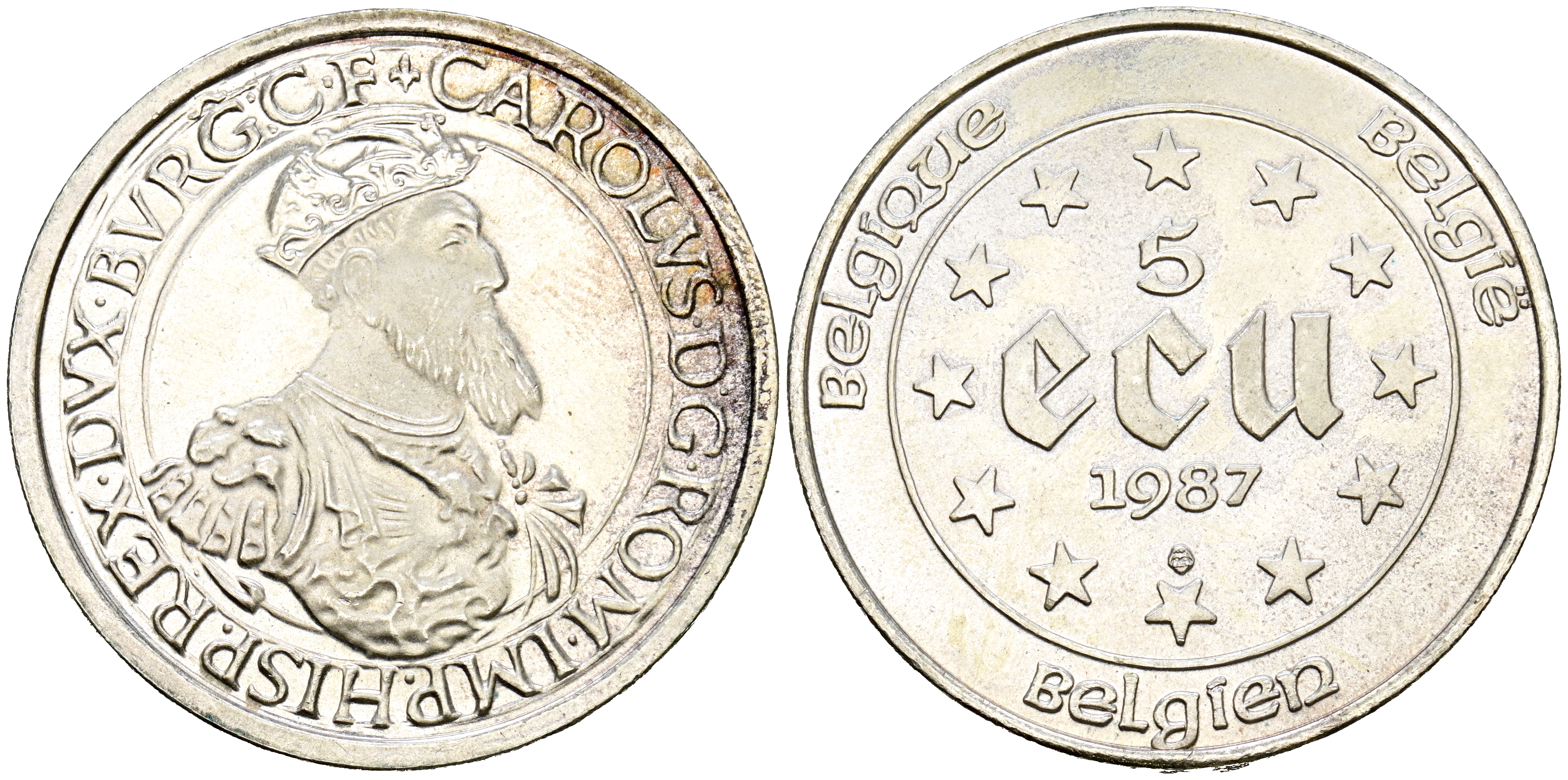 BÉLGICA. 5 Ecu. (Ar. 22,76g/37mm). 1987. 30 Aniversario del Tratado de Roma. (Km#166). EBC+.