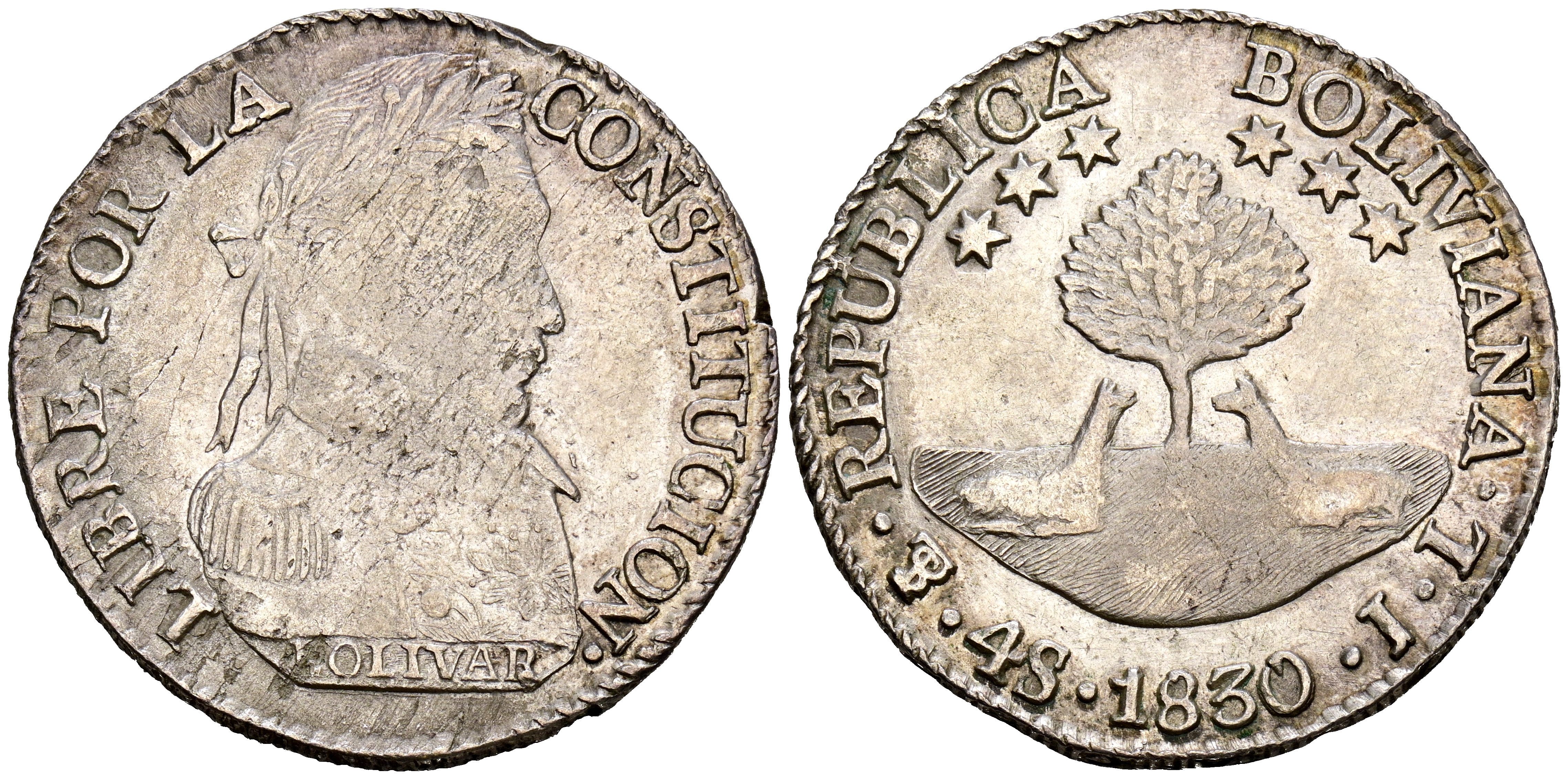 BOLIVIA. 4 Soles. (Ar. 13,43g/32mm). 1830. Potosí JL. (Km#96a). MBC+.