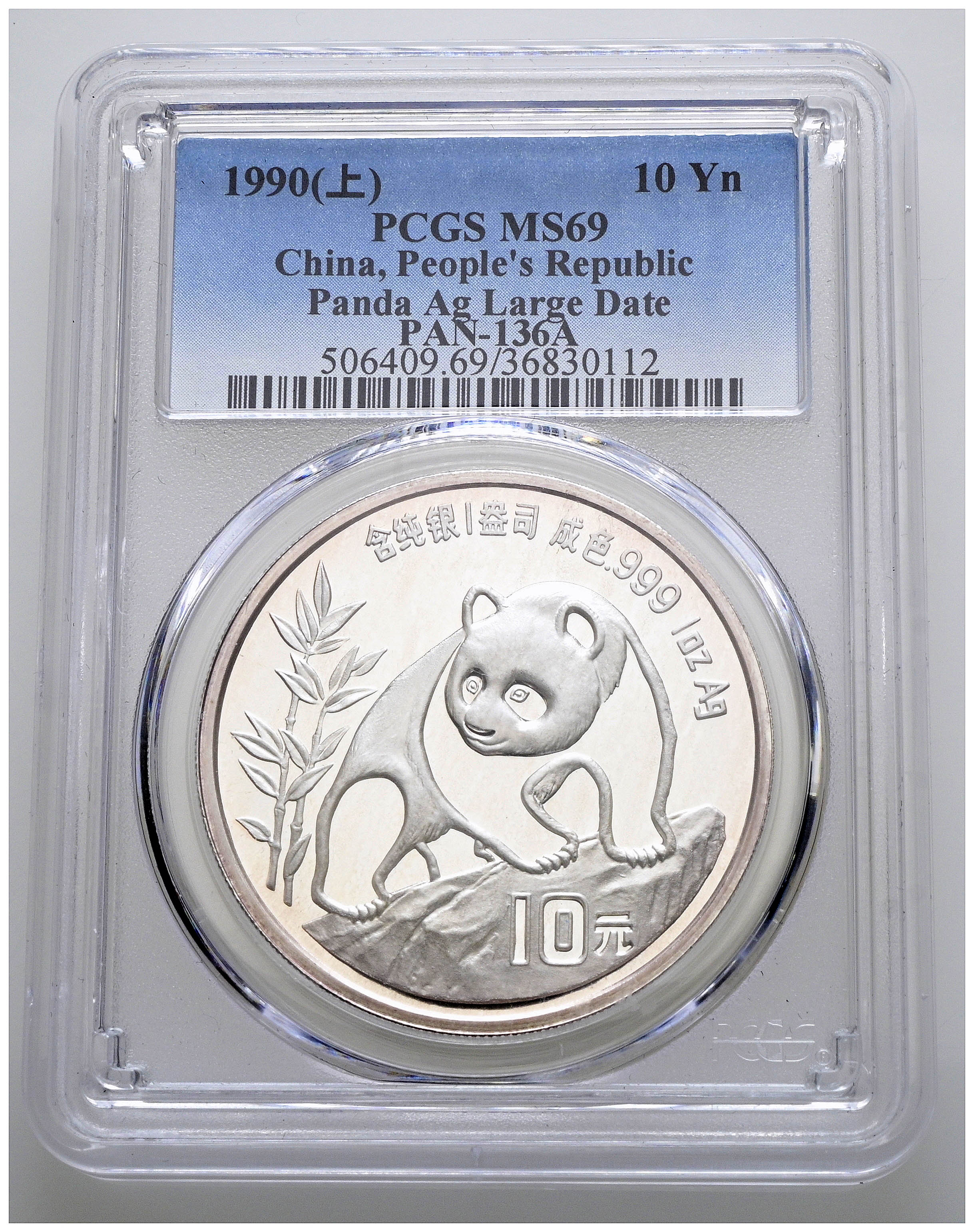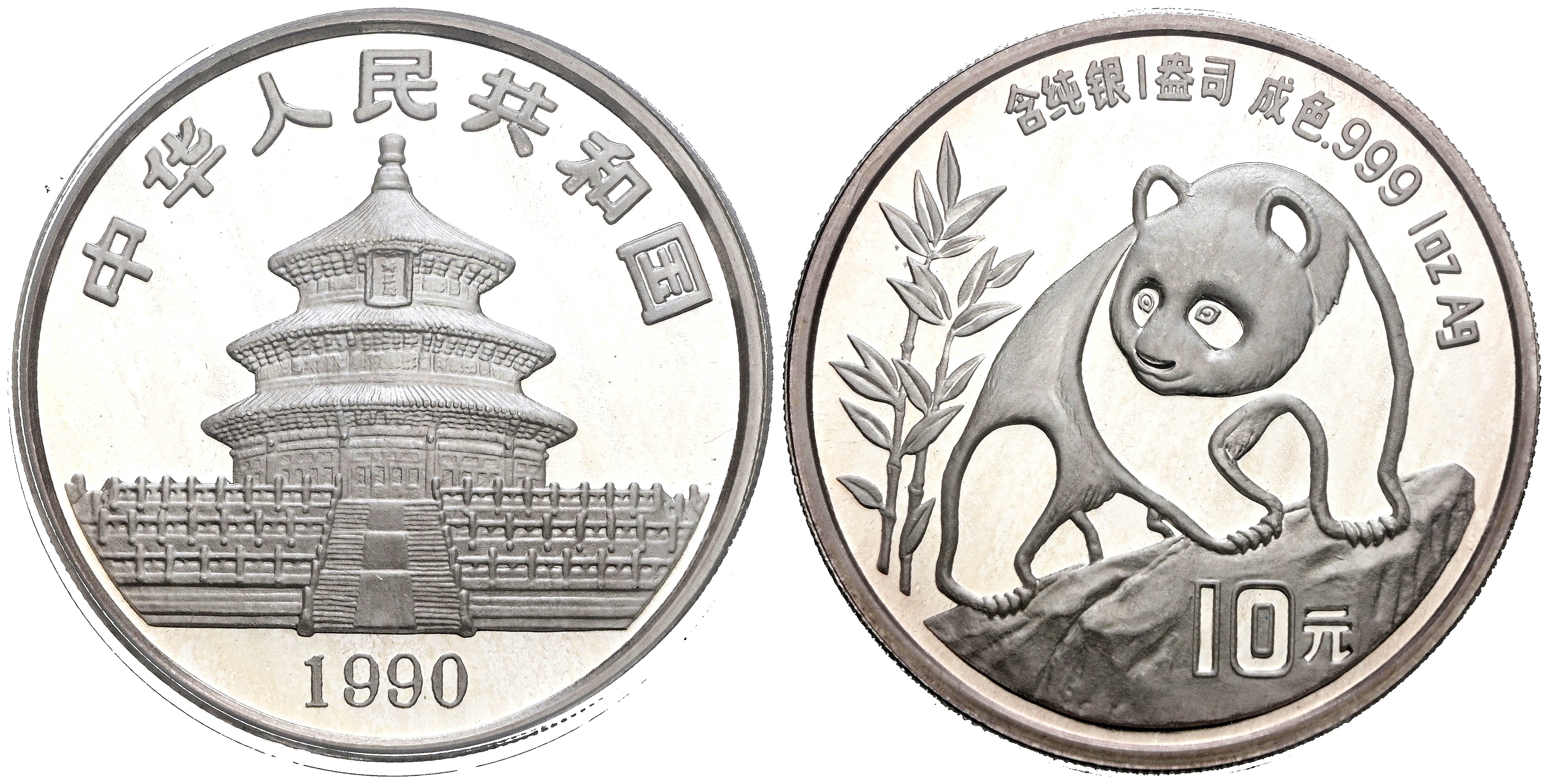 CHINA. 10 Yuan. (Ar. 30,00g/40mm)*. 1990. Serie Panda. (Km#276). Encapsulado por PCGS MS 69. *Peso y medidas teóricos.