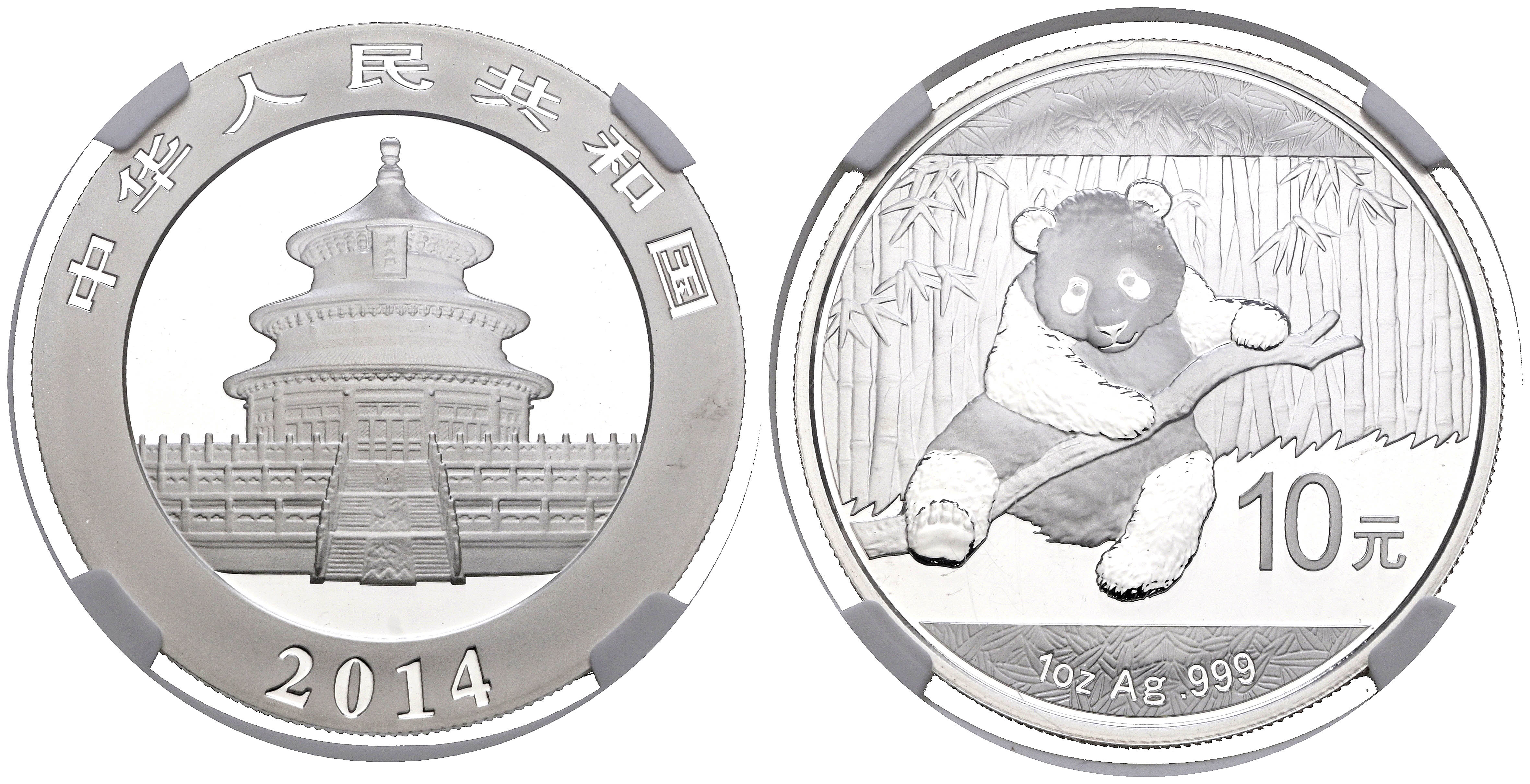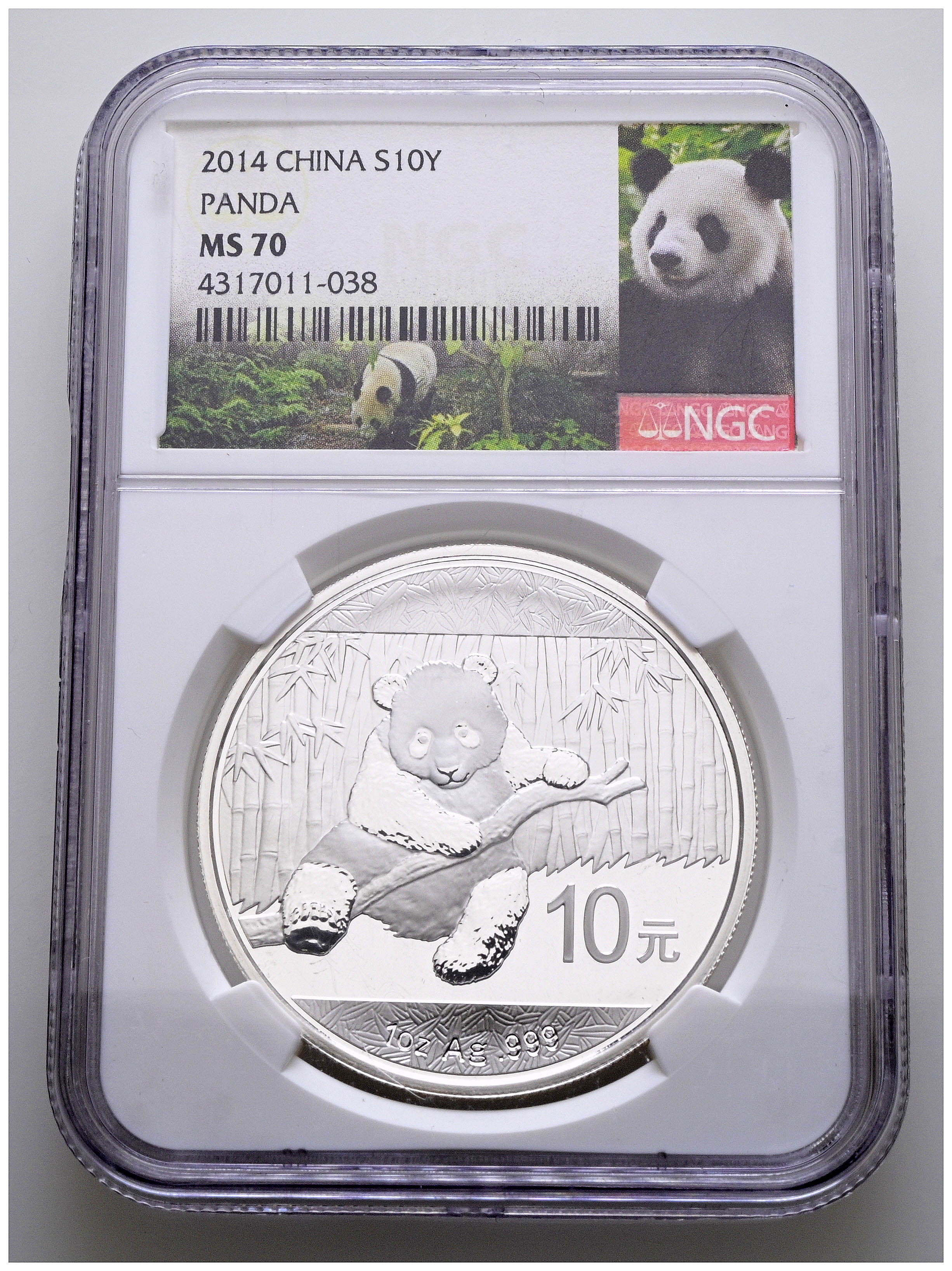 CHINA. 10 Yuan. (Ar. 30,00g/40mm)*. 2014. Serie Panda. Encapsulado por NGC MS 70. *Peso y medidas teóricos.