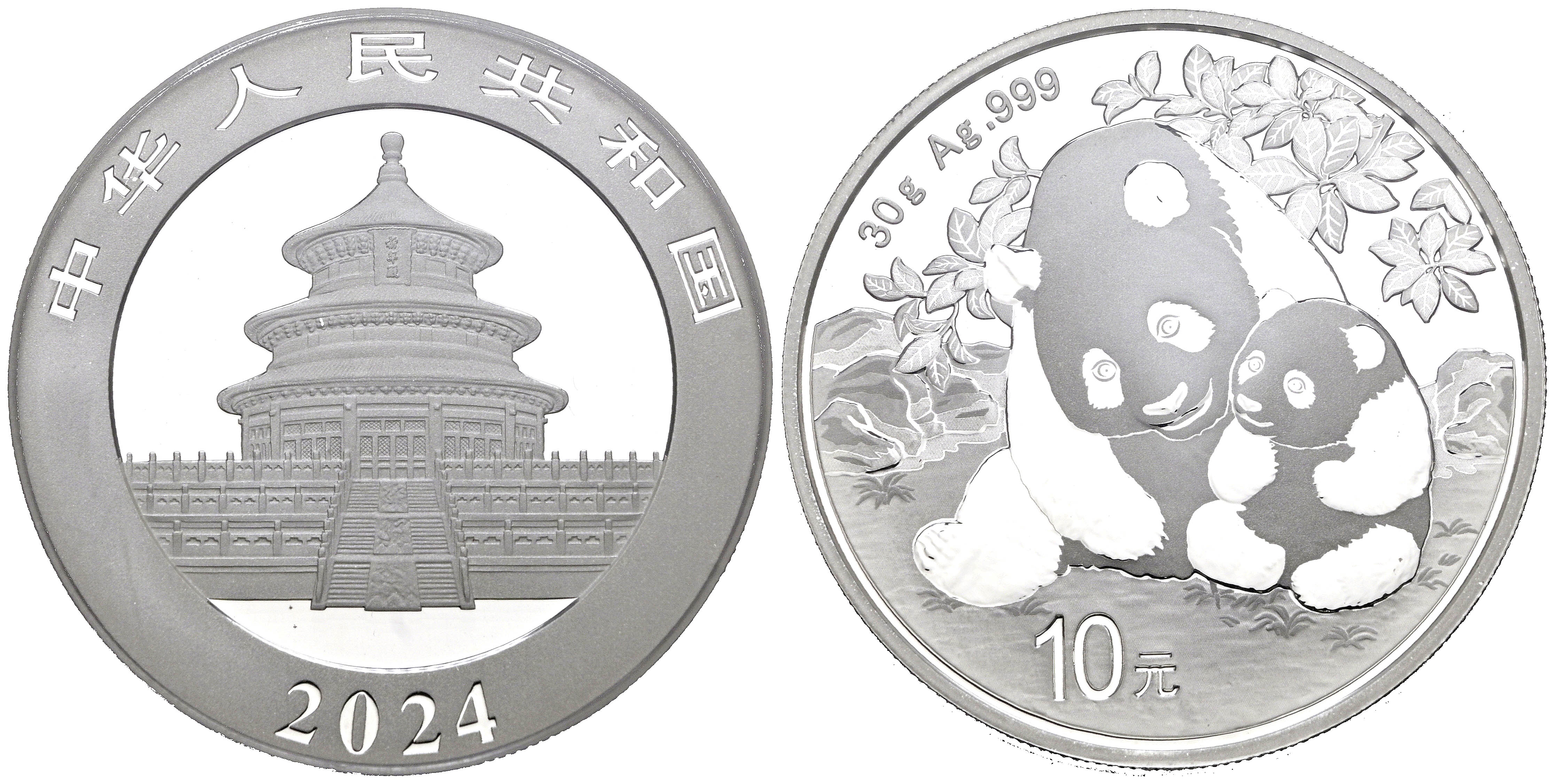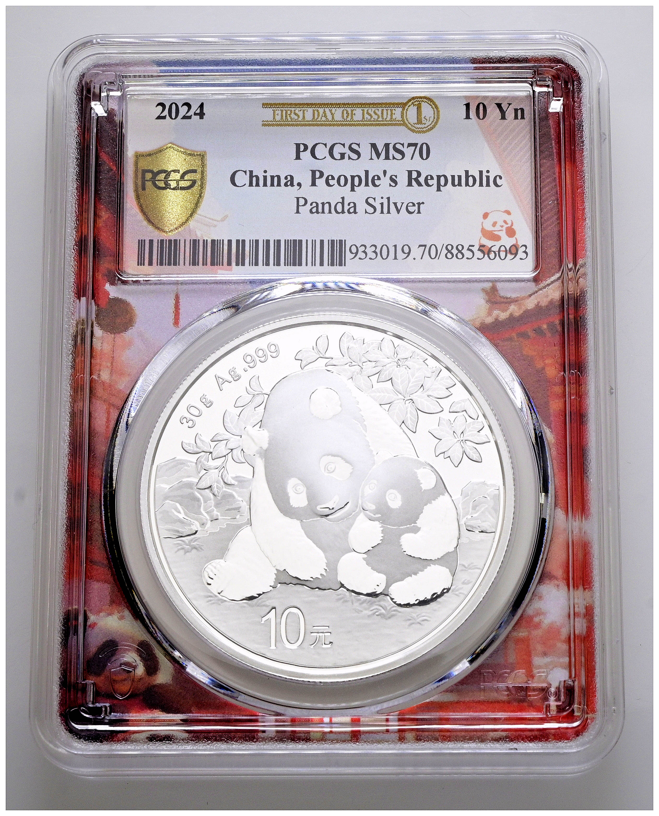 CHINA. 10 Yuan. (Ar. 30,00g/40mm)*. 2024. Serie Panda. First Day of Issue. Encapsulado por PCGS MS 70. *Peso y medidas teóricos.