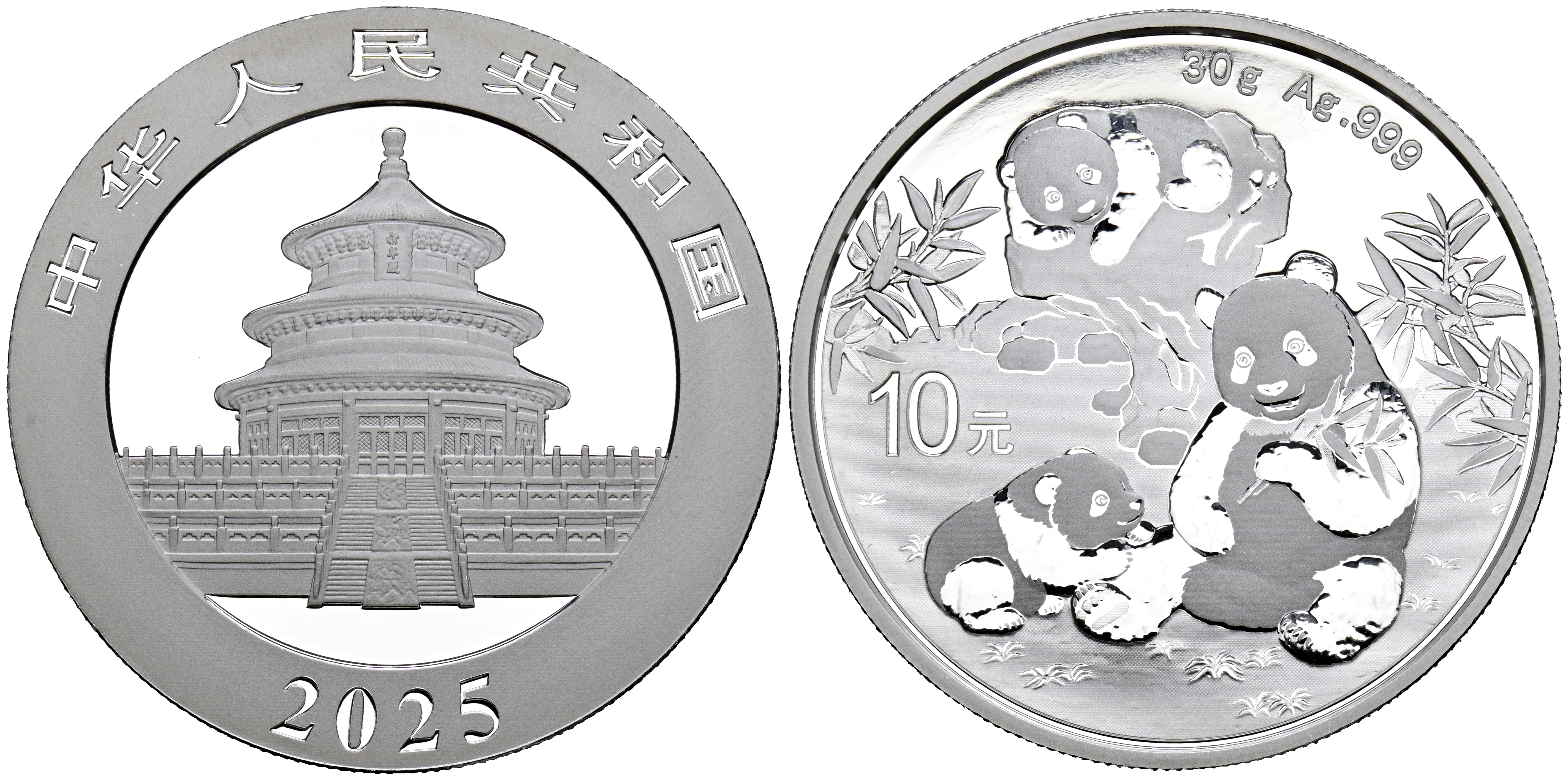 CHINA. 10 Yuan. (Ar. 29,90g/40mm). 2025. Serie Panda. SC.