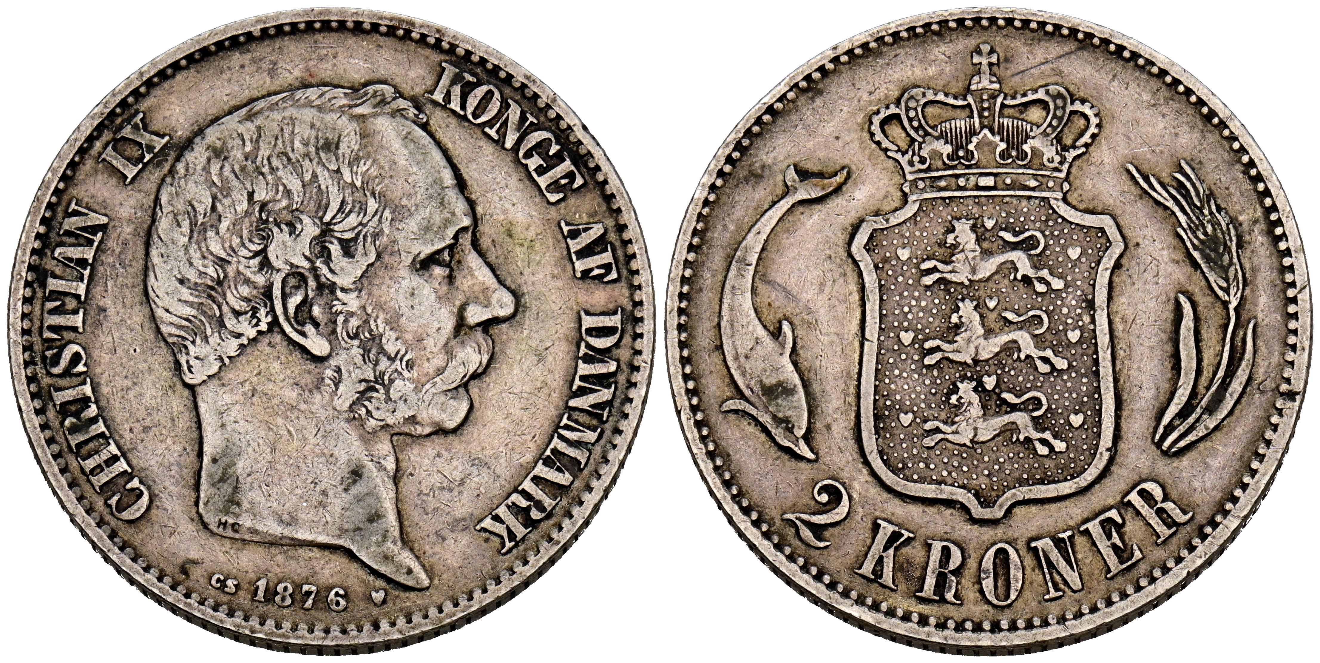DINAMARCA, Christian IX. 2 Kroner. (Ar. 14,89g/31mm). 1876. (Km#798.1). MBC-.