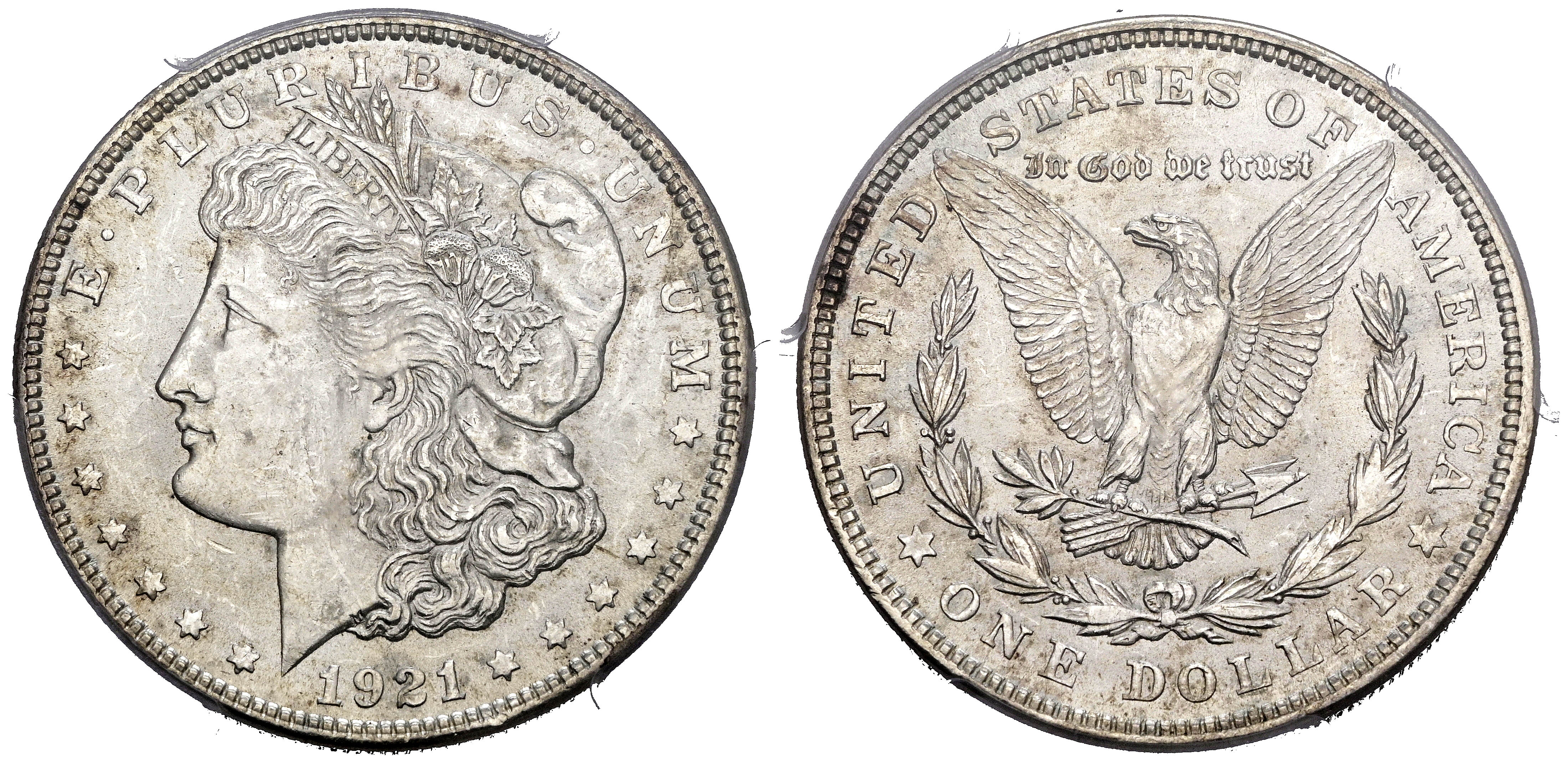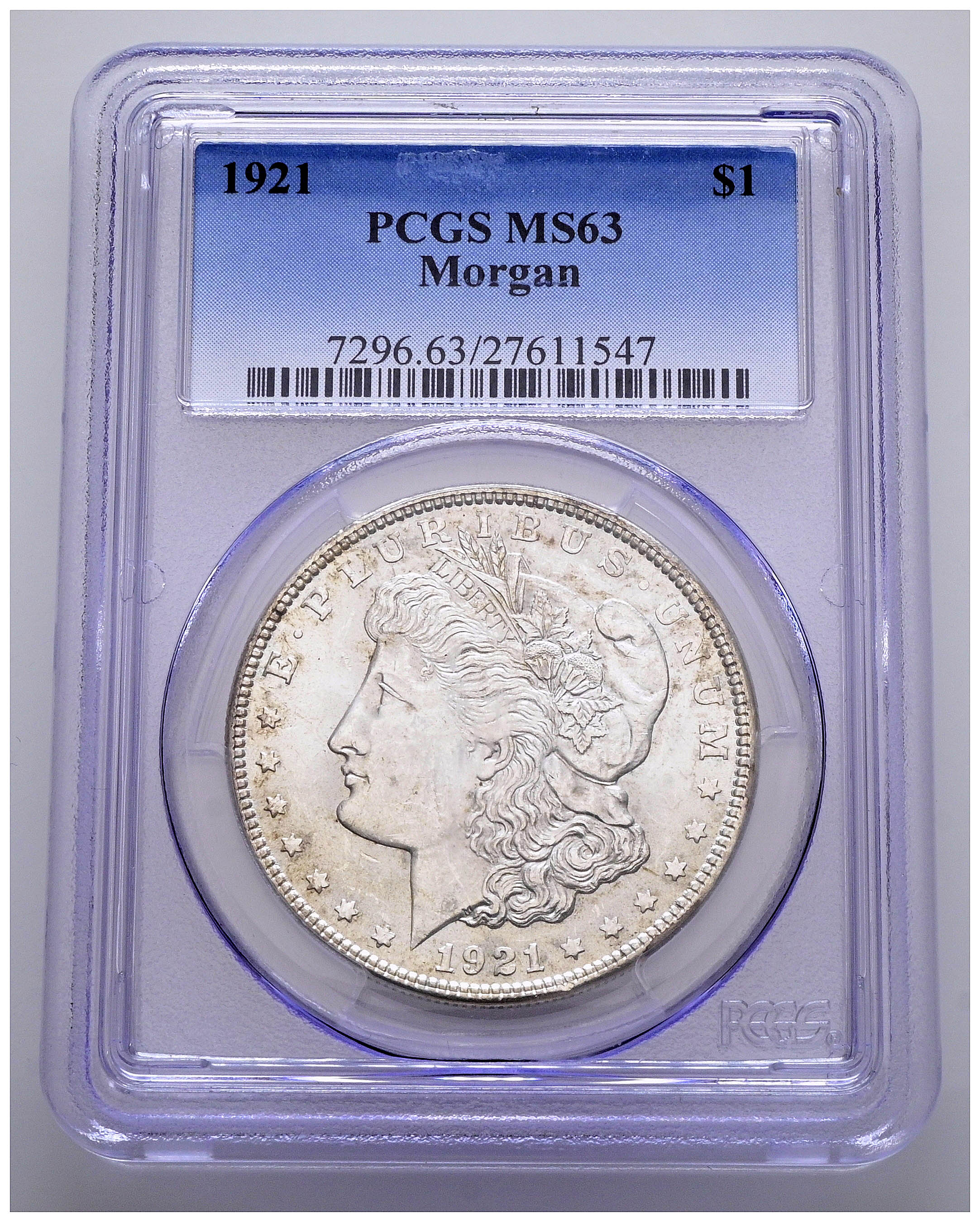 ESTADOS UNIDOS. 1 Dollar. (Ar. 27,00g/38mm)*. 1921. Philadelphia. (Km#110). Encapsulado por PCGS MS 63. *Peso y medidas teóricos.