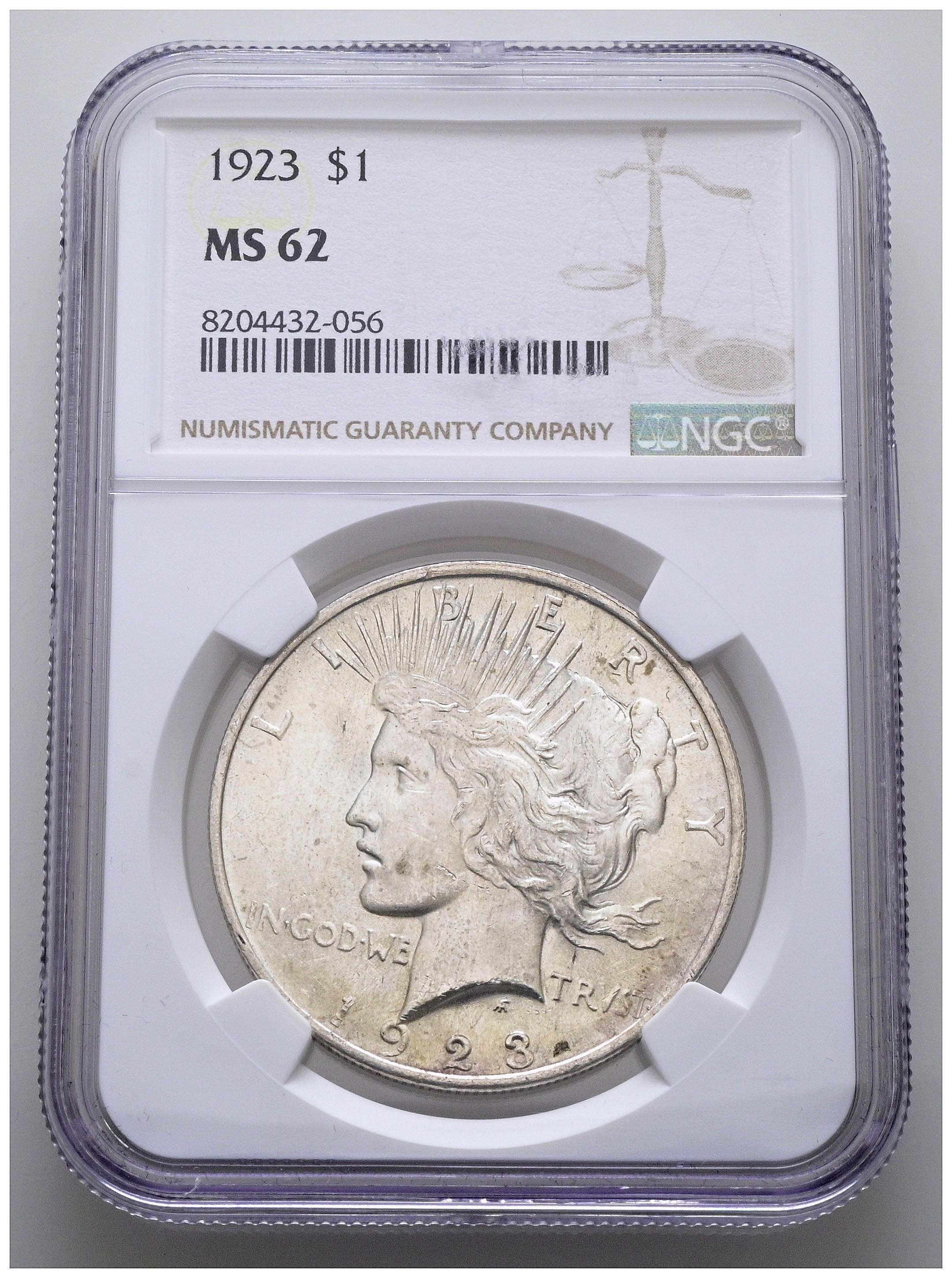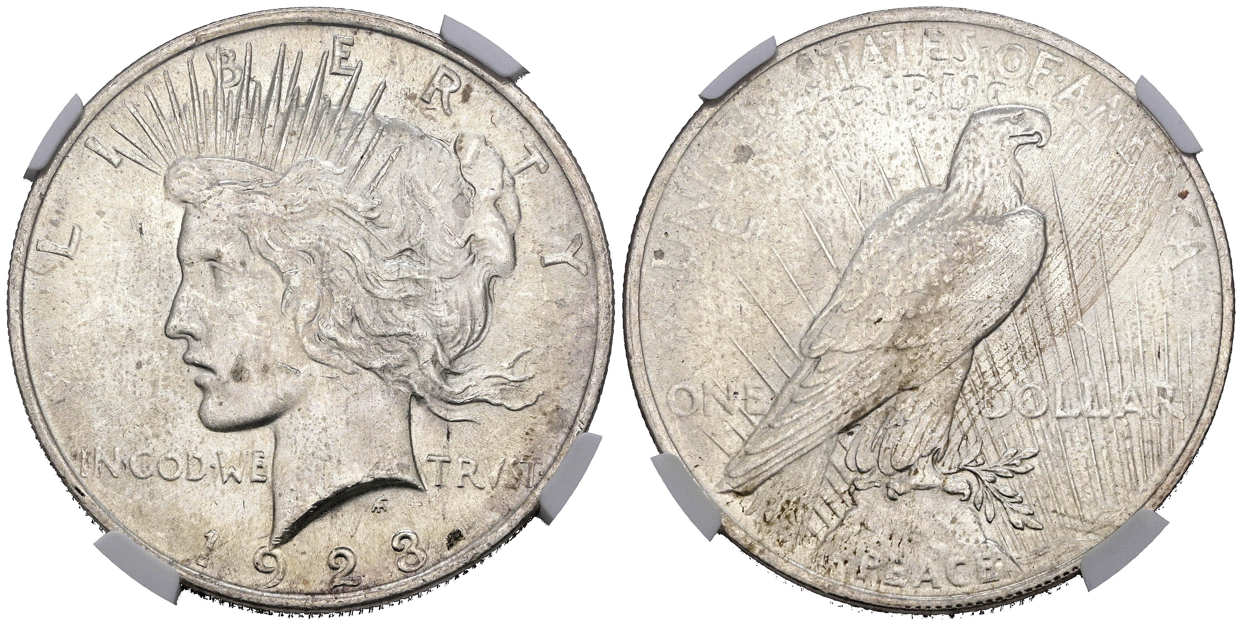 ESTADOS UNIDOS. 1 Dollar. (Ar. 27,00g/38mm)*. 1923. Philadelphia. (Km#150). Encapsulado por NGC MS 62. *Peso y medidas teóricos.