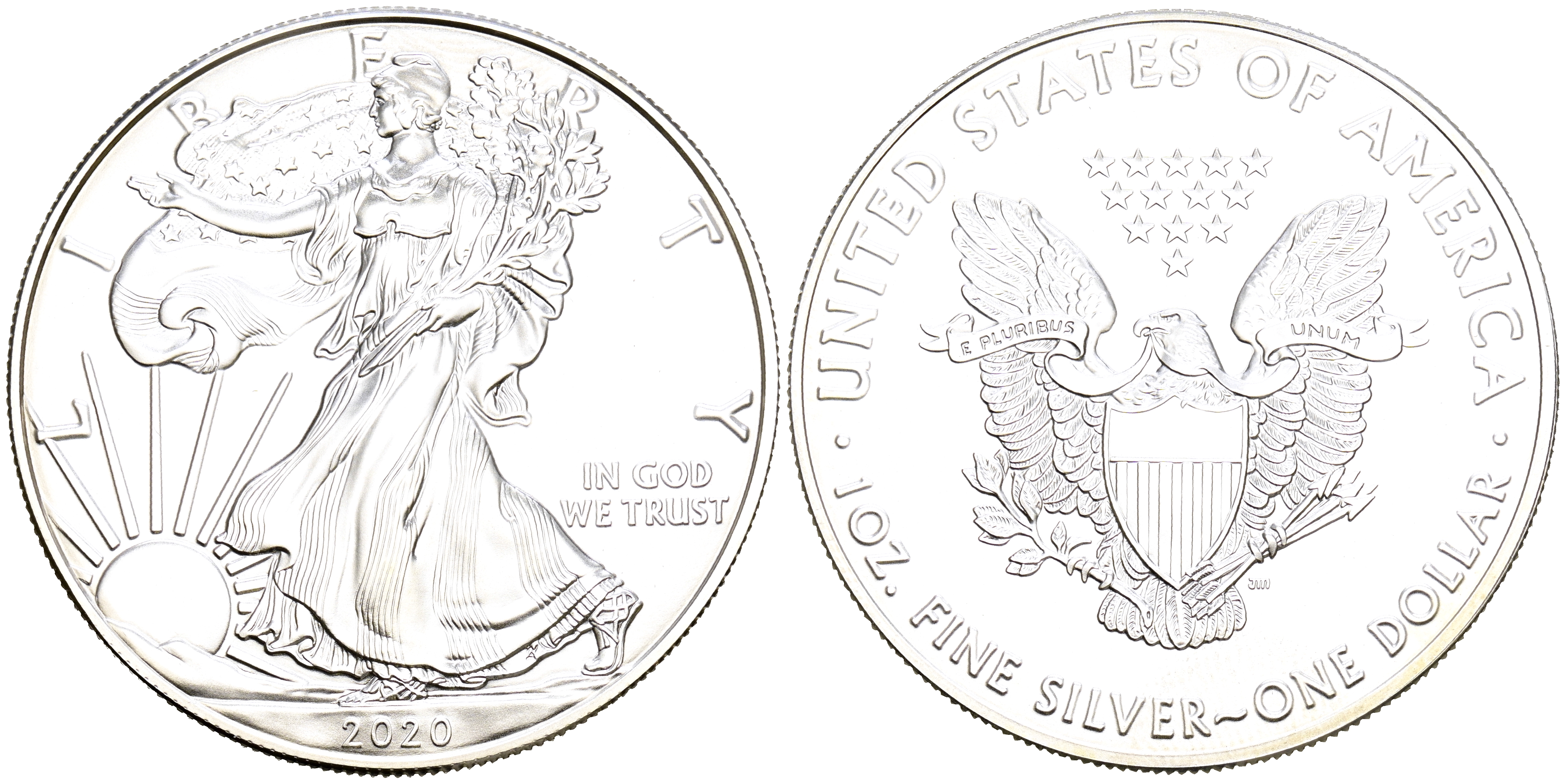 ESTADOS UNIDOS . 1 Dollar. (Ar. 31,33g/40mm). 2020. Sin marca de ceca (Philadelphia). (Km#273). Onza Troy. SC.