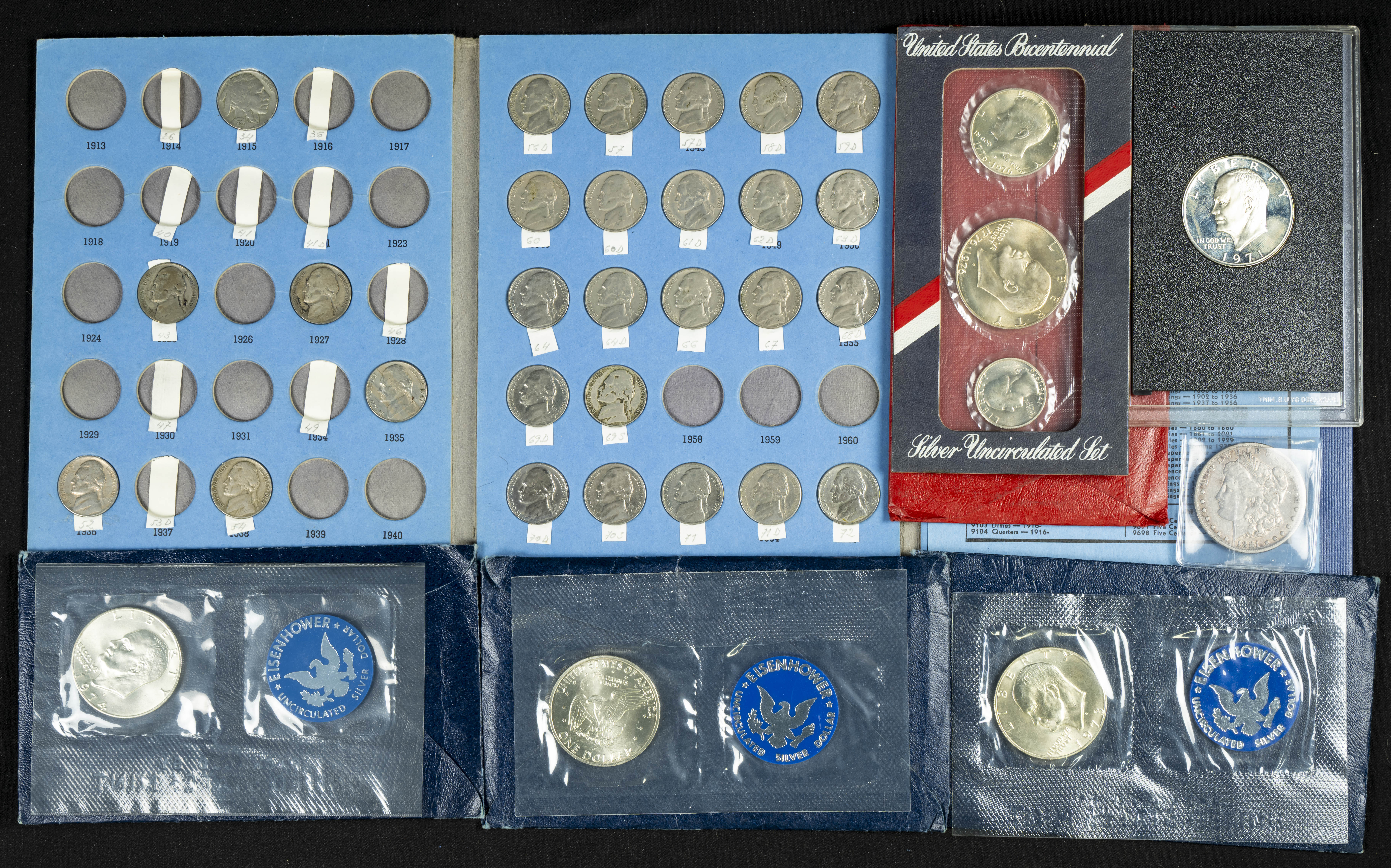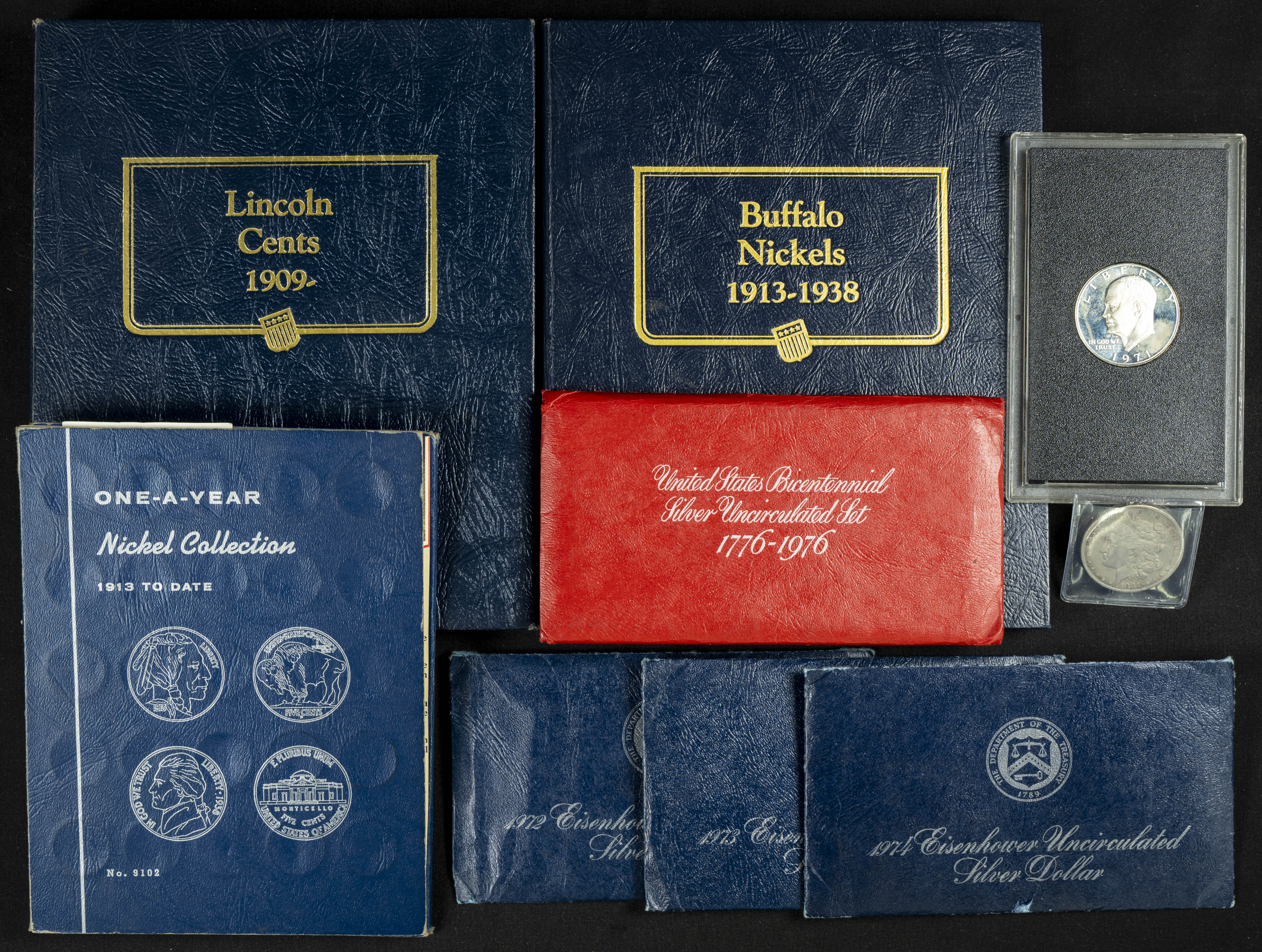 ESTADOS UNIDOS. Conjunto de más de 150 monedas, la mayoría de ellas expuestas en álbumes Whitman, acuñadas a lo largo del S. XX. El conjunto incluye varios dólares de plata. Diferentes estados de conservación. A EXAMINAR