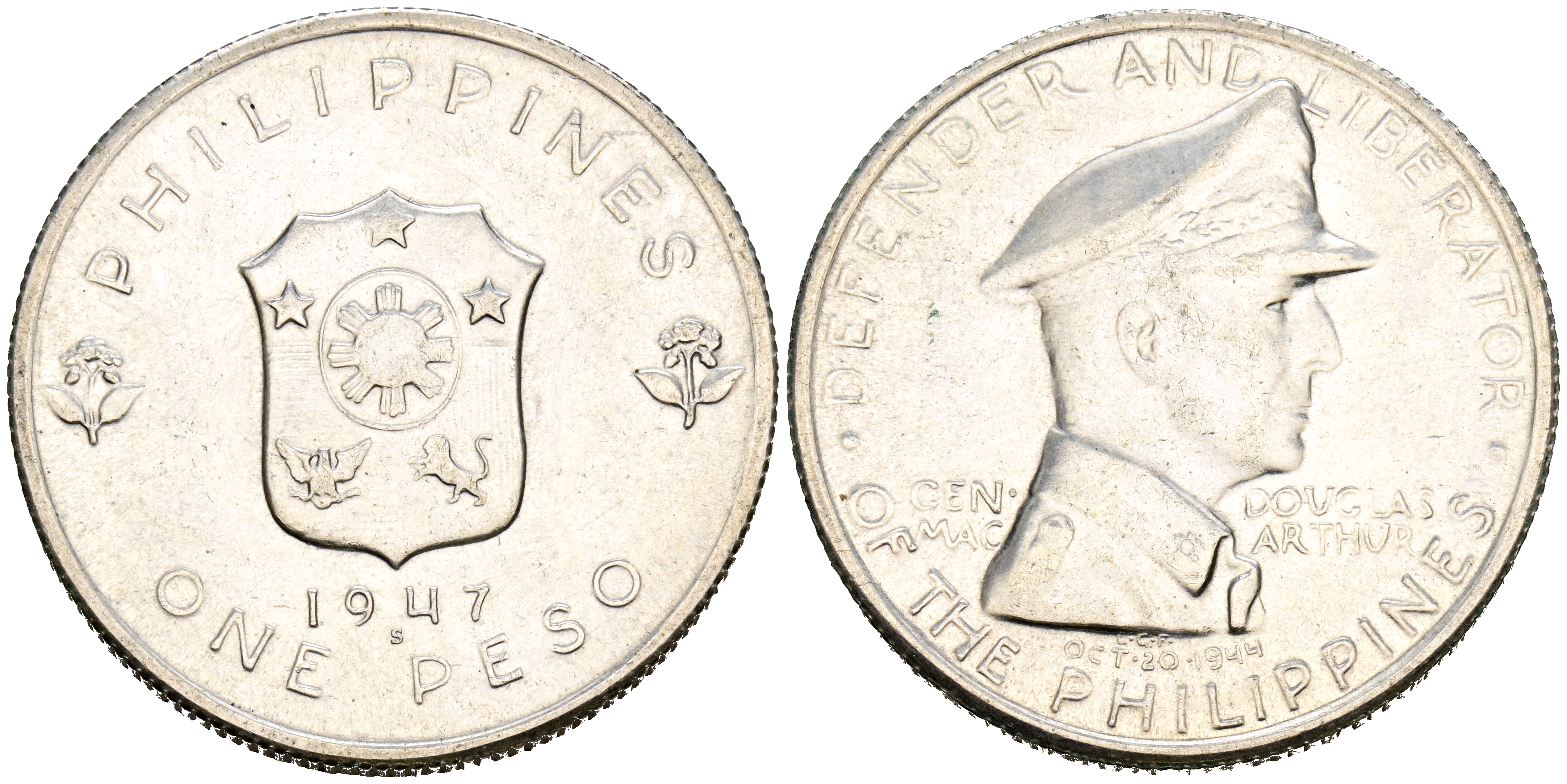 FILIPINAS. 1 Peso. (Ar. 20,07g/36mm). 1947. San Francisco S. Centenario Douglas MacArthur. (Km#185). EBC.