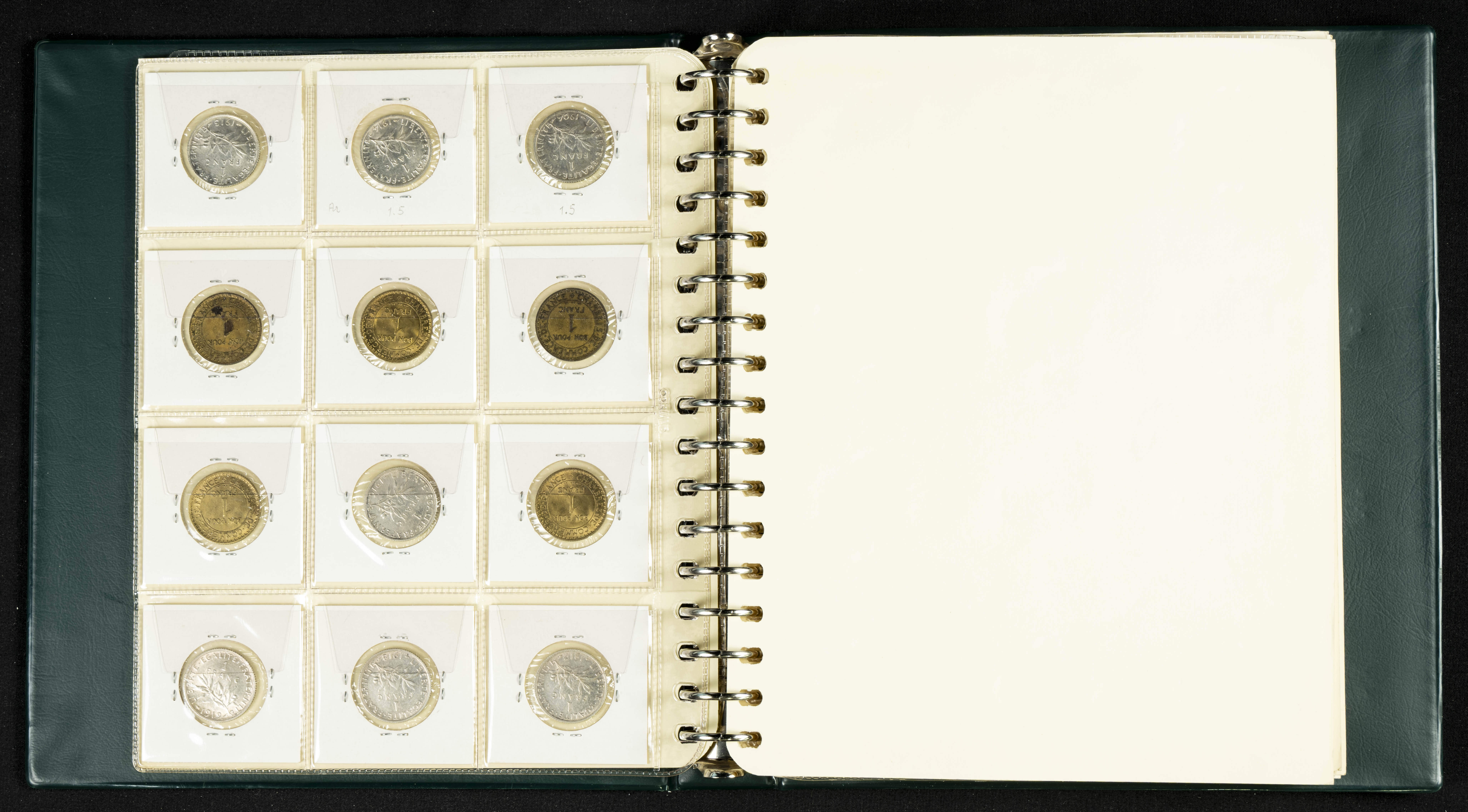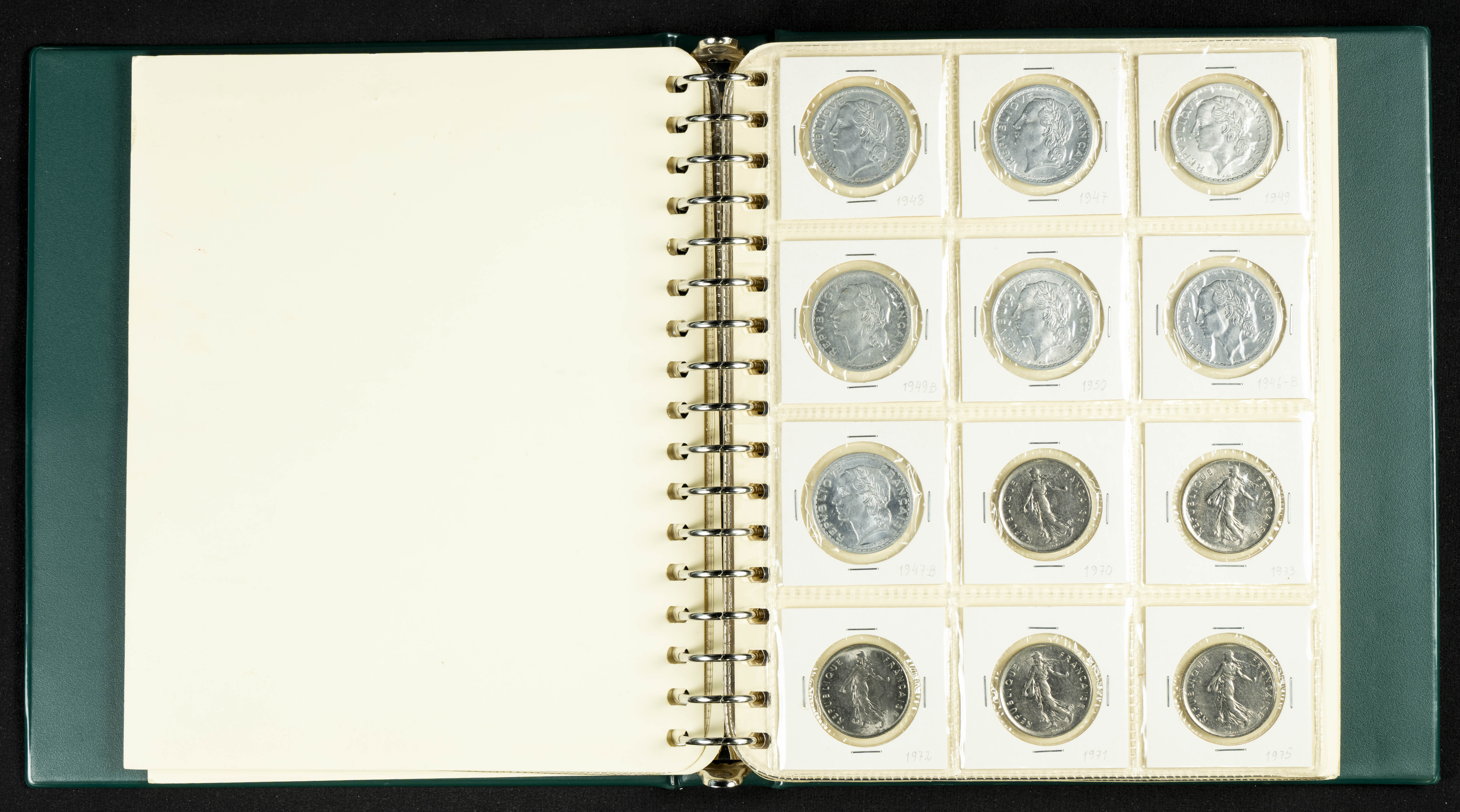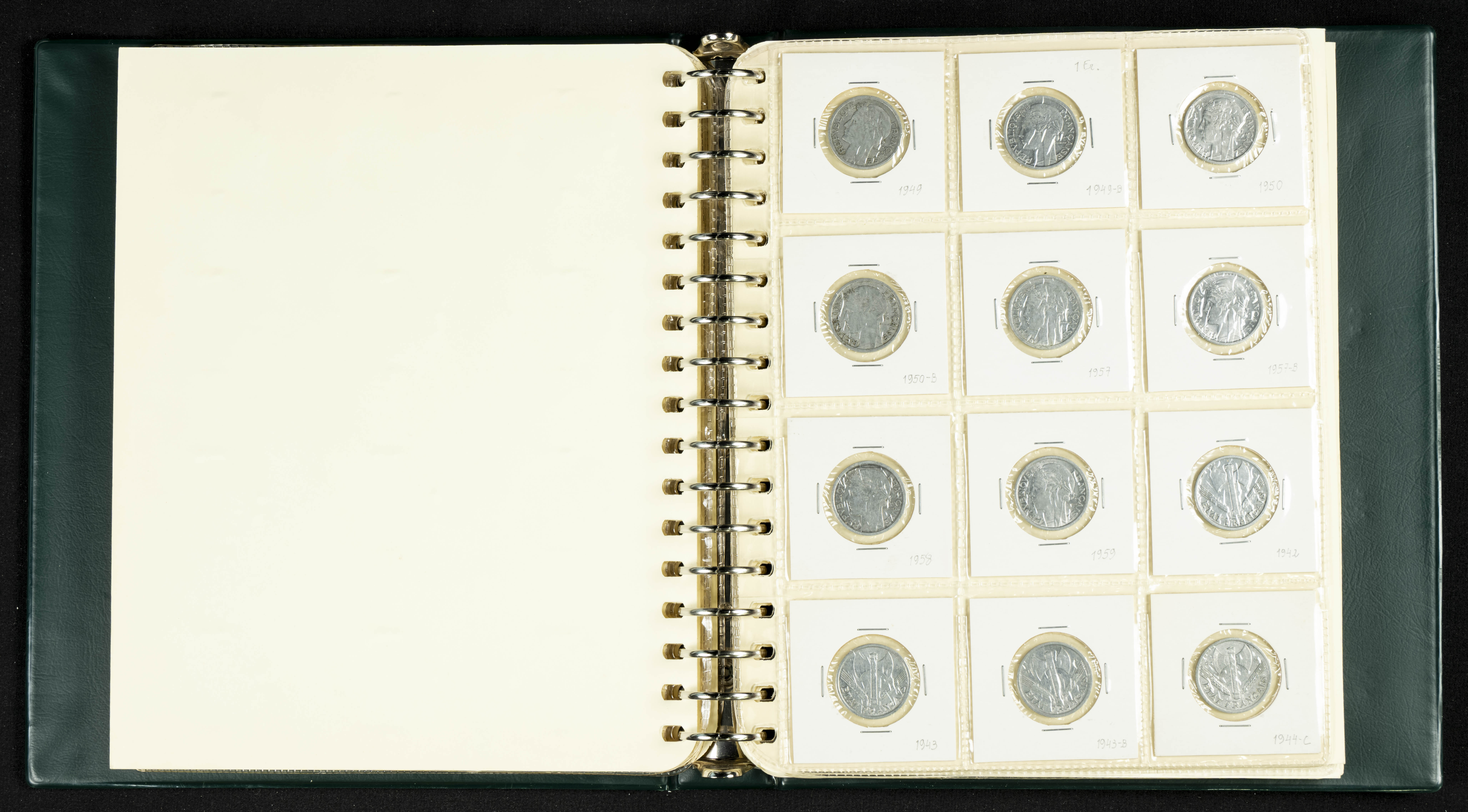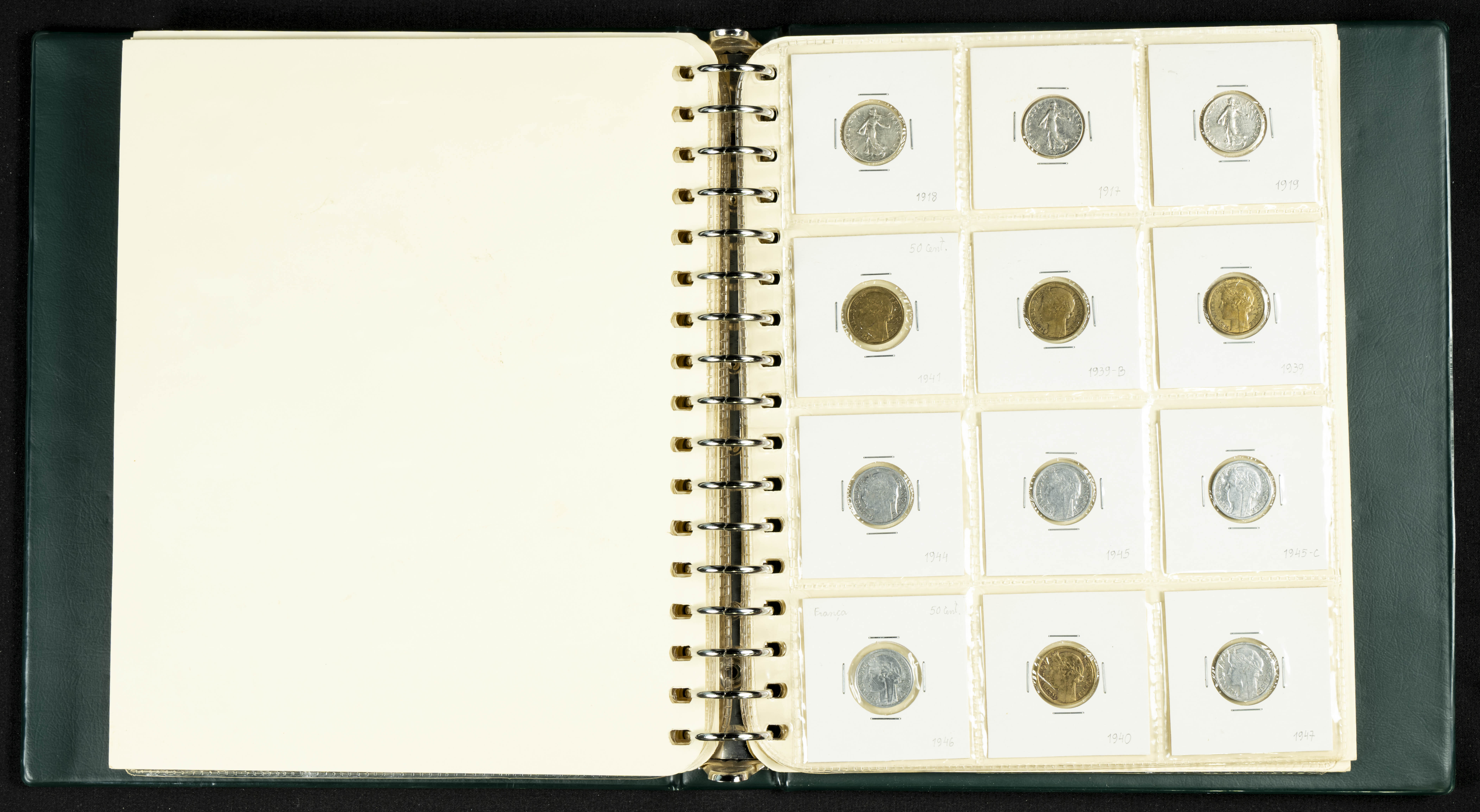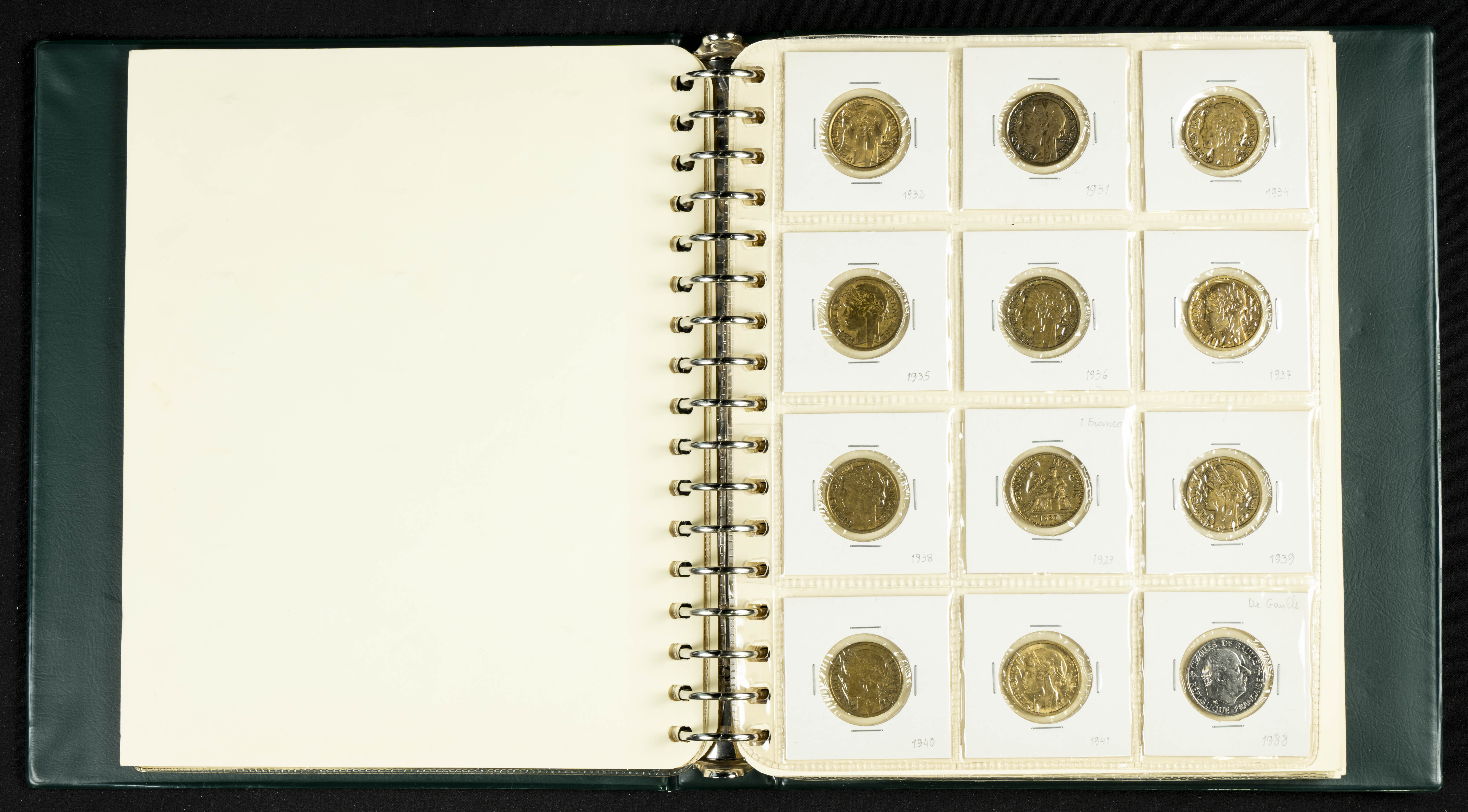 FRANCIA. Interesante y extenso conjunto formado por más de 500 monedas y expuestas en 4 álbumes con acuñaciones comprendidas entre finales de los siglos XIX y XX. Gran variedad de módulos, materiales y fechas así como de estados de conservación. A EXAMINAR.