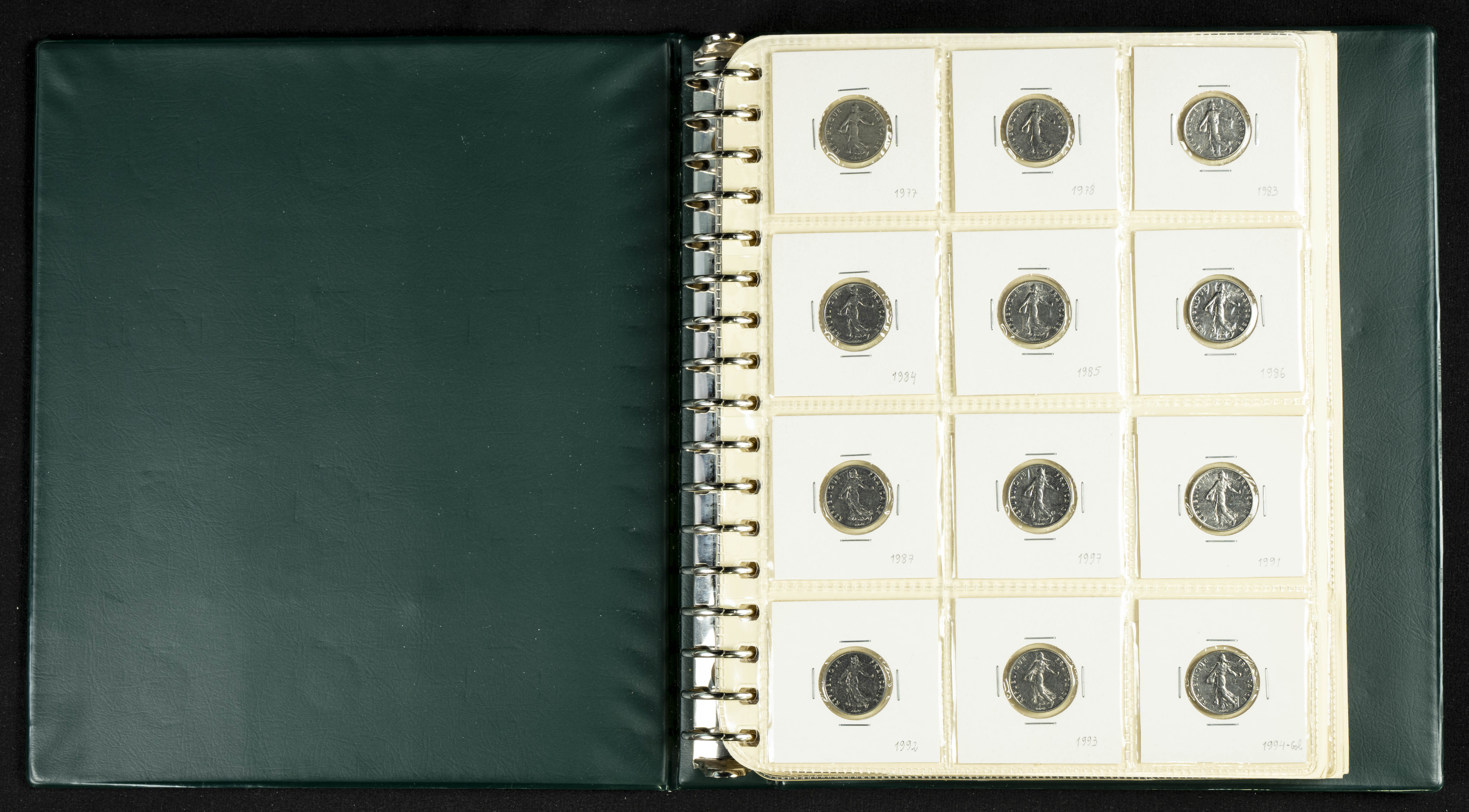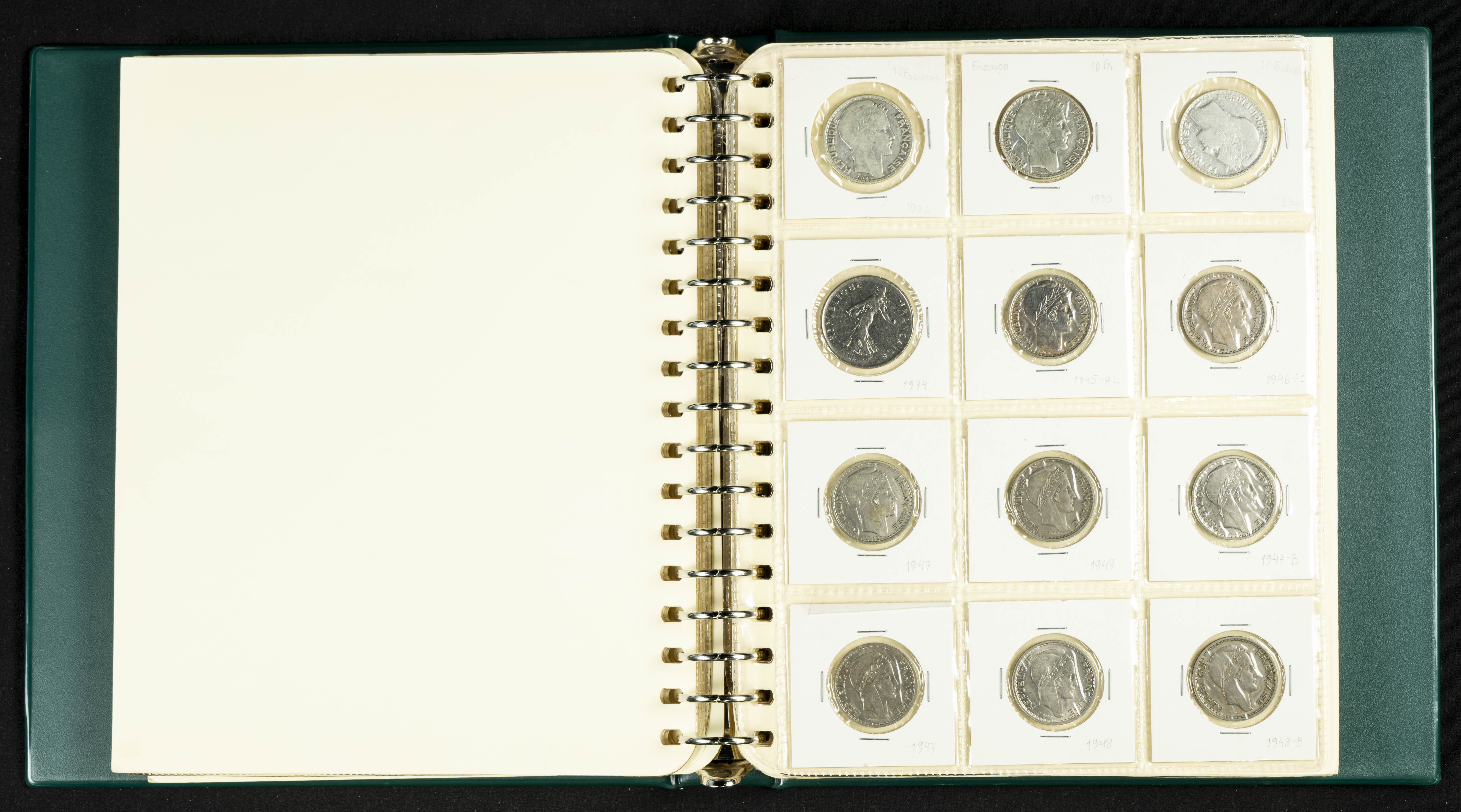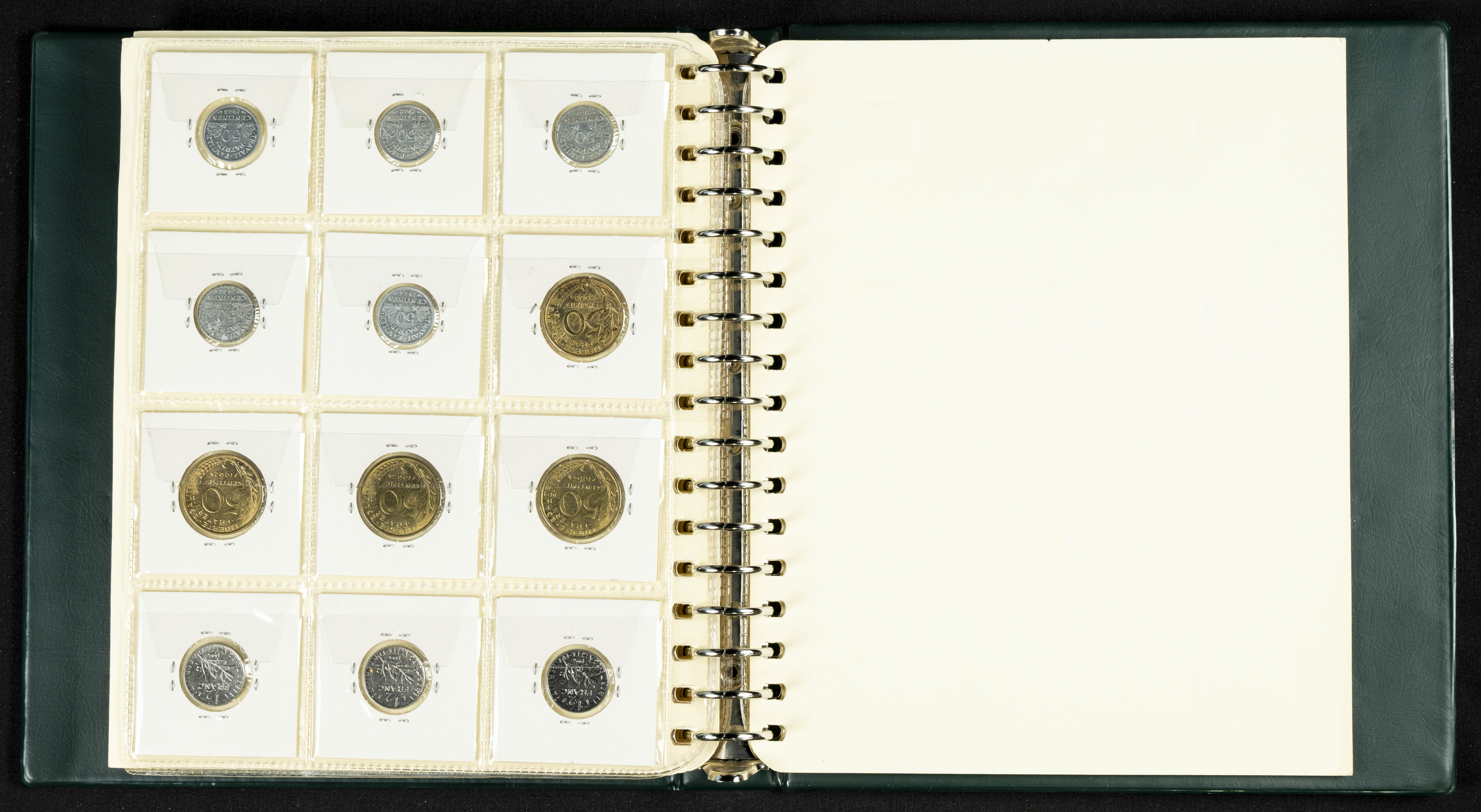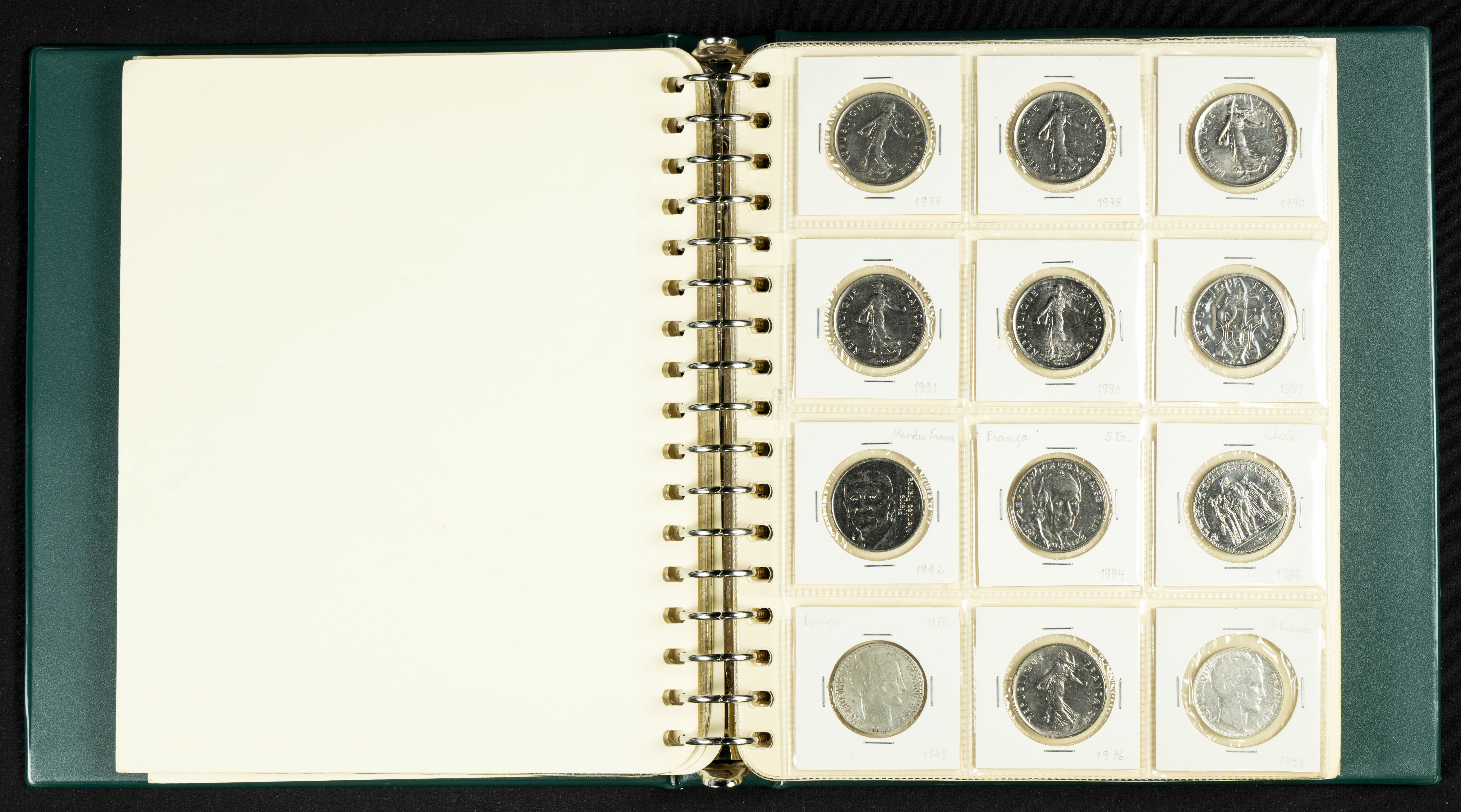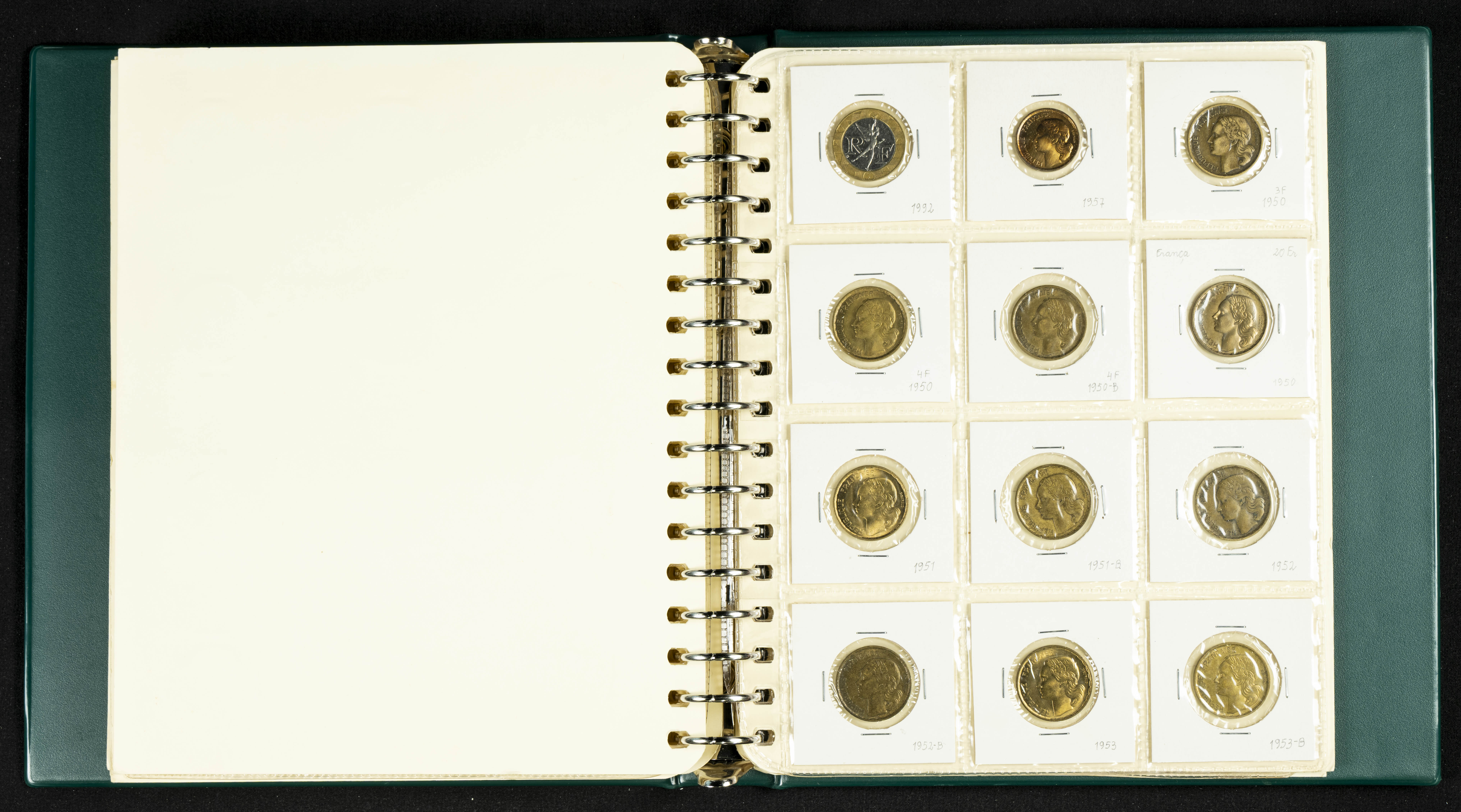 FRANCIA. Interesante y extenso conjunto formado por más de 500 monedas y expuestas en 4 álbumes con acuñaciones comprendidas entre finales de los siglos XIX y XX. Gran variedad de módulos, materiales y fechas así como de estados de conservación. A EXAMINAR.