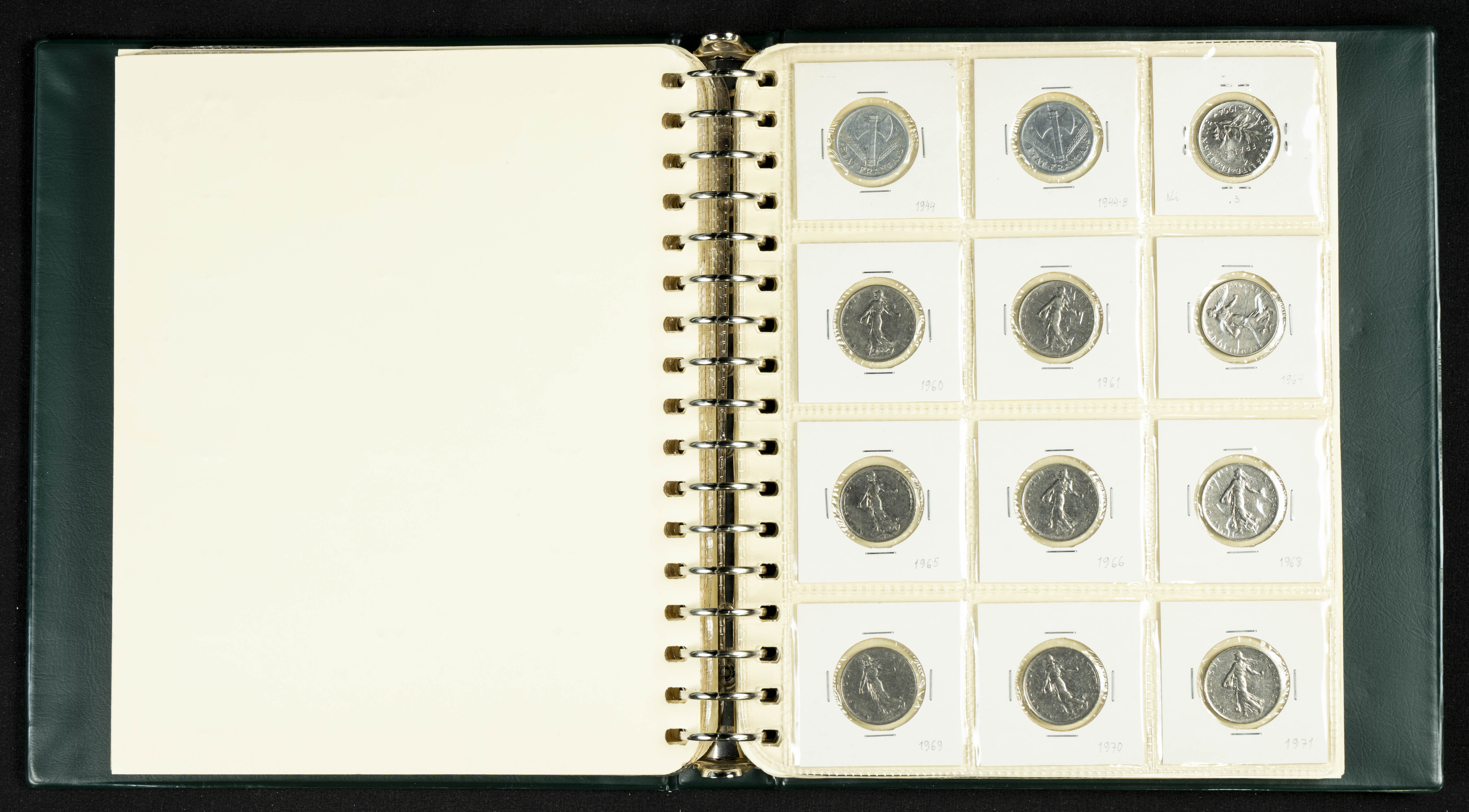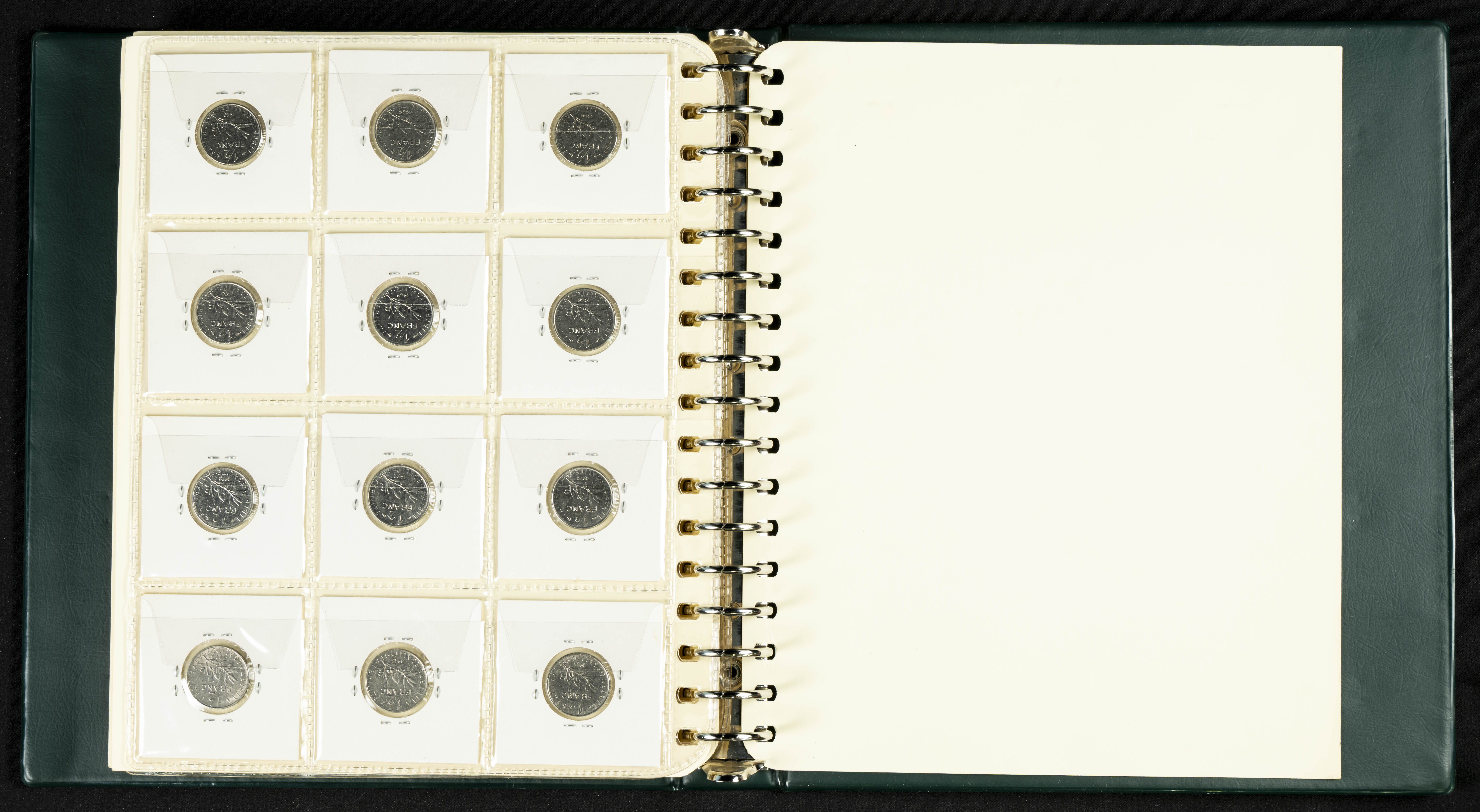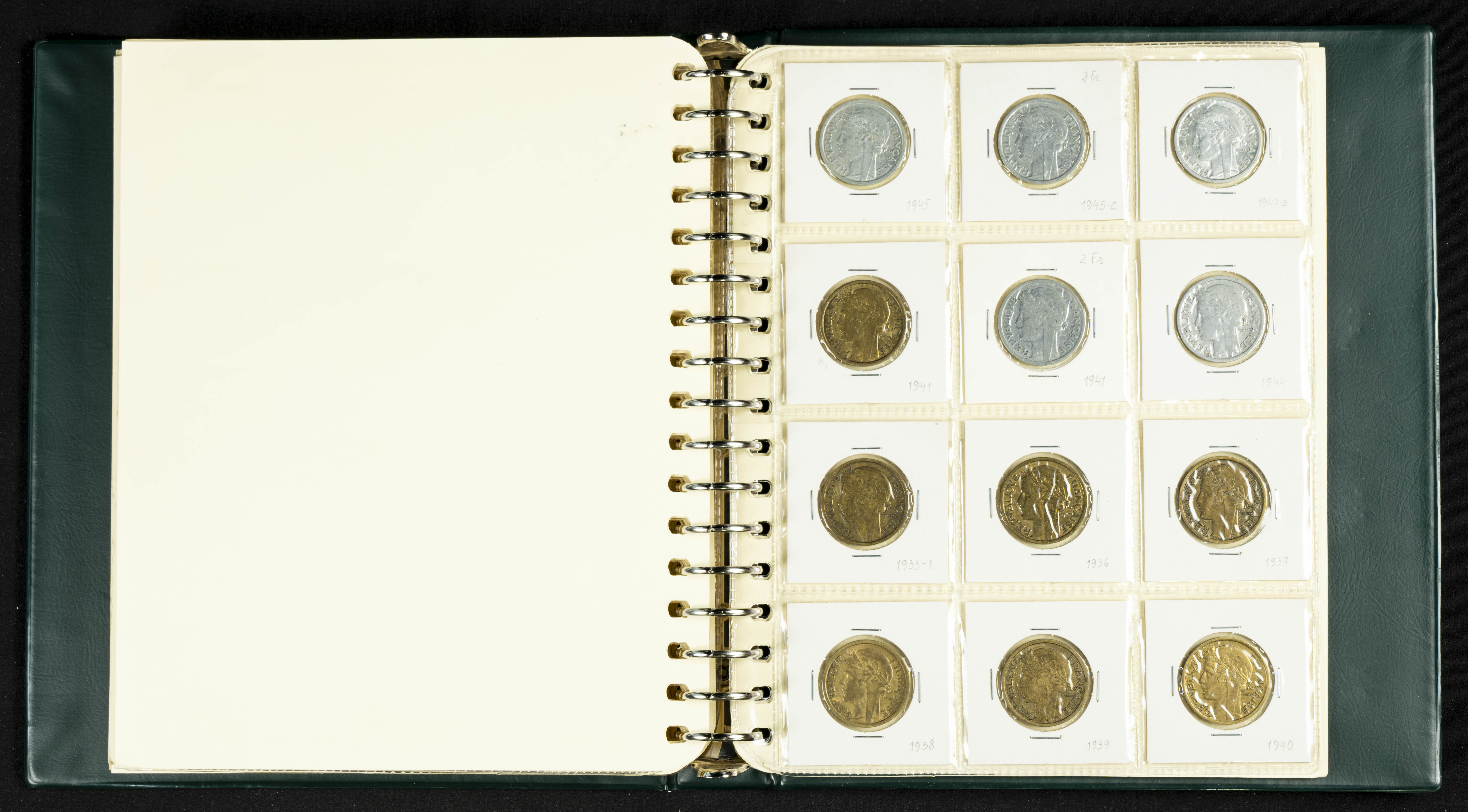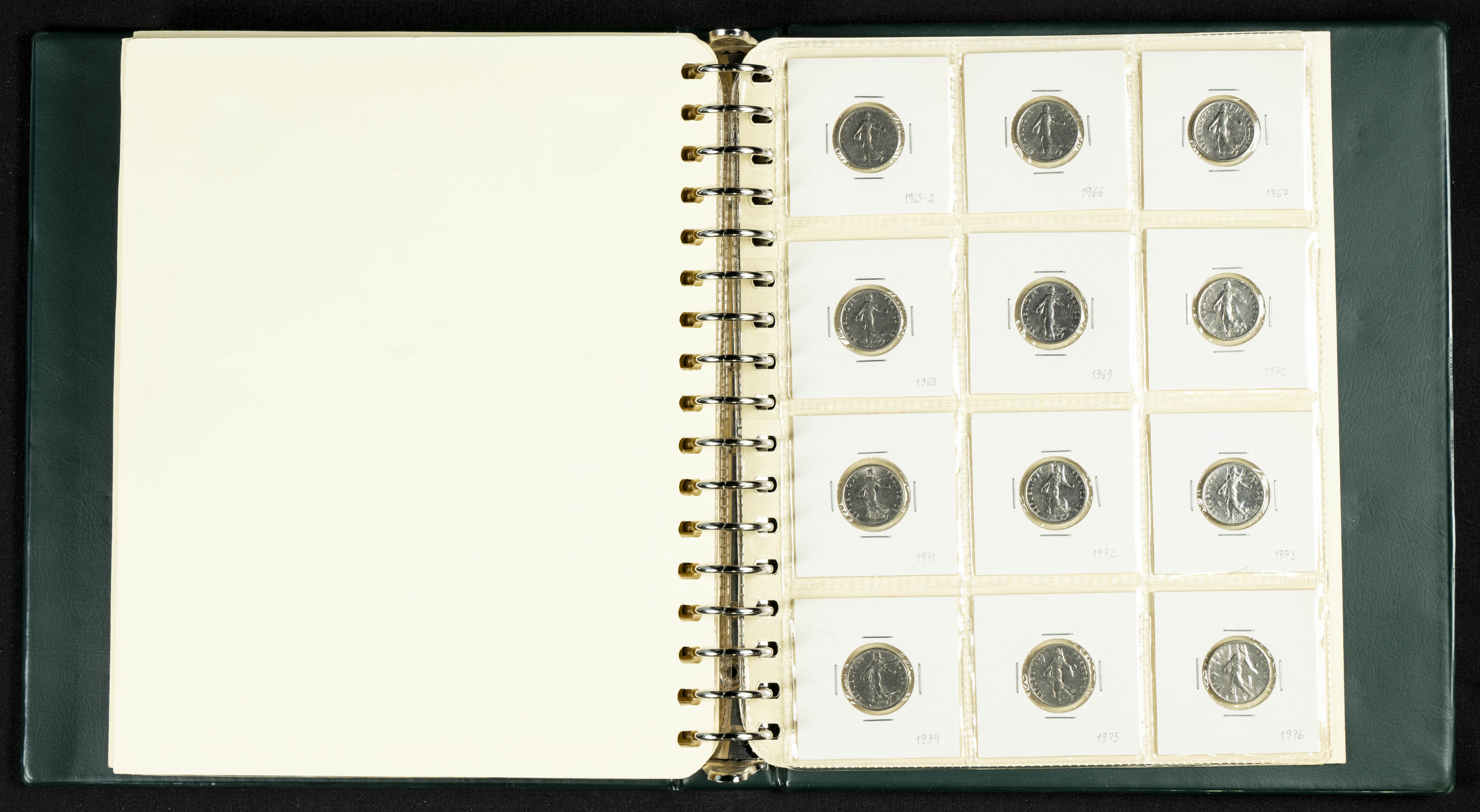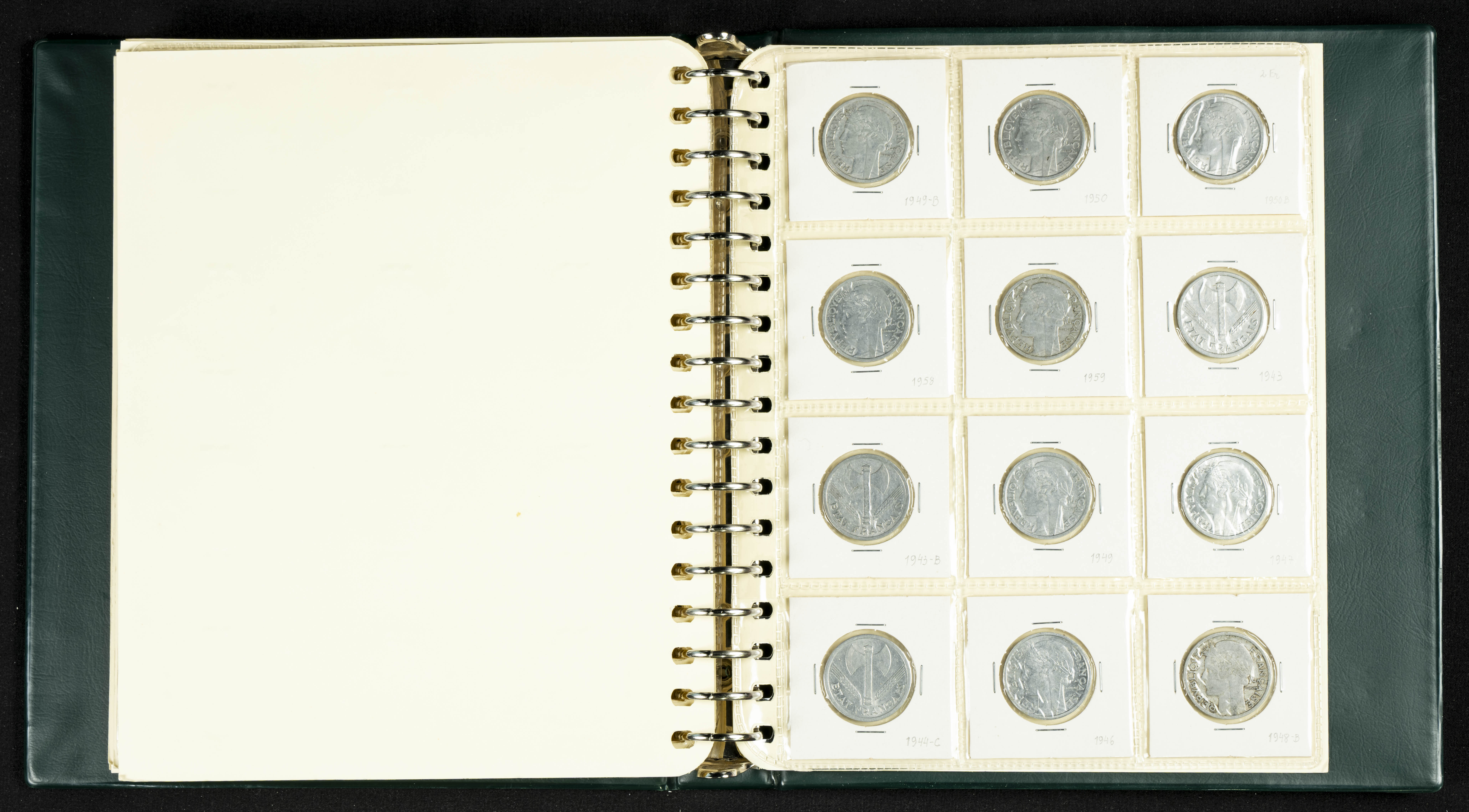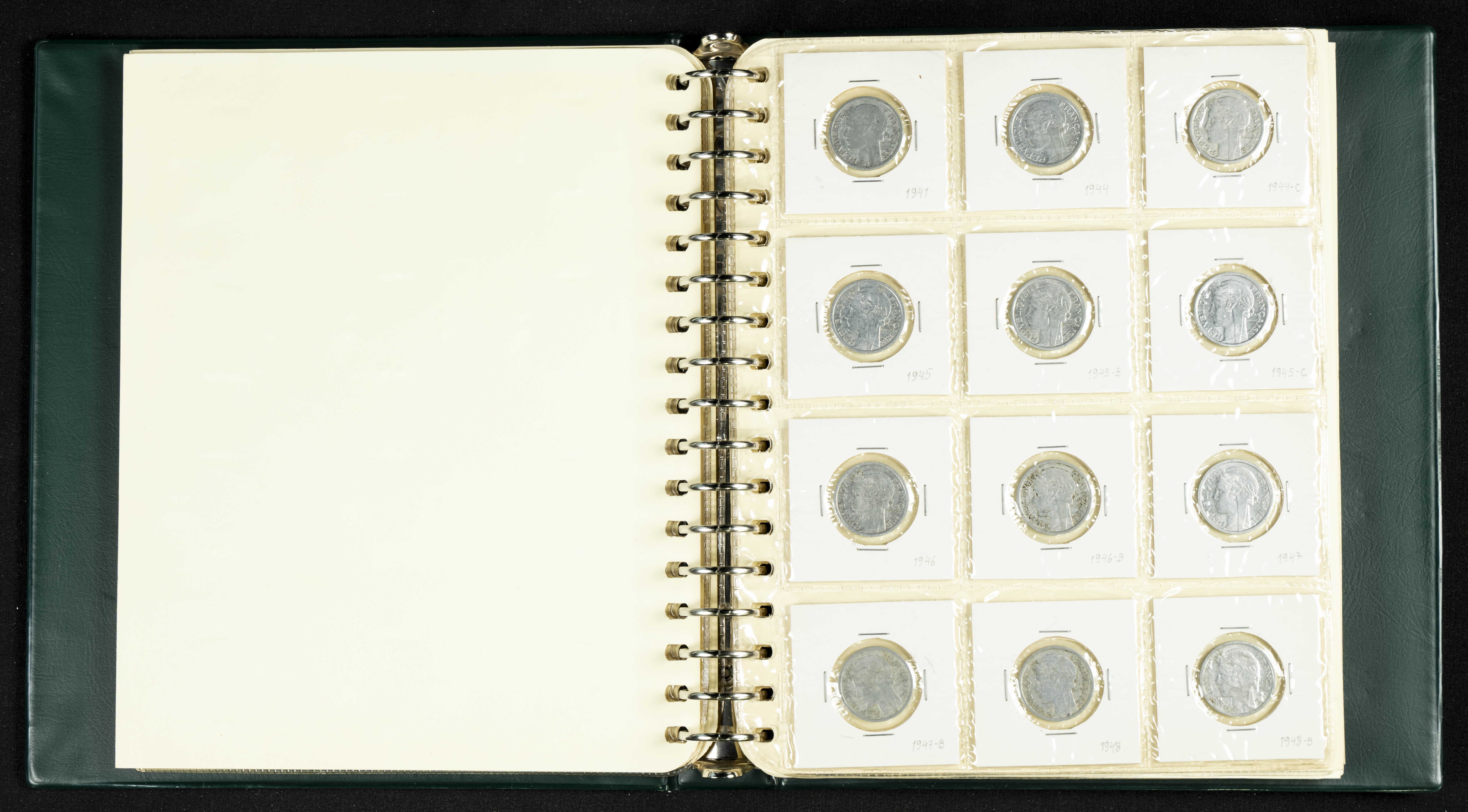 FRANCIA. Interesante y extenso conjunto formado por más de 500 monedas y expuestas en 4 álbumes con acuñaciones comprendidas entre finales de los siglos XIX y XX. Gran variedad de módulos, materiales y fechas así como de estados de conservación. A EXAMINAR.