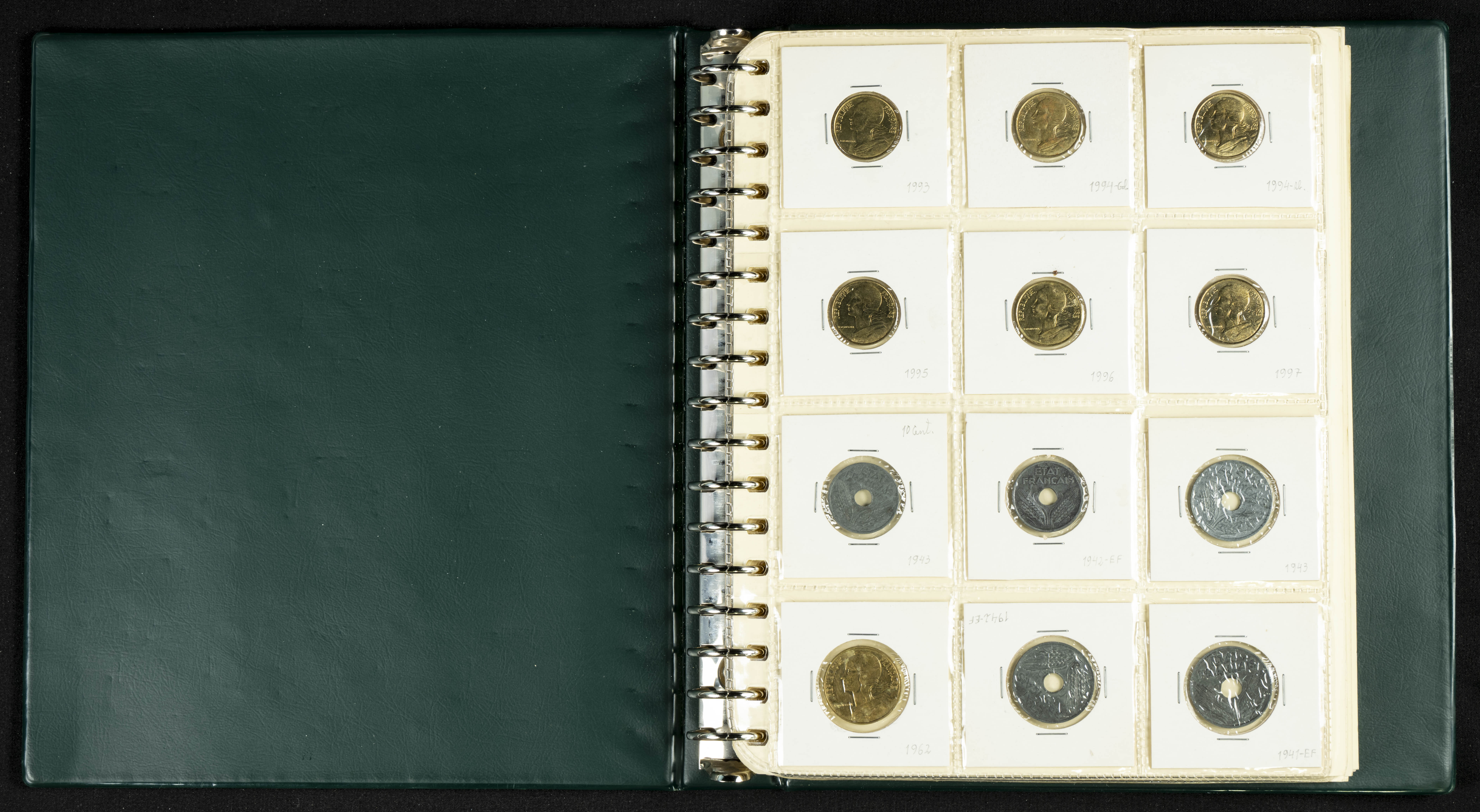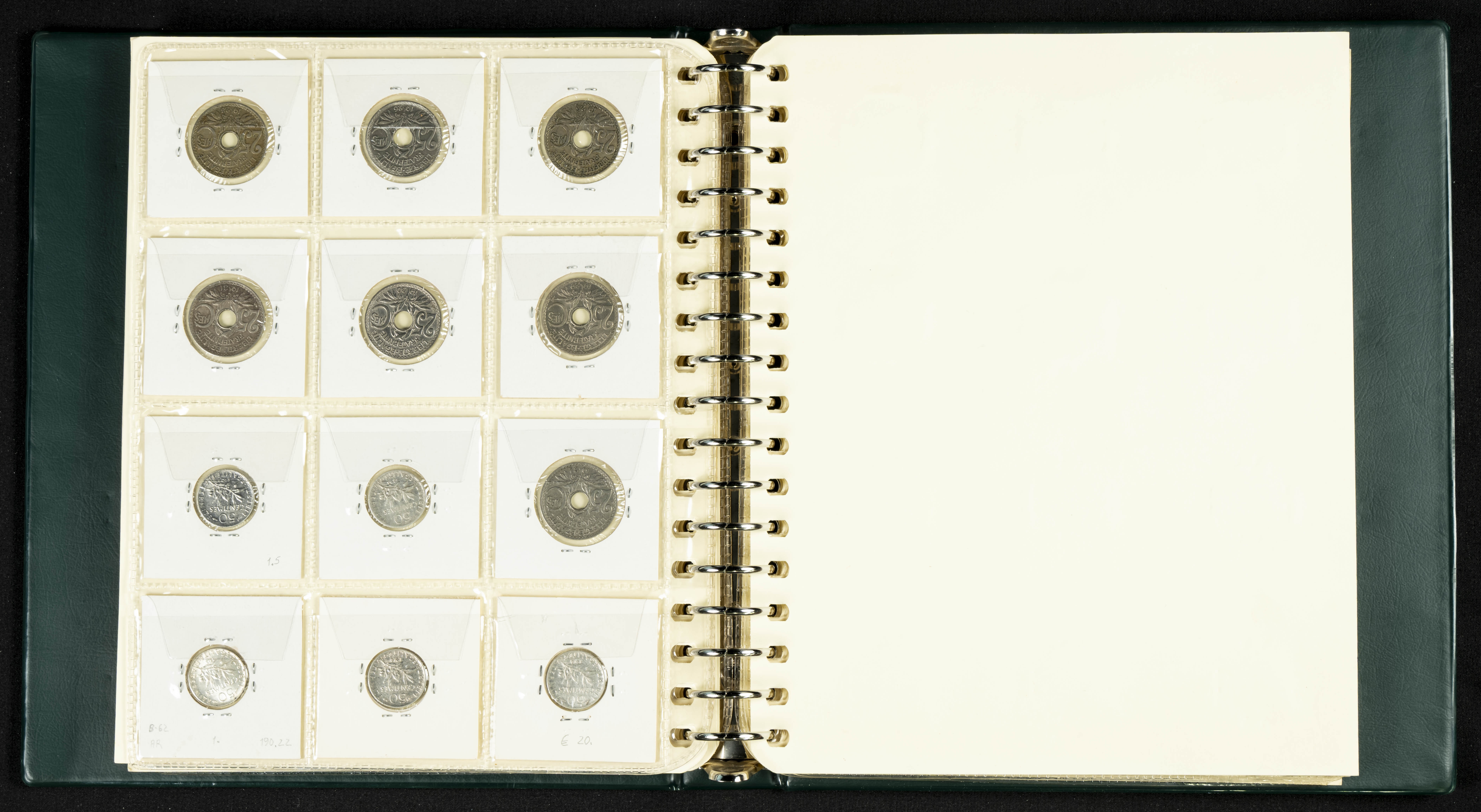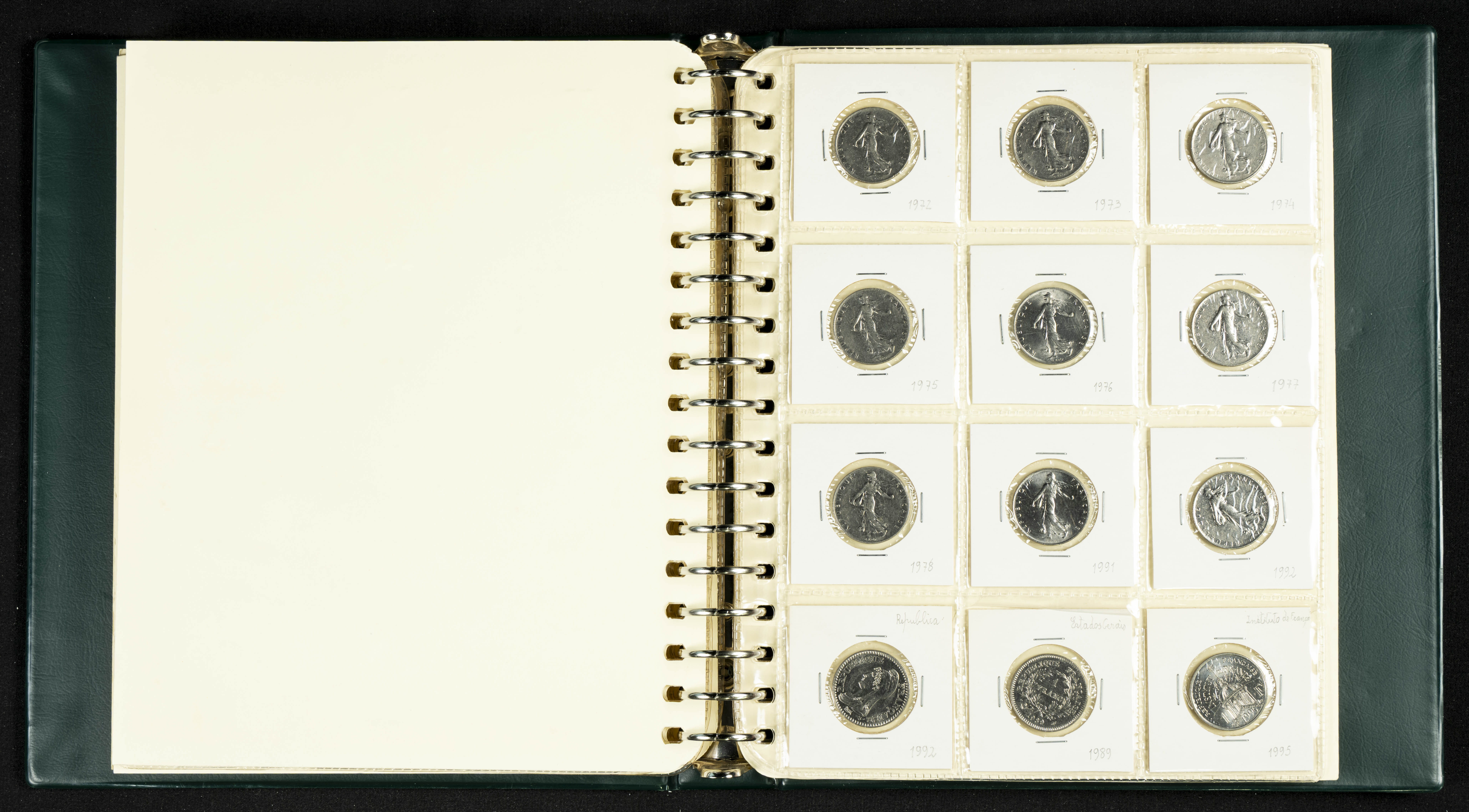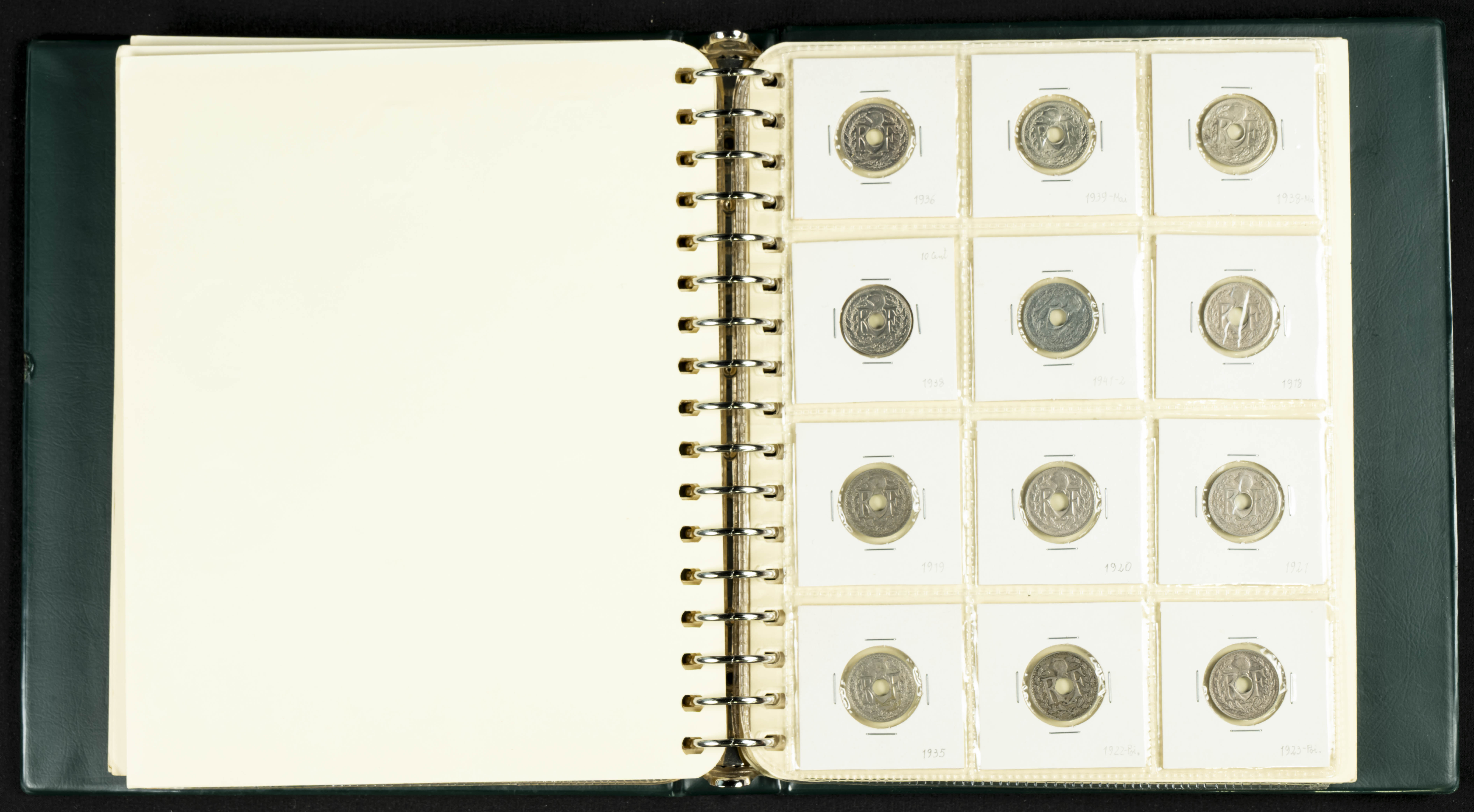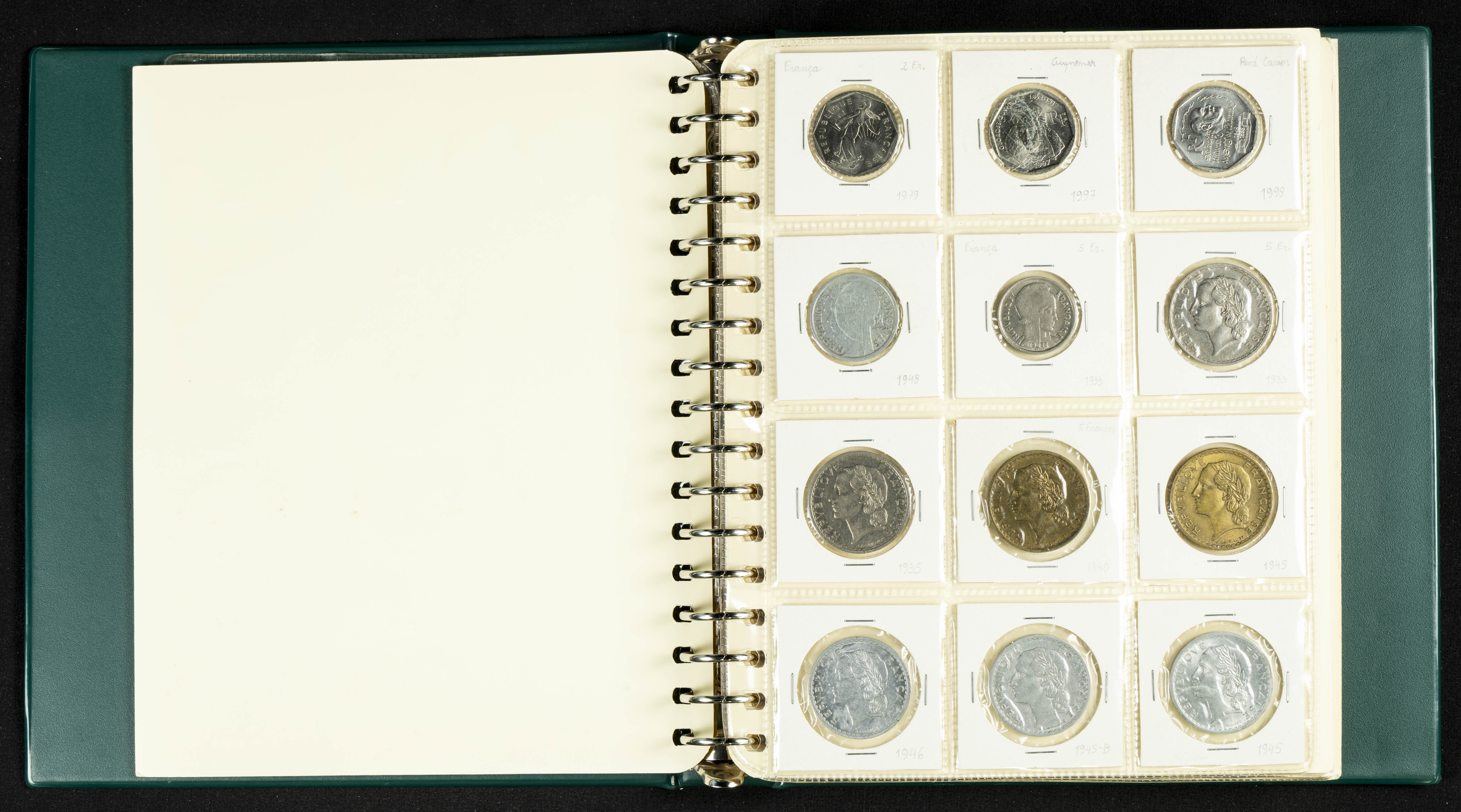 FRANCIA. Interesante y extenso conjunto formado por más de 500 monedas y expuestas en 4 álbumes con acuñaciones comprendidas entre finales de los siglos XIX y XX. Gran variedad de módulos, materiales y fechas así como de estados de conservación. A EXAMINAR.