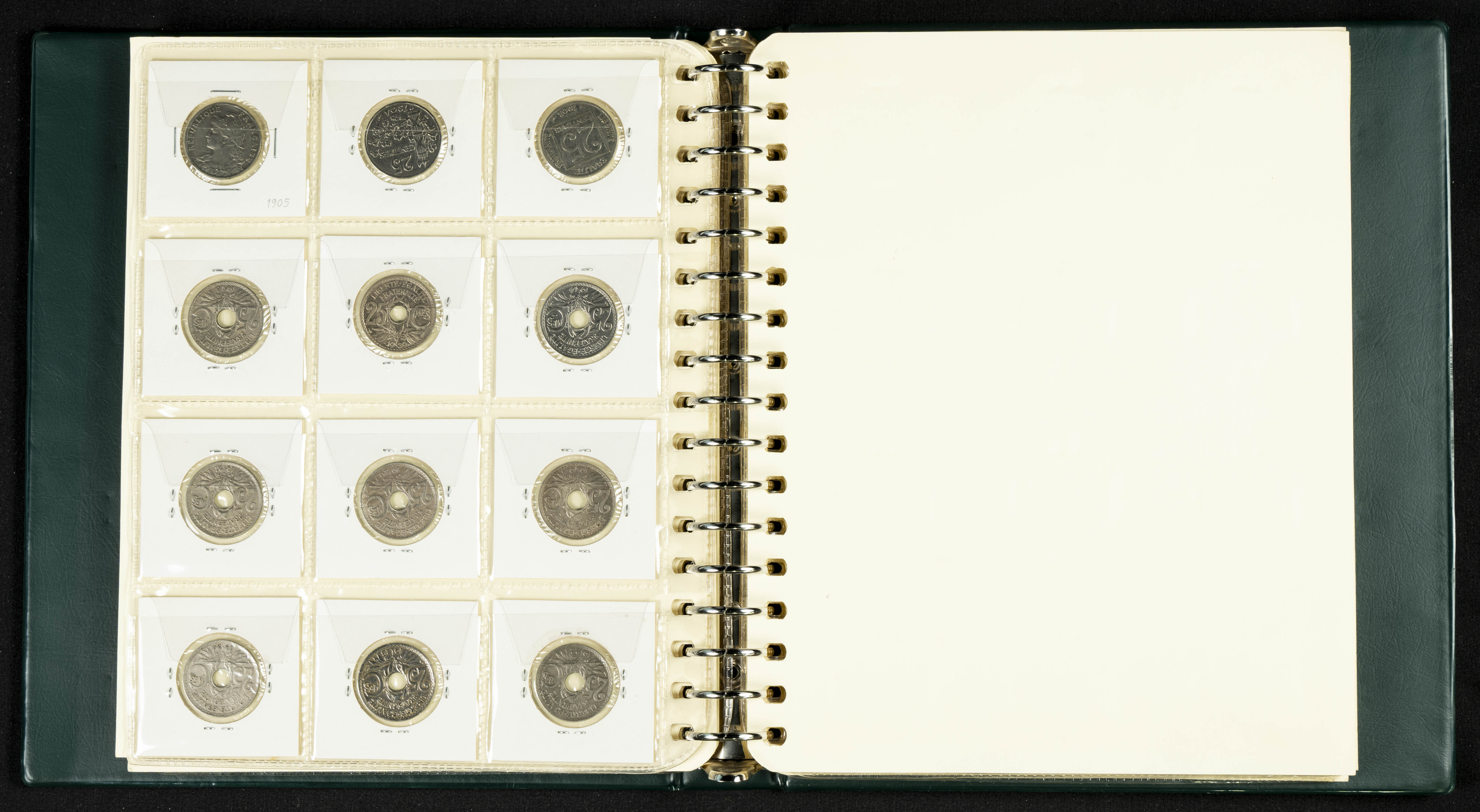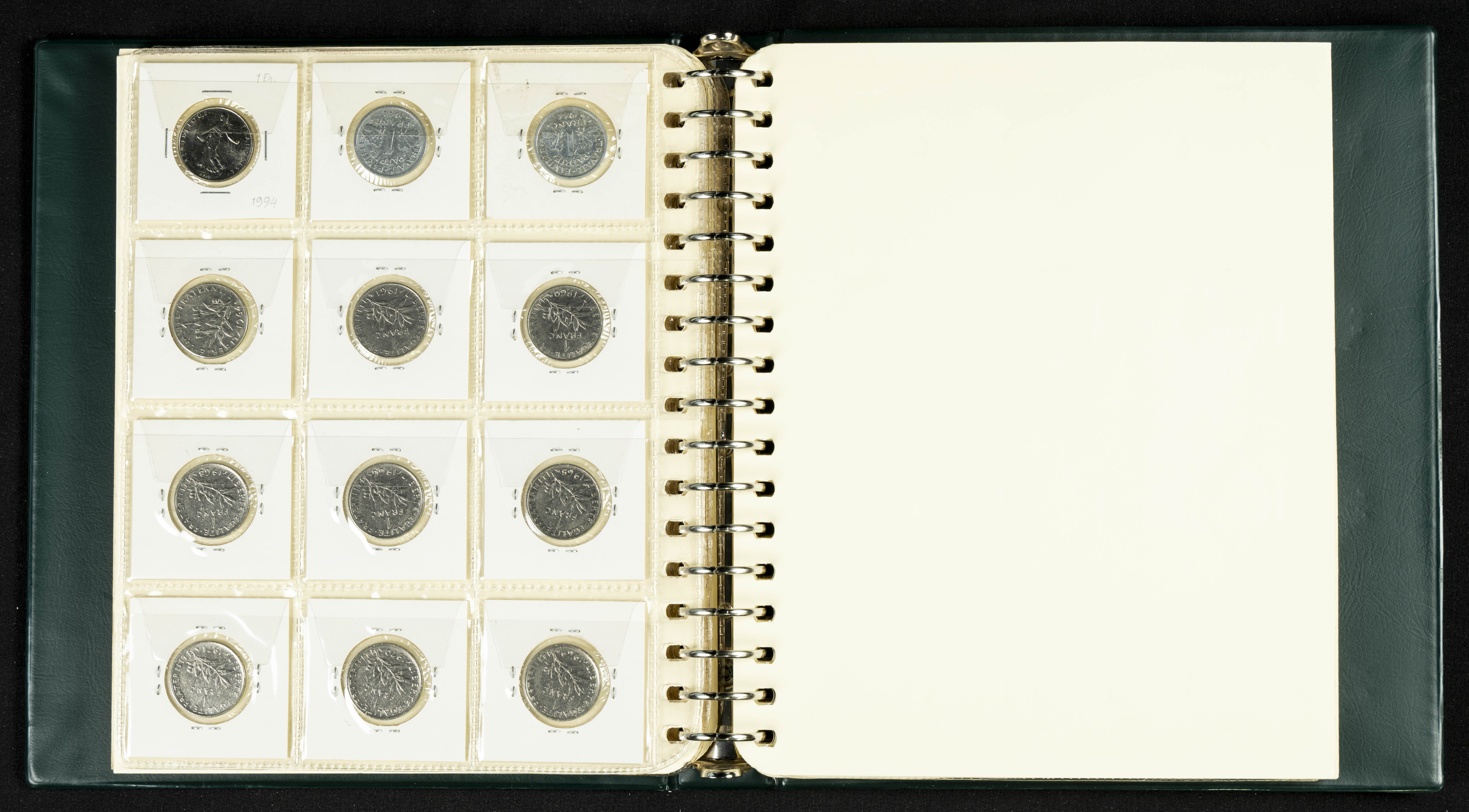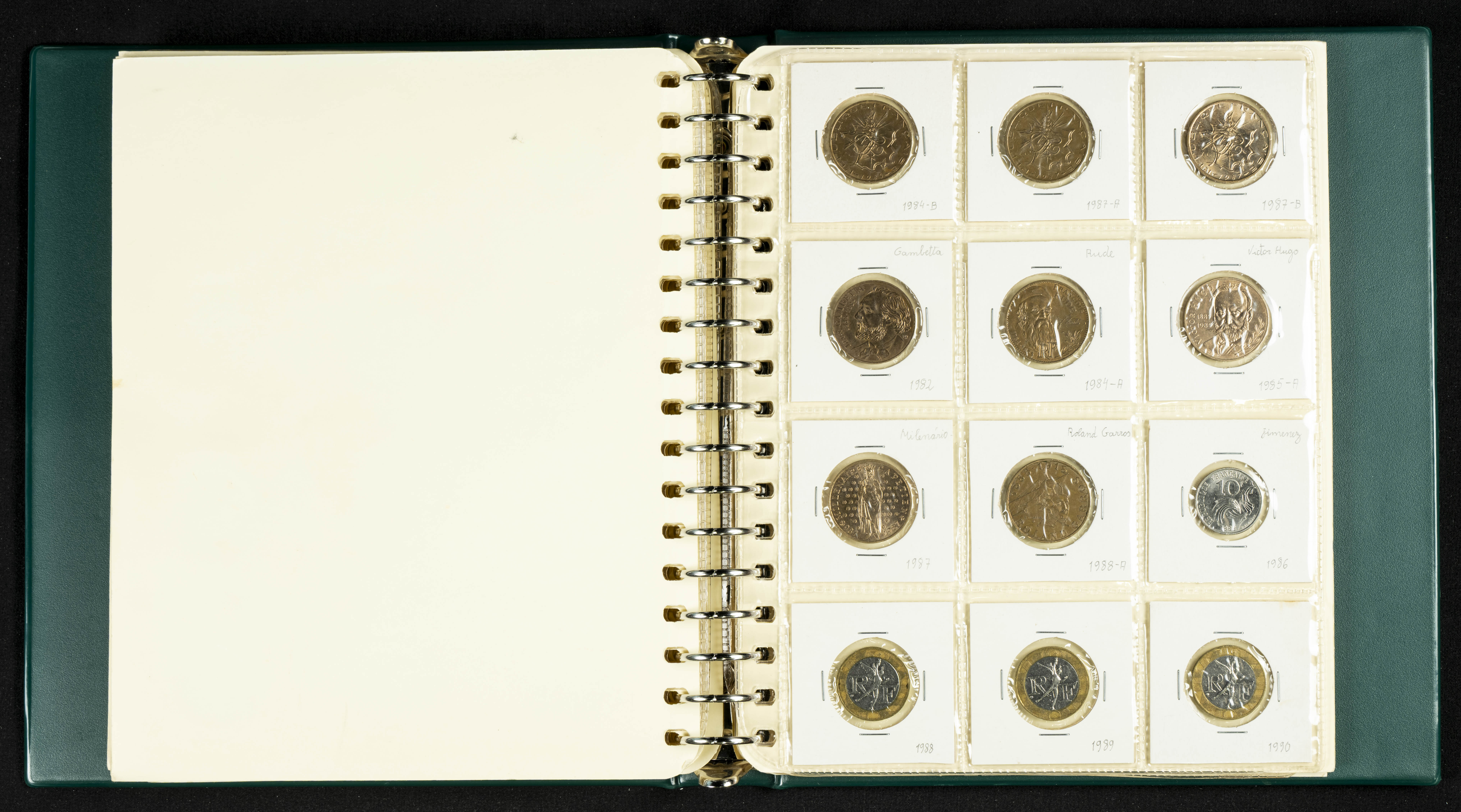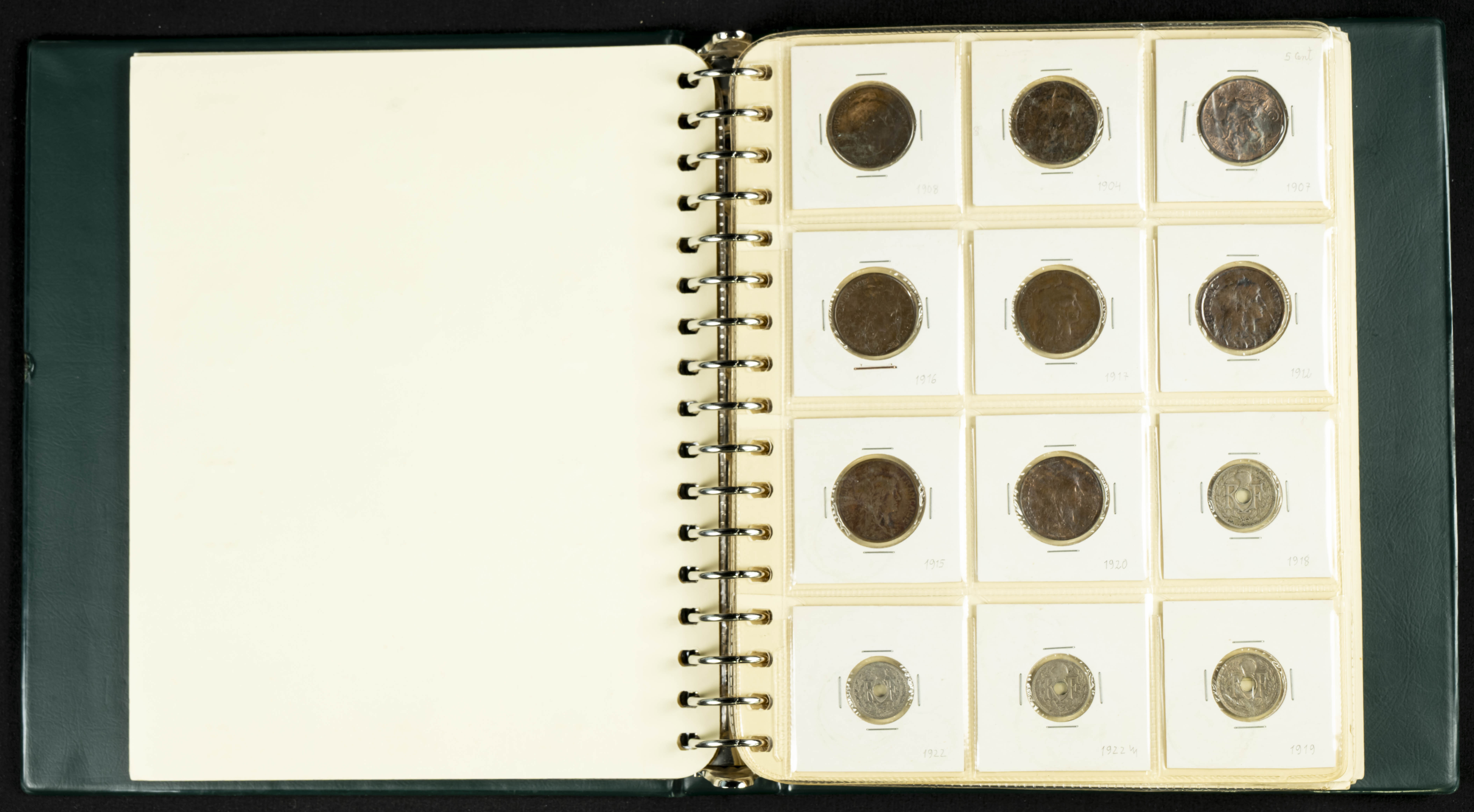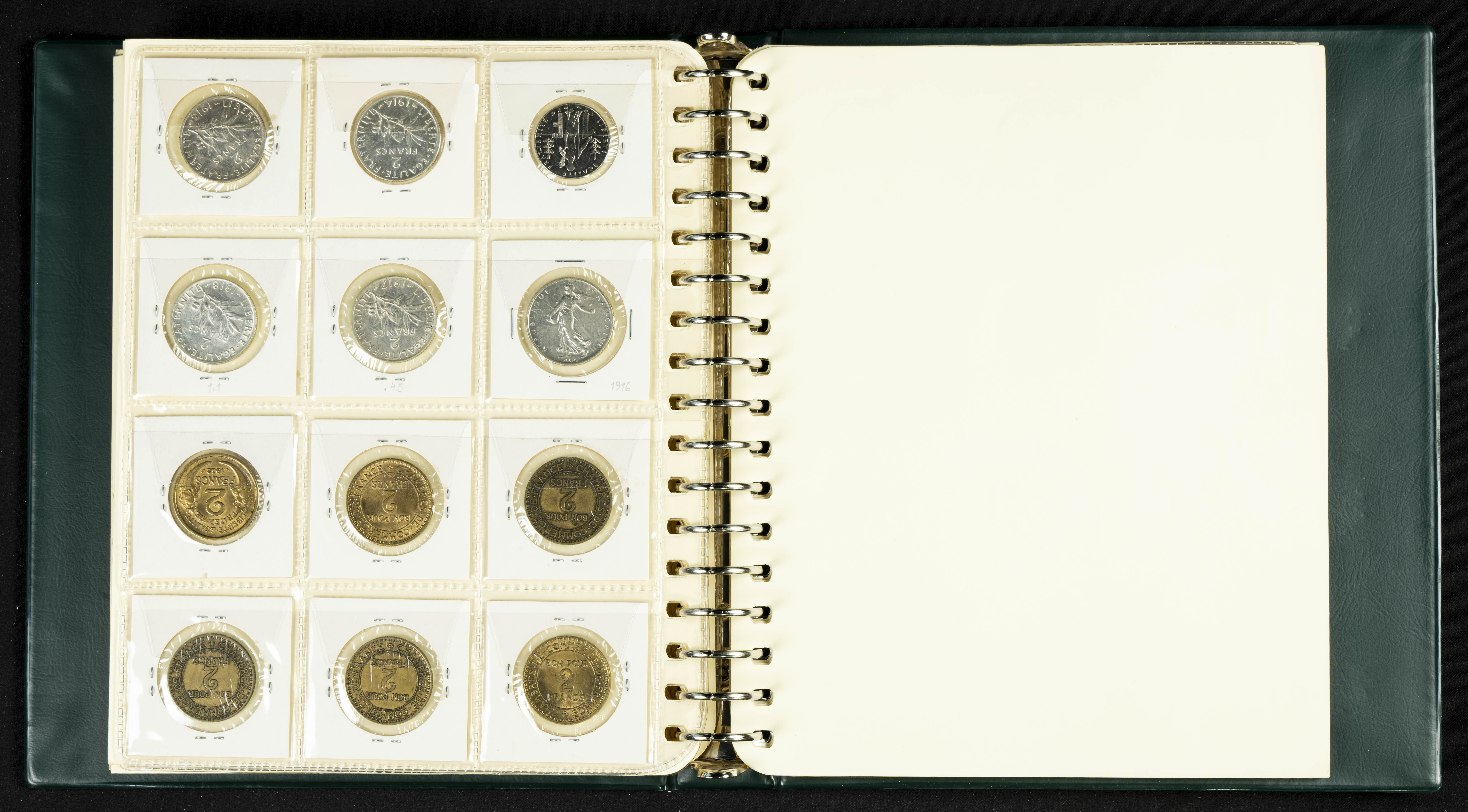 FRANCIA. Interesante y extenso conjunto formado por más de 500 monedas y expuestas en 4 álbumes con acuñaciones comprendidas entre finales de los siglos XIX y XX. Gran variedad de módulos, materiales y fechas así como de estados de conservación. A EXAMINAR.