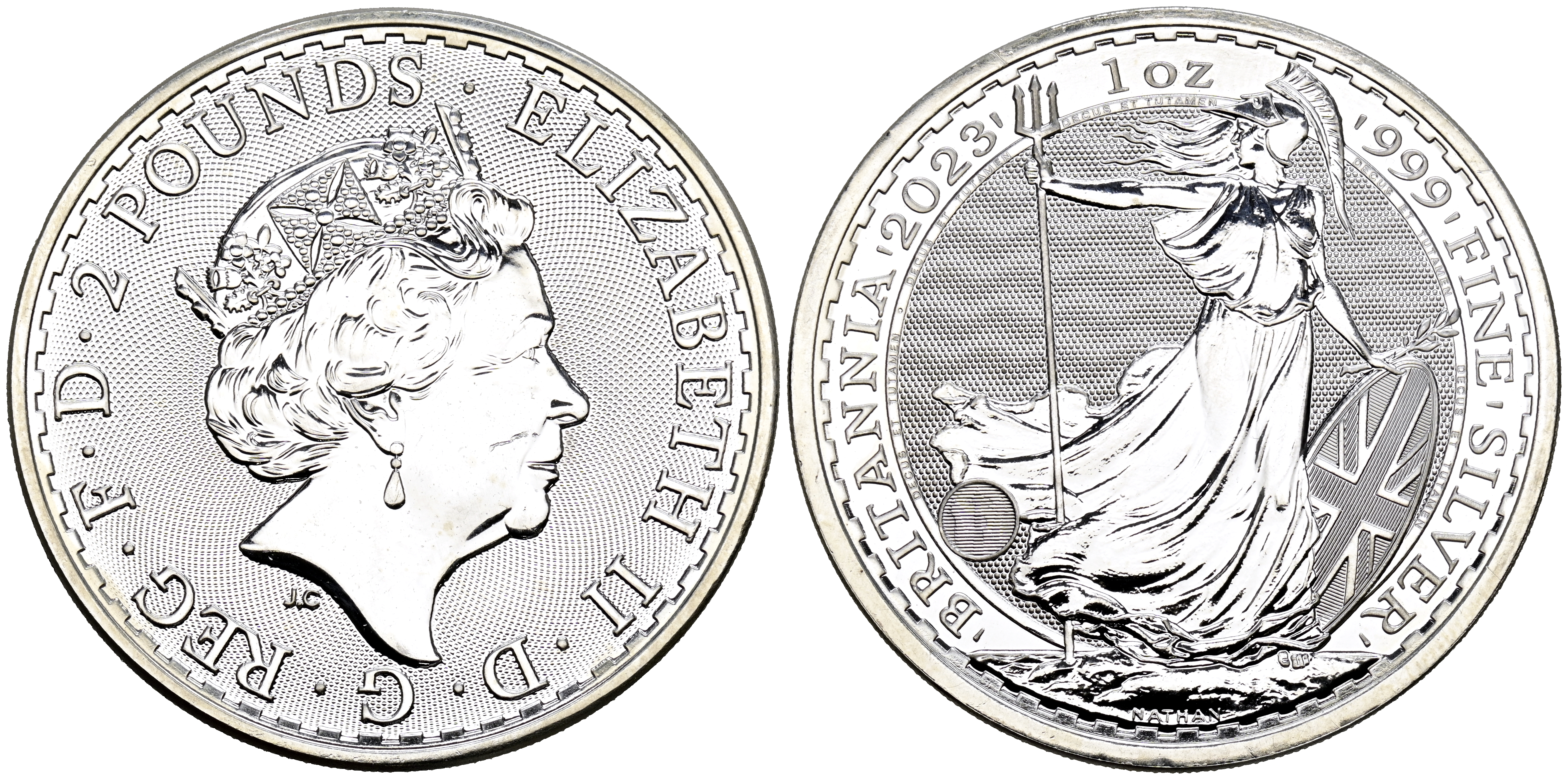 GRAN BRETAÑA. 2 Pounds. (Ar. 31,20g/39mm). 2023. Isabel II. Britannia en pie. SC.