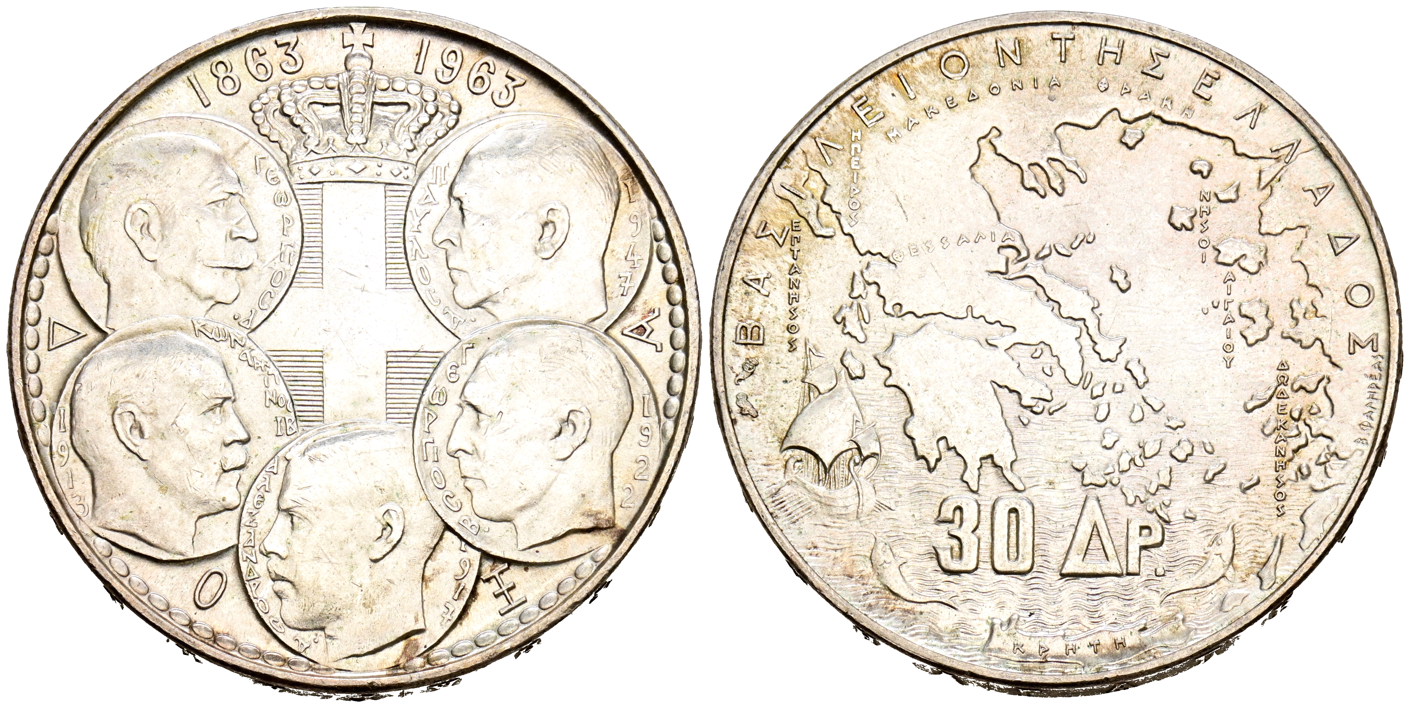 GRECIA. 30 Dracmas. (Ar. 18,01g/34mm). 1963. (Km#86). EBC+.