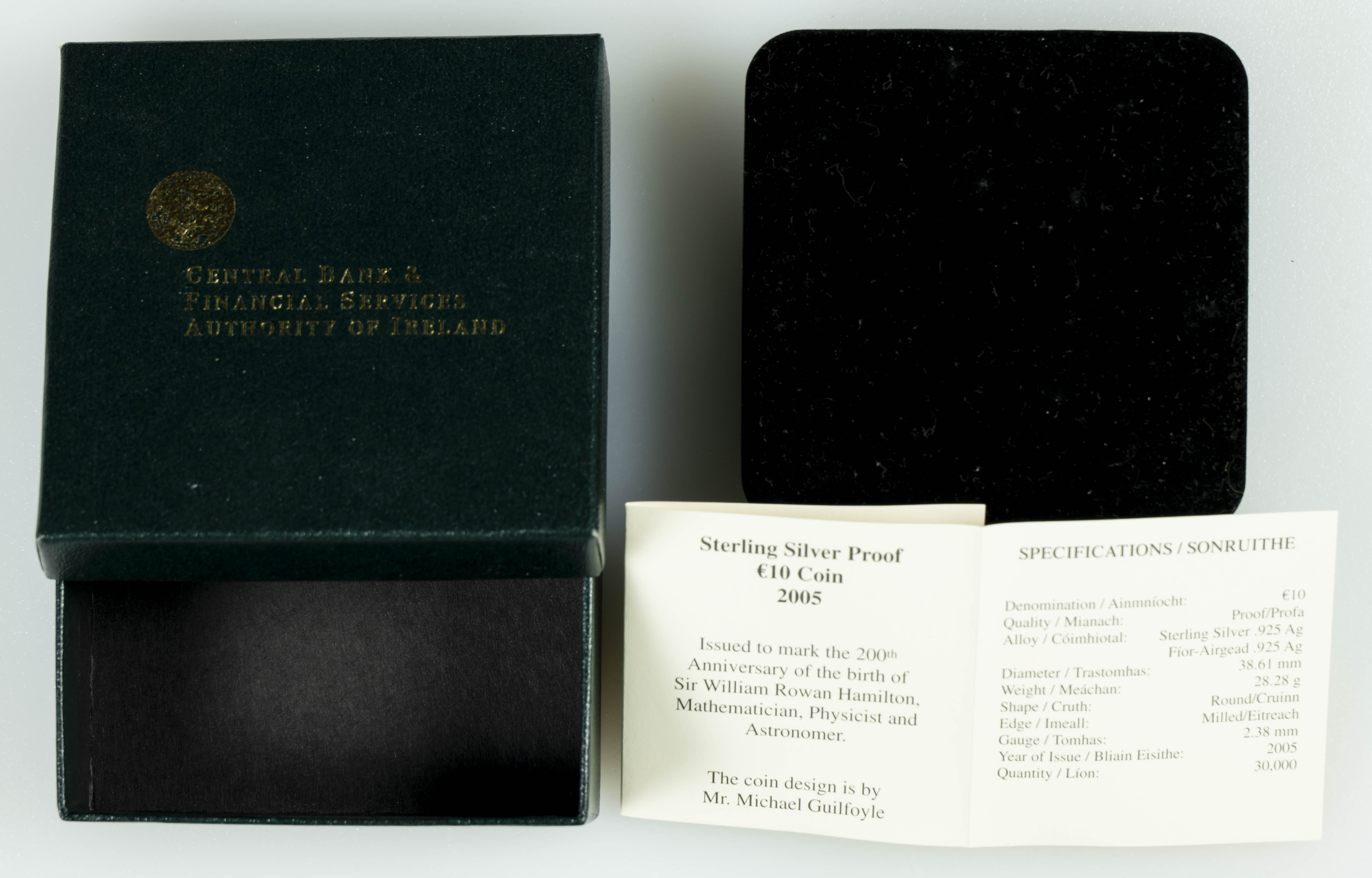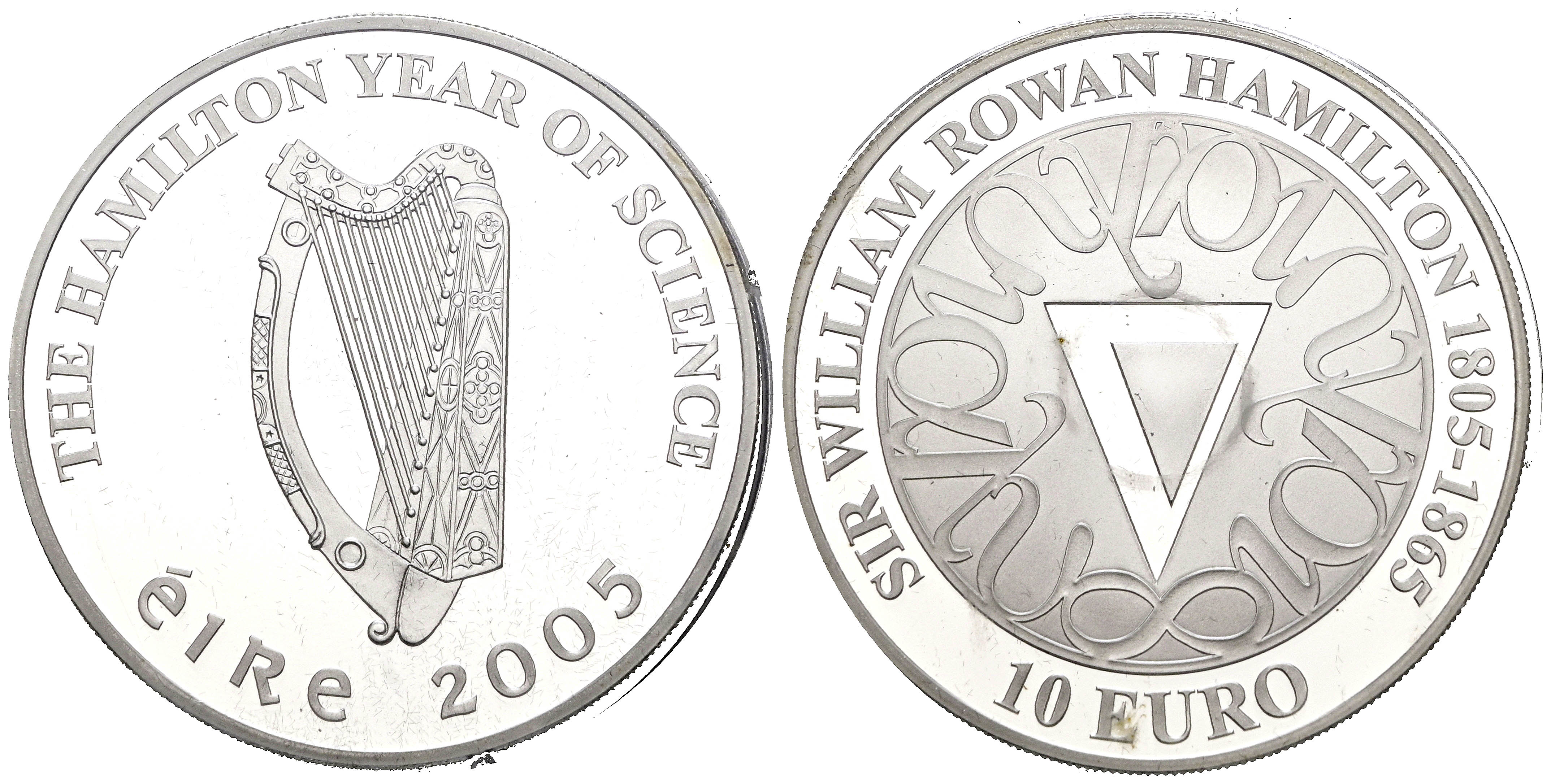 IRLANDA. 10 Euro (Ar. 28,28g/39mm). 2005. Bicentenario del nacimiento de William Rowan Hamilton. (Km#44). PROOF. Set completo incluyendo certificado de autenticidad.