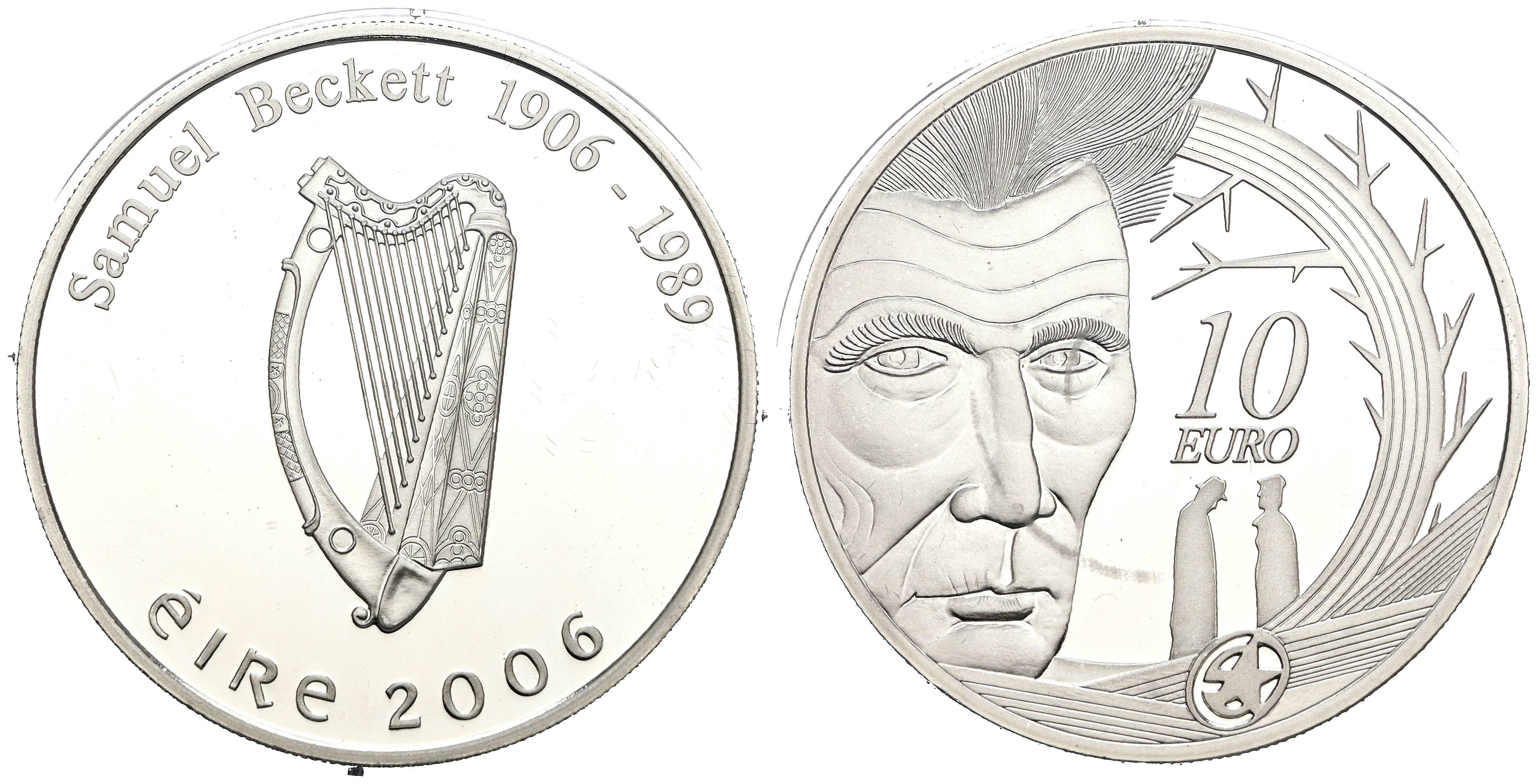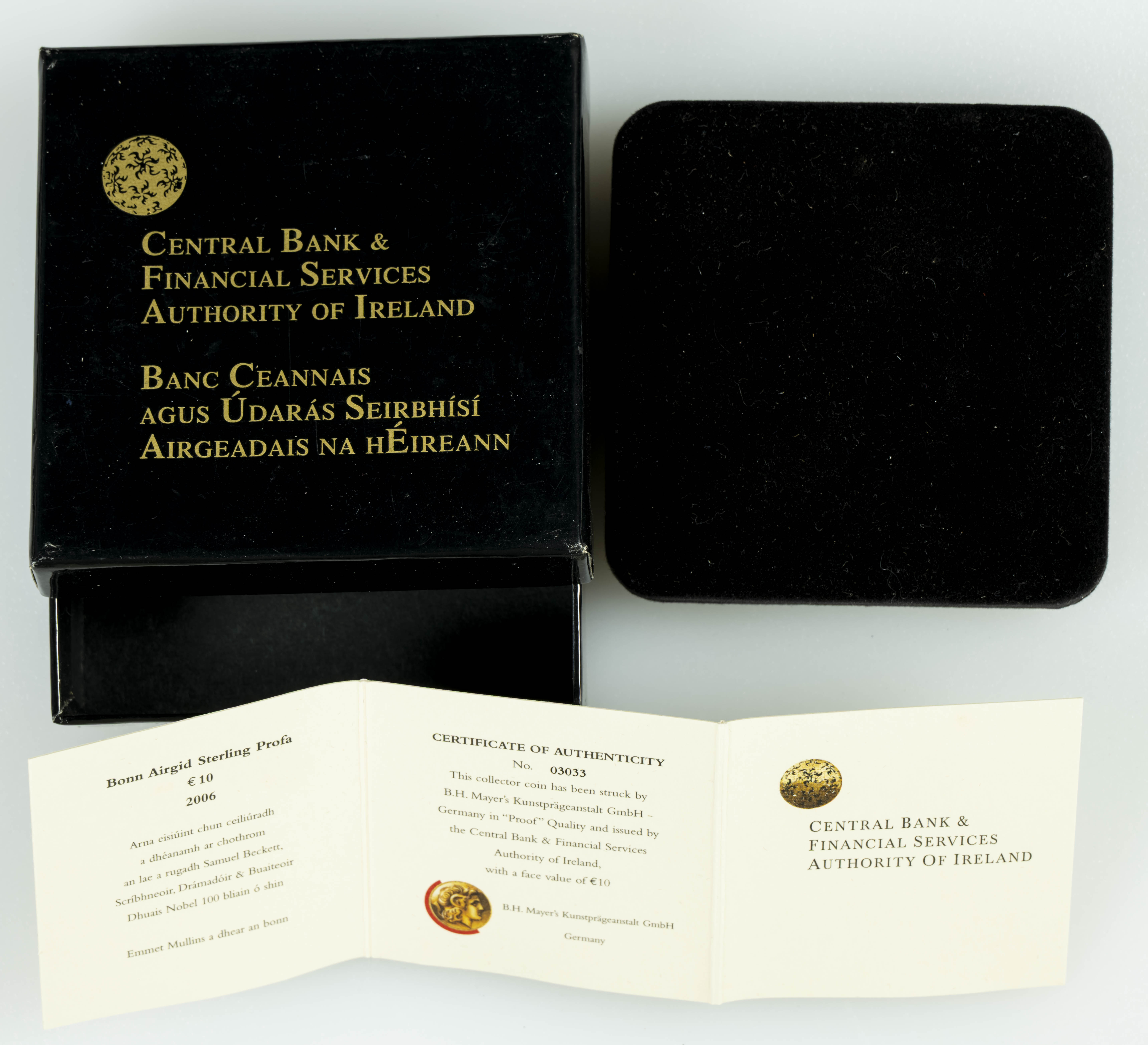 IRLANDA. 10 Euro (Ar. 28,28g/39mm). 2006. Centenario del Nacimiento de Samuel Beckett. (Km#45). PROOF. Set completo incluyendo certificado de autenticidad.