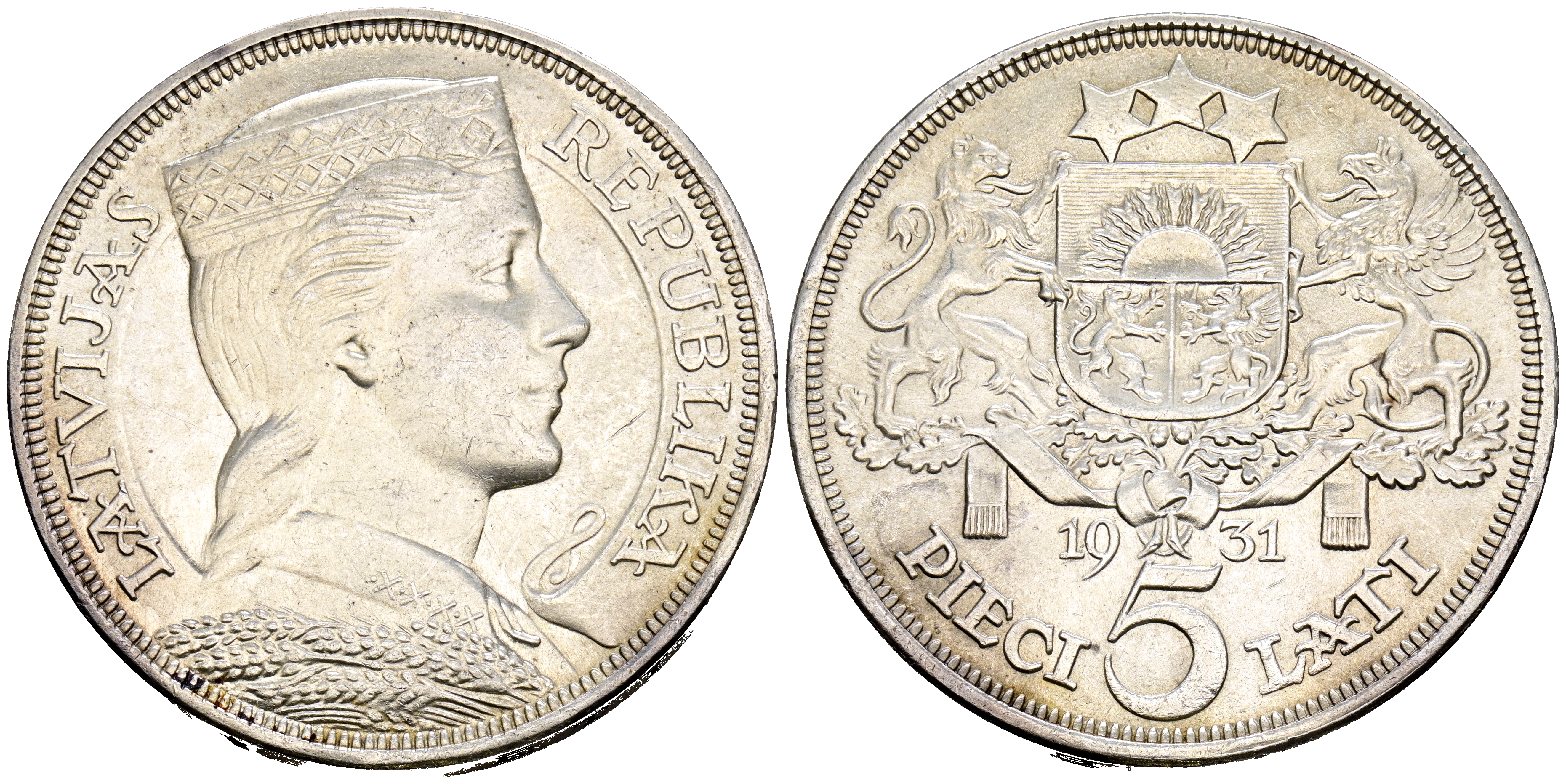 LETONIA, Primera República (1918-1940). 5 Lati. (Ar. 25,00g/37mm). 1931. (Km#9). EBC.