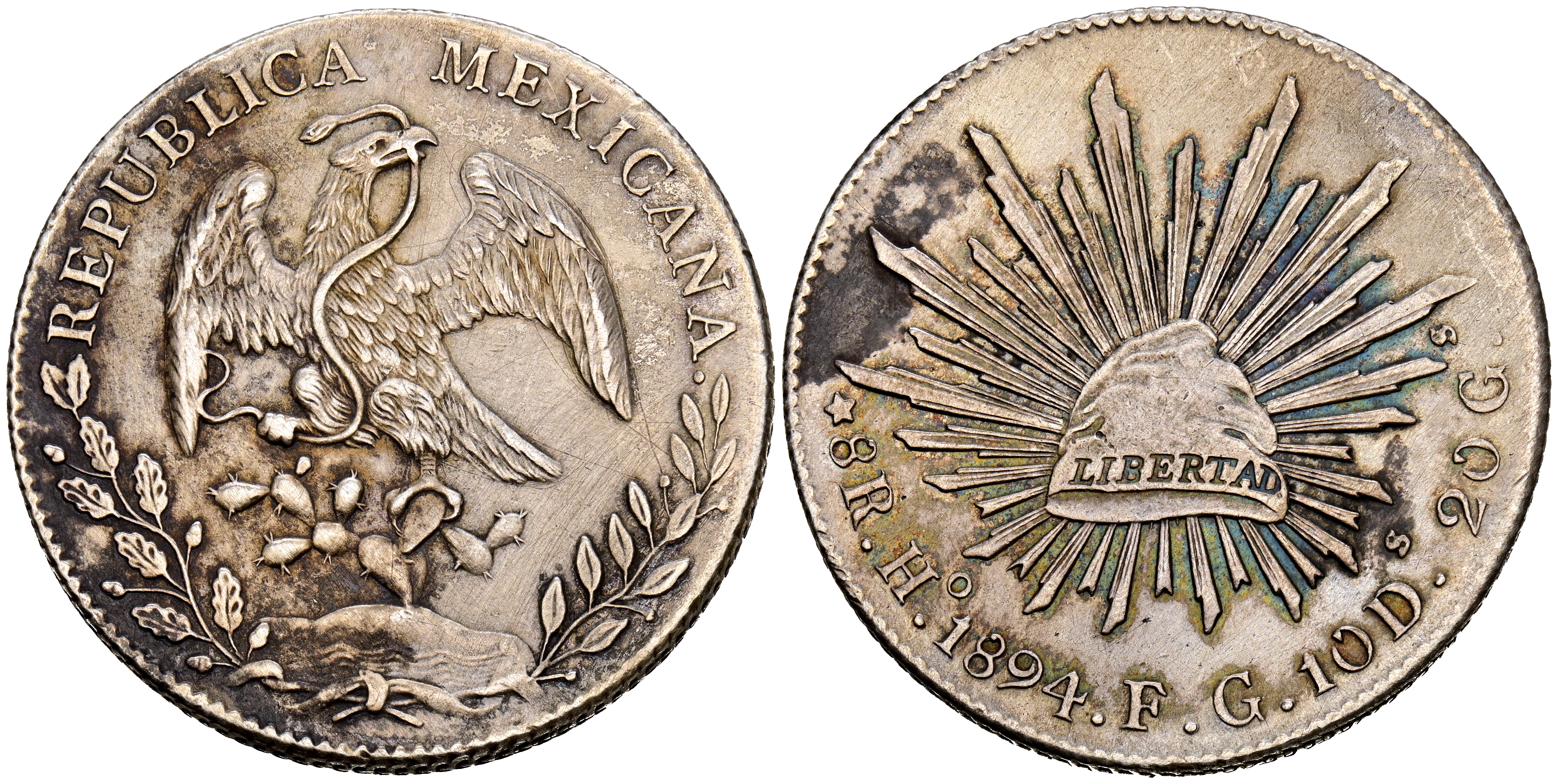 MÉXICO. 8 Reales. (Ar. 27,30g/39mm). 1894. Hermosillo FG. (Km#377.9). MBC. Rayitas. Escasa.