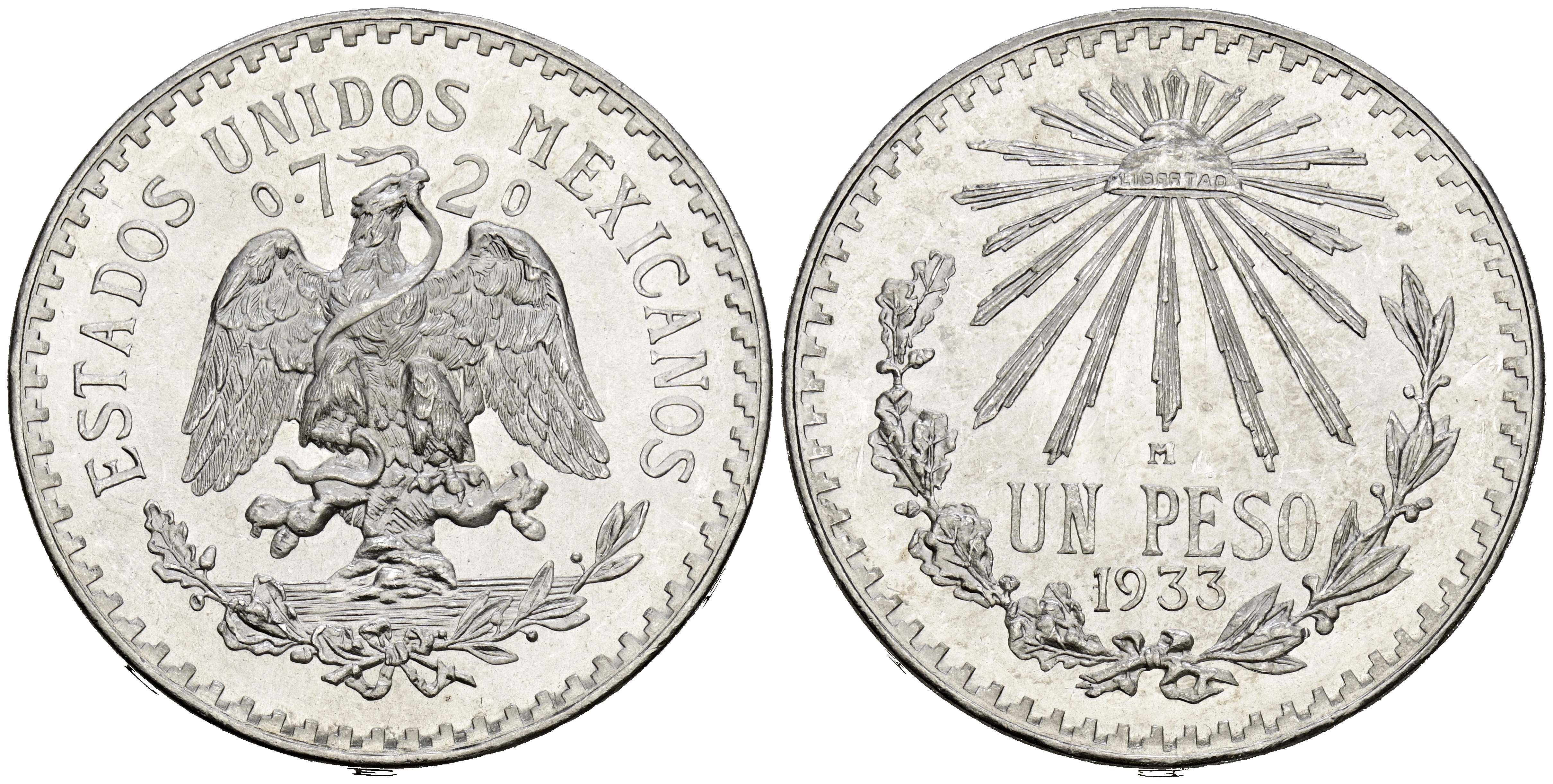 MÉXICO. 1 Peso. (Ar. 16,68g/34mm). 1933. (Km#455). SC. Espectacular brillo.