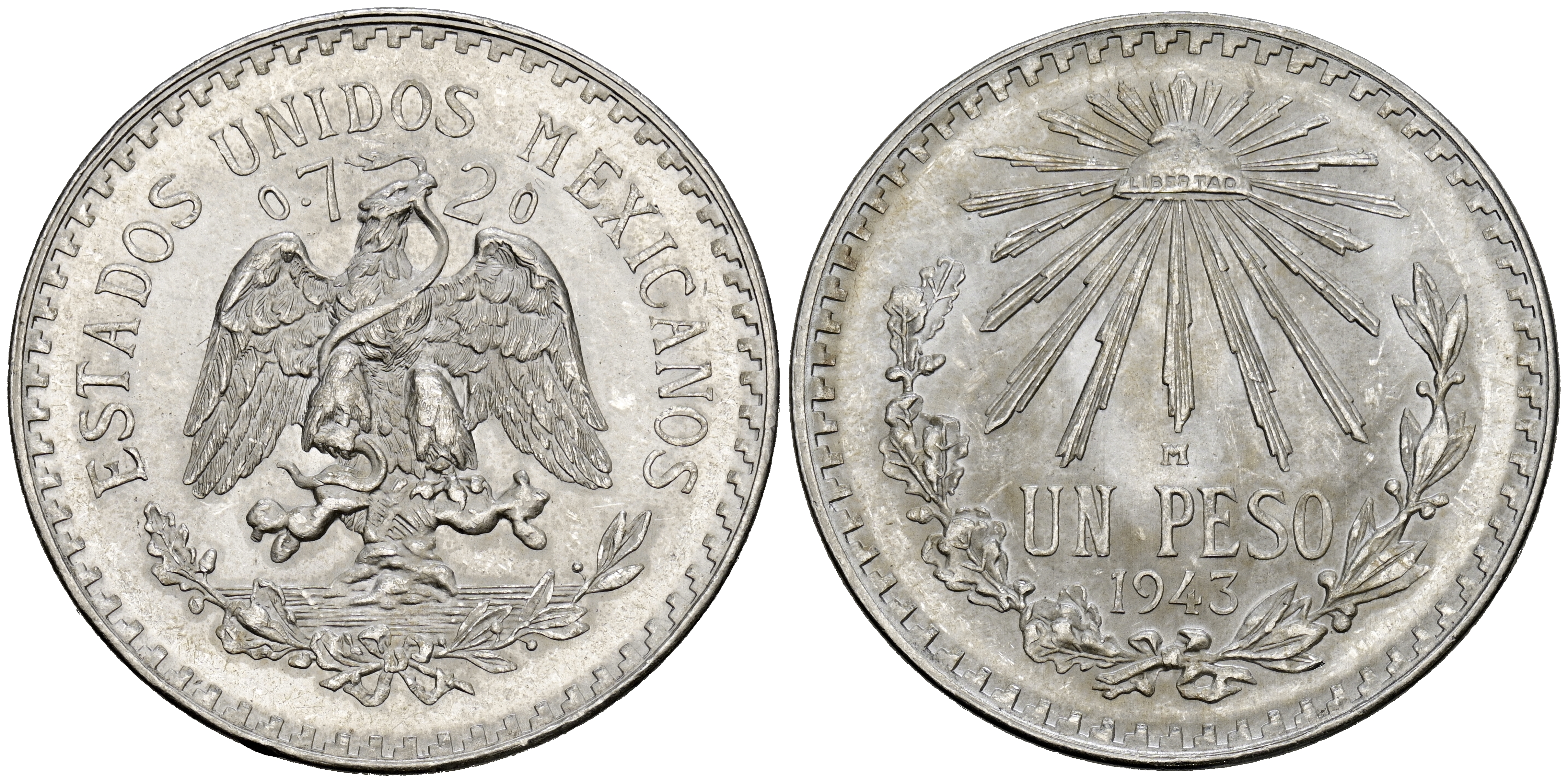 MÉXICO. 1 Peso. (Ar. 16,65g/34mm). 1943. (Km#455). SC. Espectacular brillo.