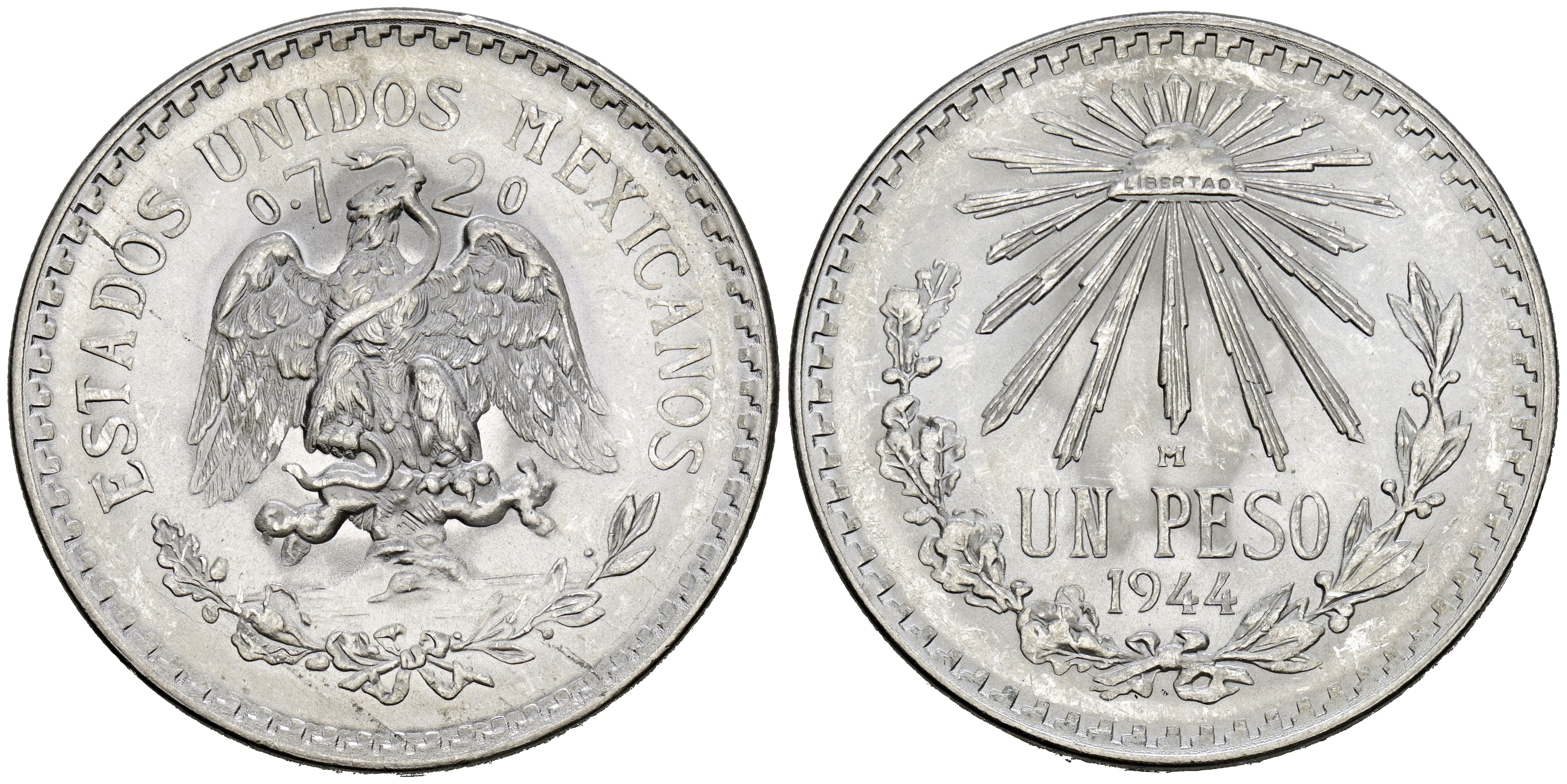 MÉXICO. 1 Peso. (Ar. 16,59g/34mm). 1944. (Km#455). SC. Espectacular brillo.