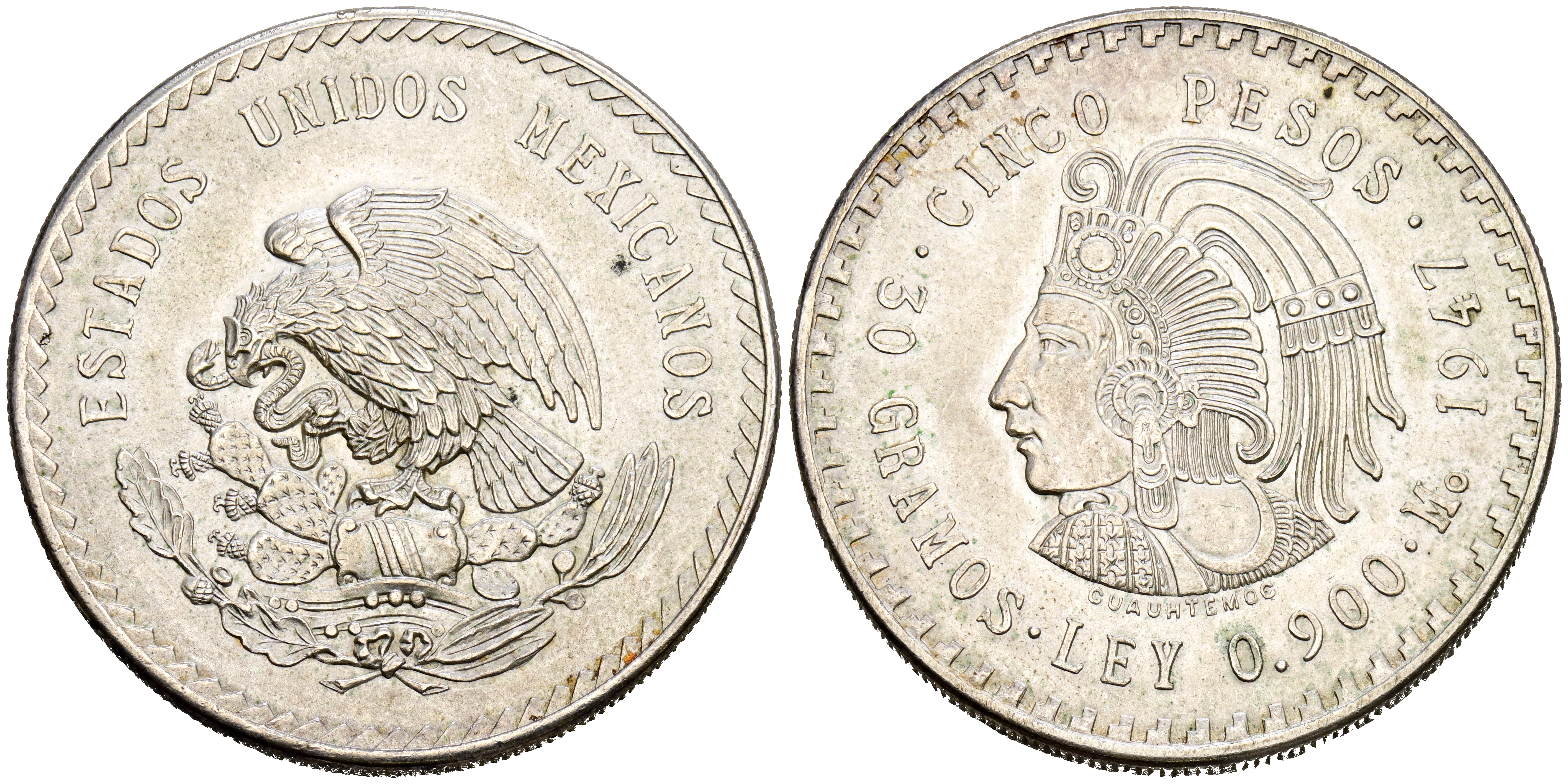 MÉXICO. 5 Pesos. (Ar. 29,98g/40mm). 1947. (Km#465). EBC+.
