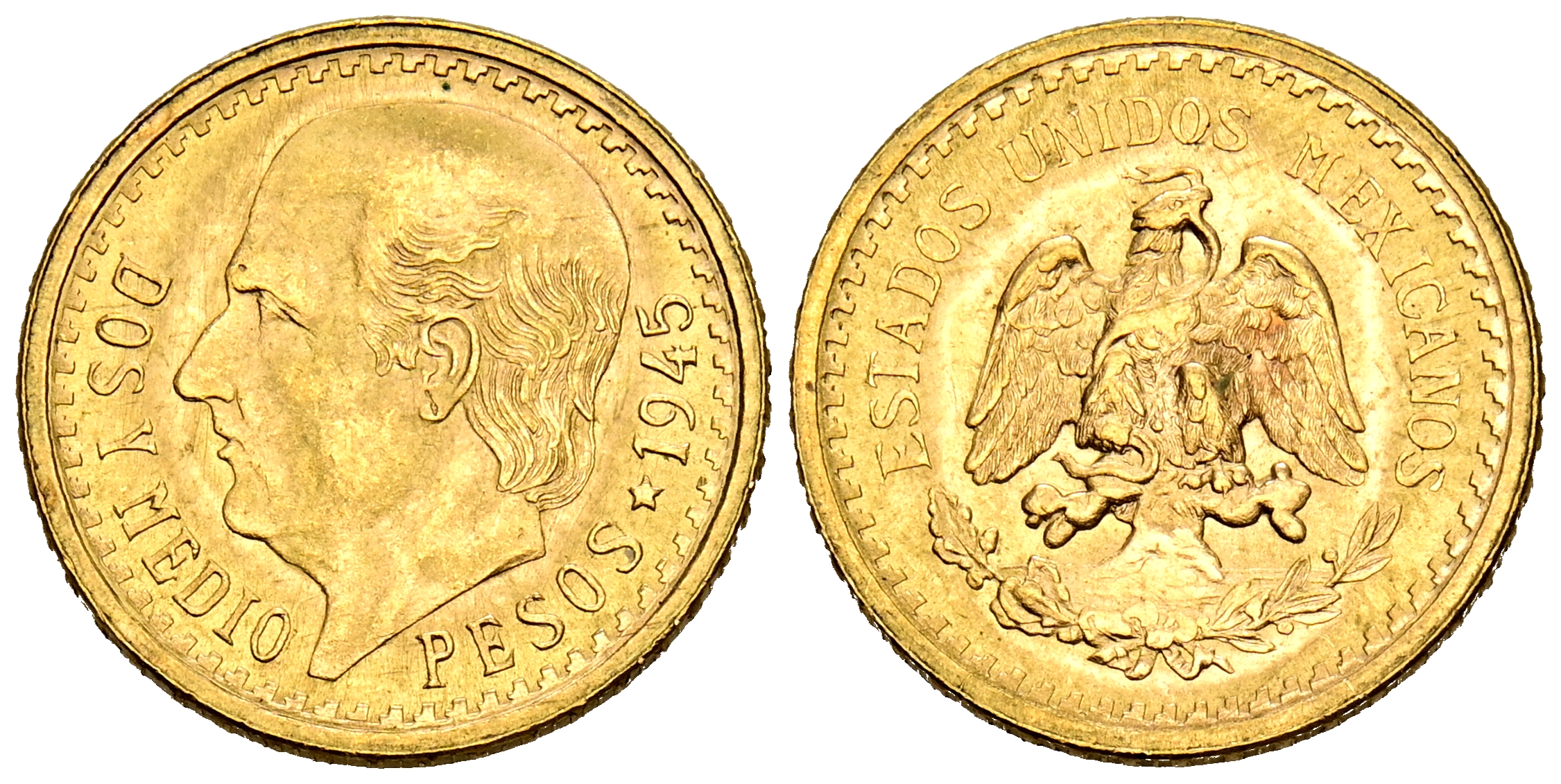MEXICO. 2,50 Pesos. (Au. 2,09g/15mm). 1945. Hidalgo. (Km#463). SC.