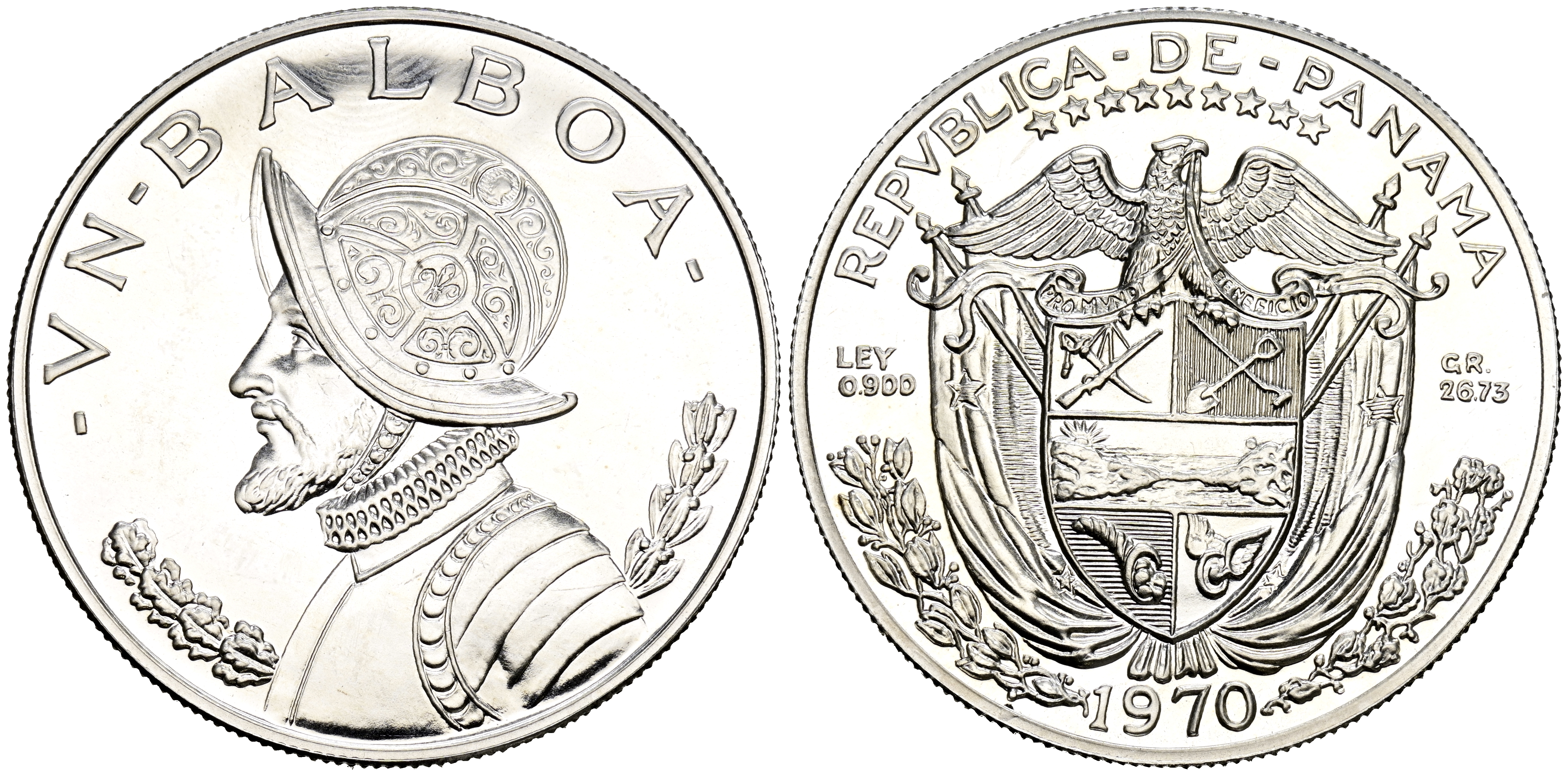 PANAMÁ. 1 Balboa. (Ar. 26,96g/38mm). 1970. (Km#27). SC-. Precioso brillo.